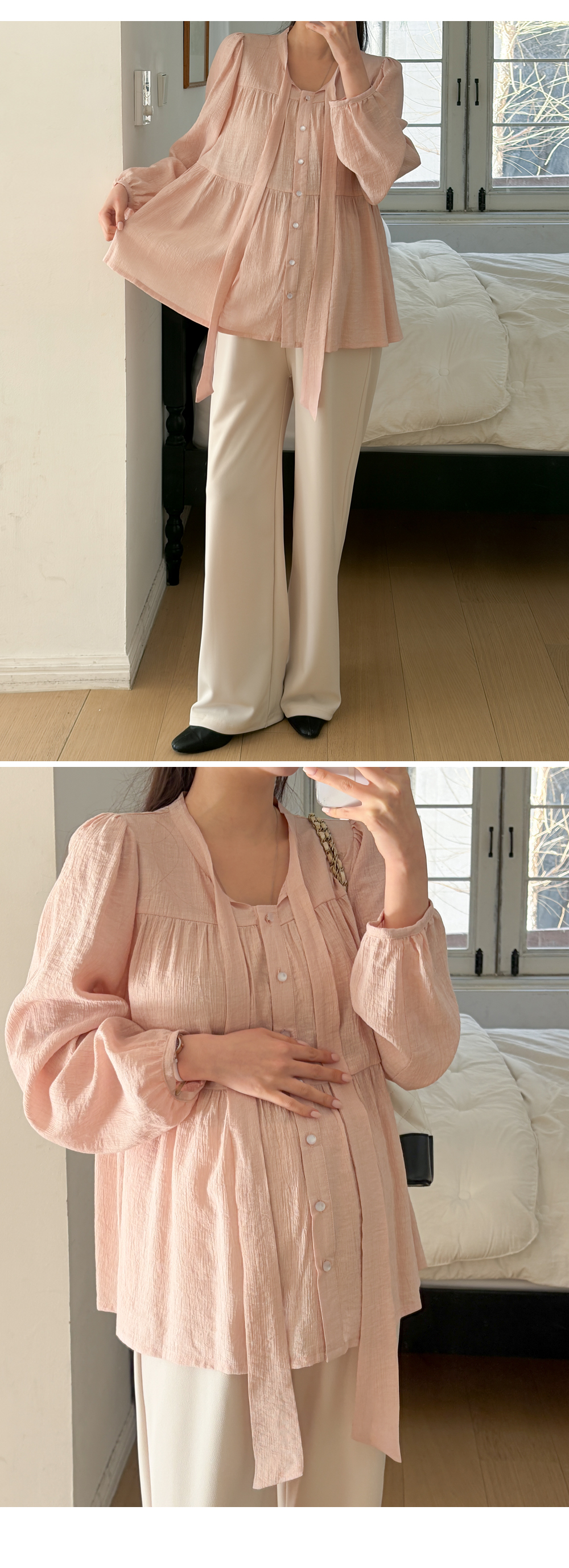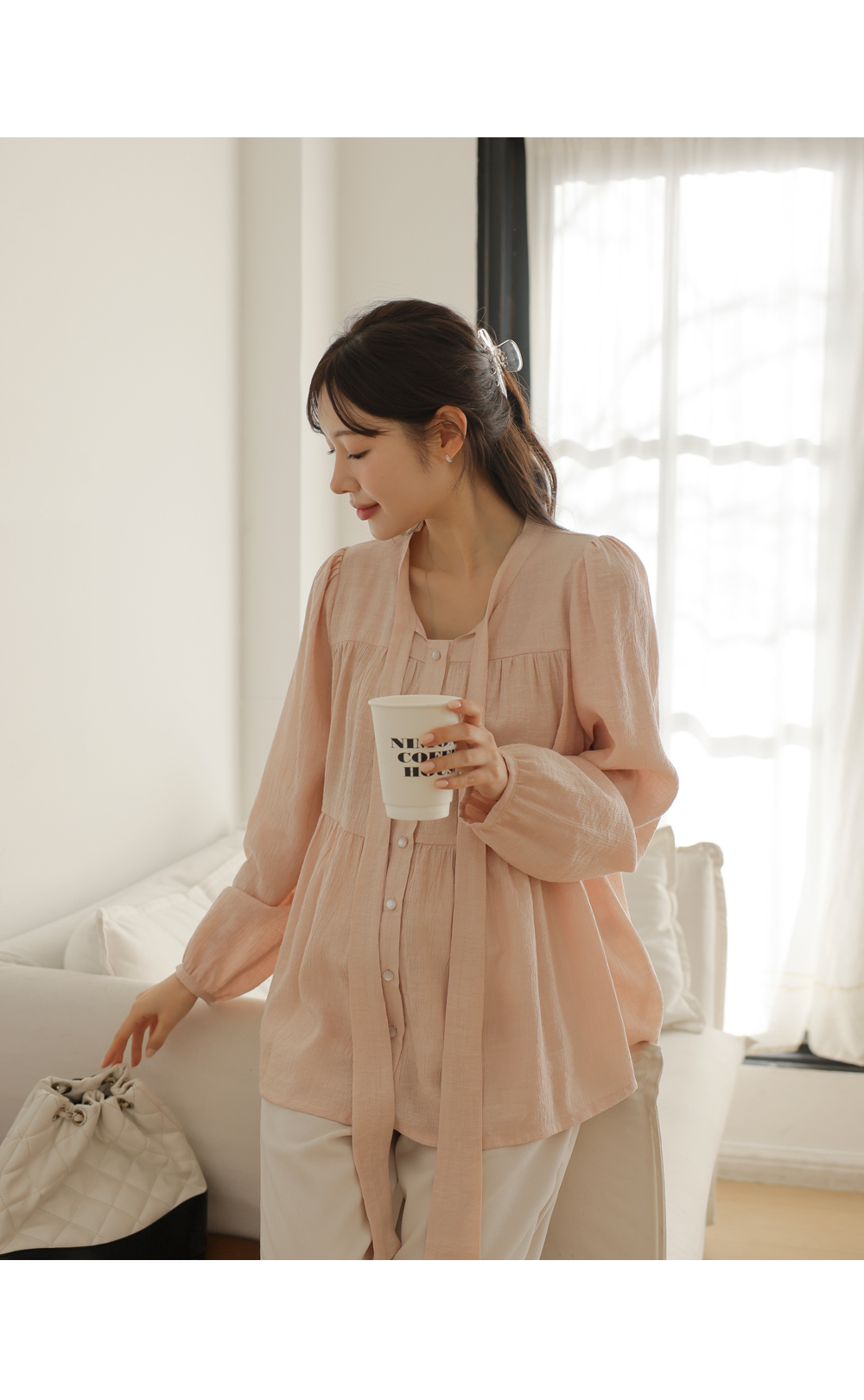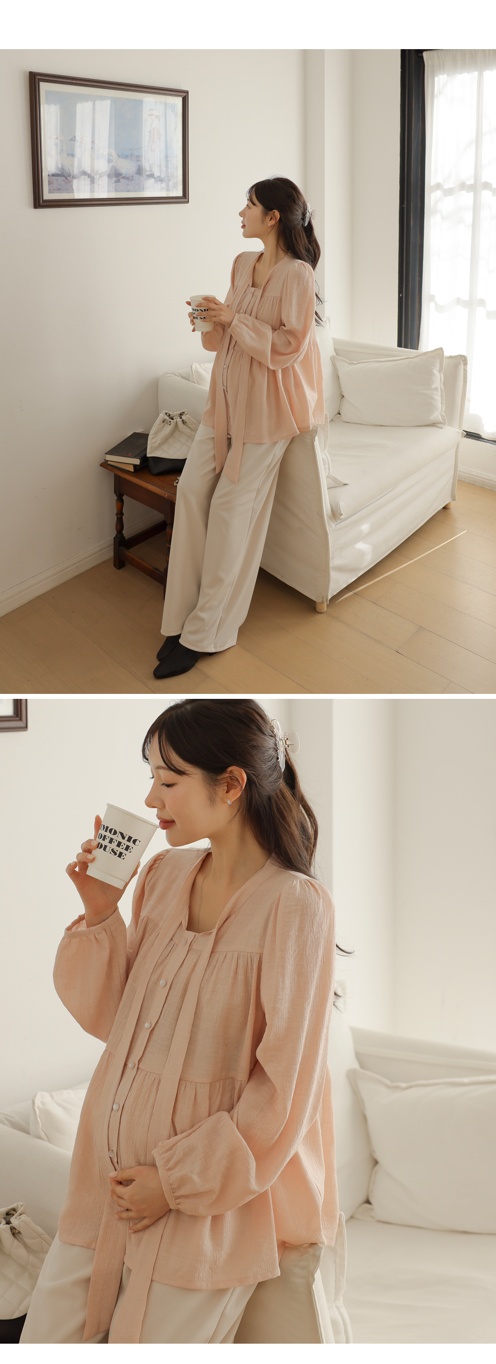 [Opening Special] [Wrinkle-Free/Loose Fit] [S-made] Maternity*Ring-Pleated Tie-Ring Maternity Blouse