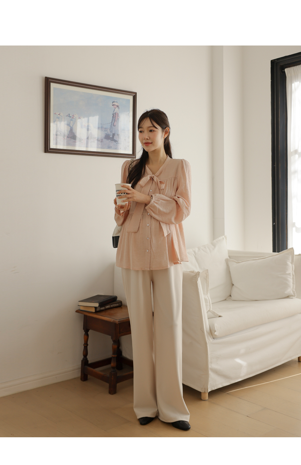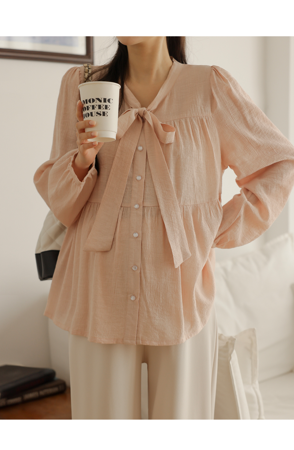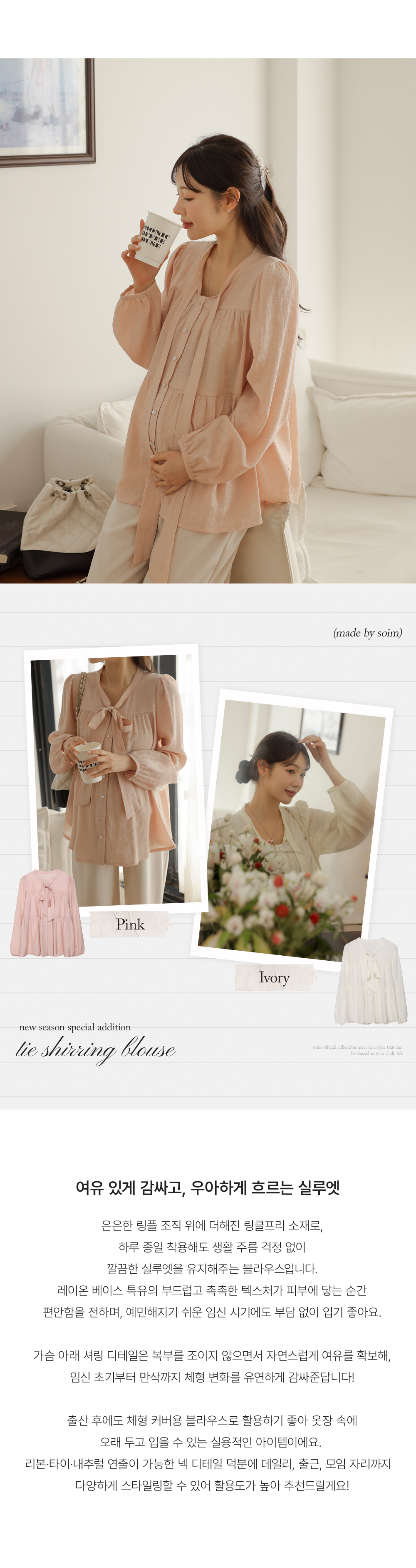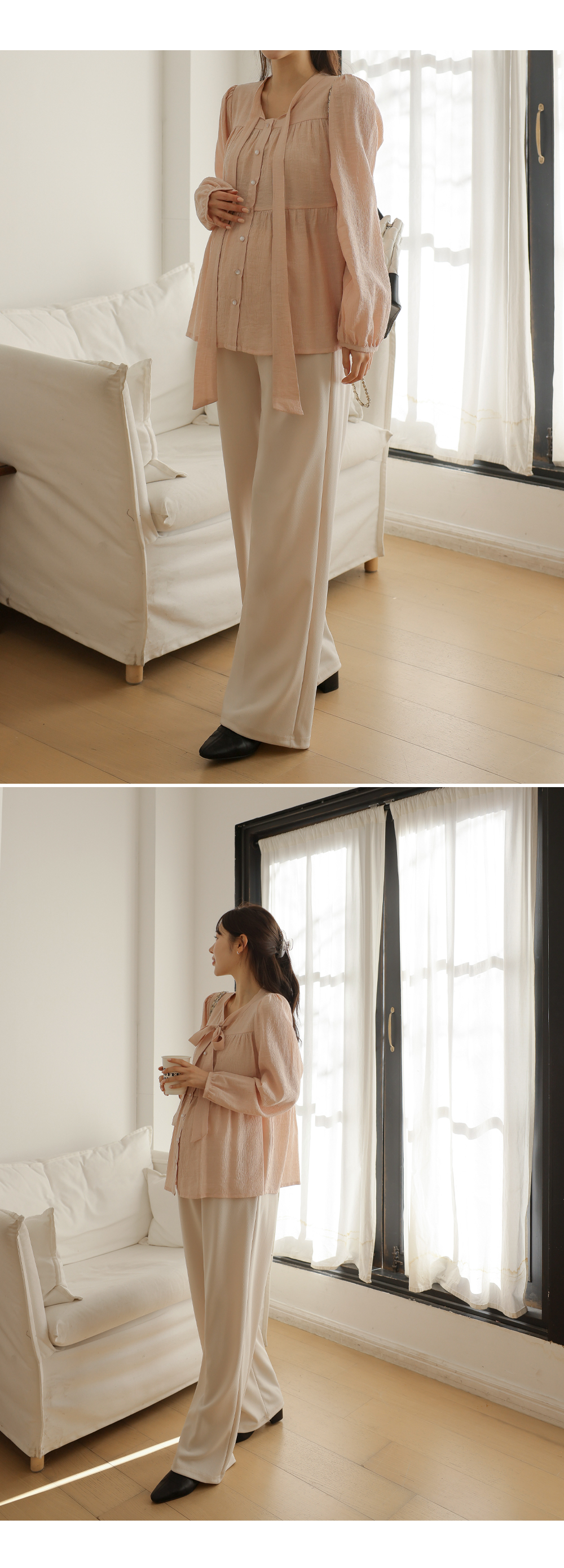 [Opening Special] [Wrinkle-Free/Loose Fit] [S-made] Maternity*Ring-Pleated Tie-Ring Maternity Blouse