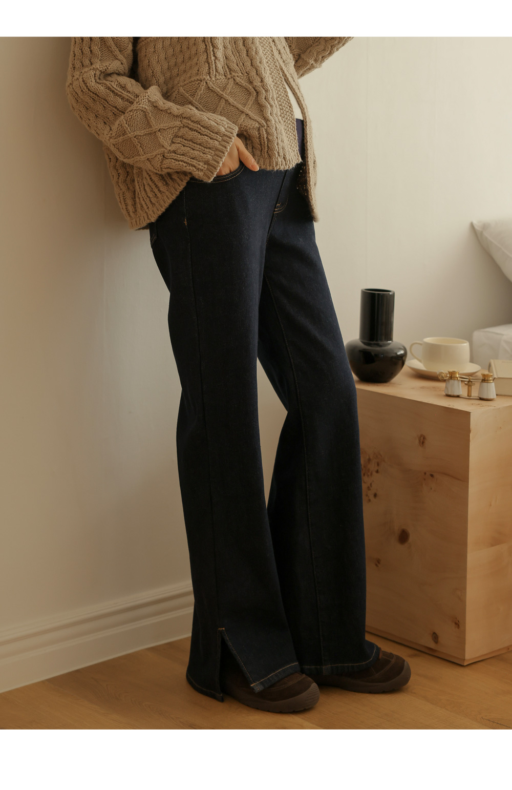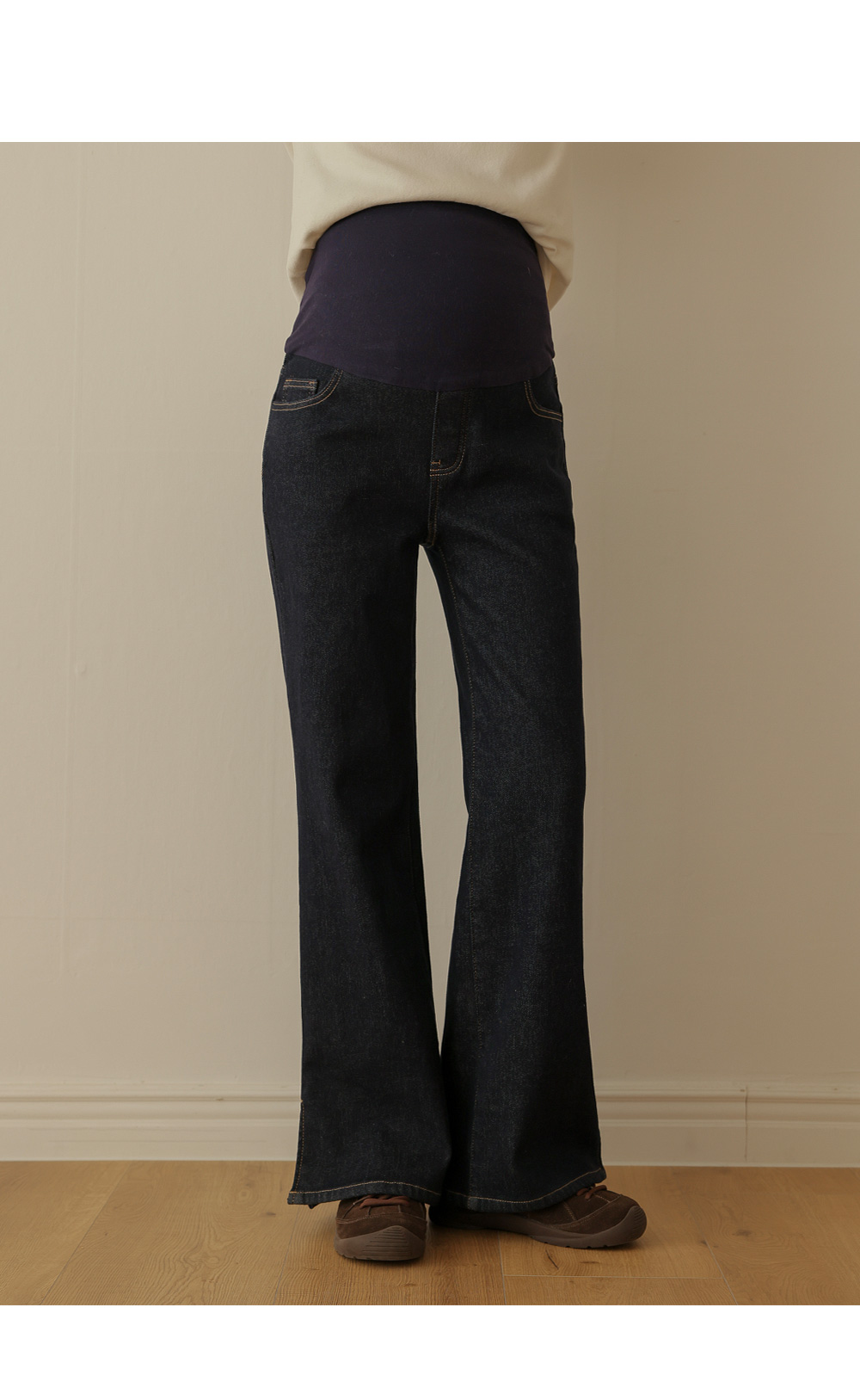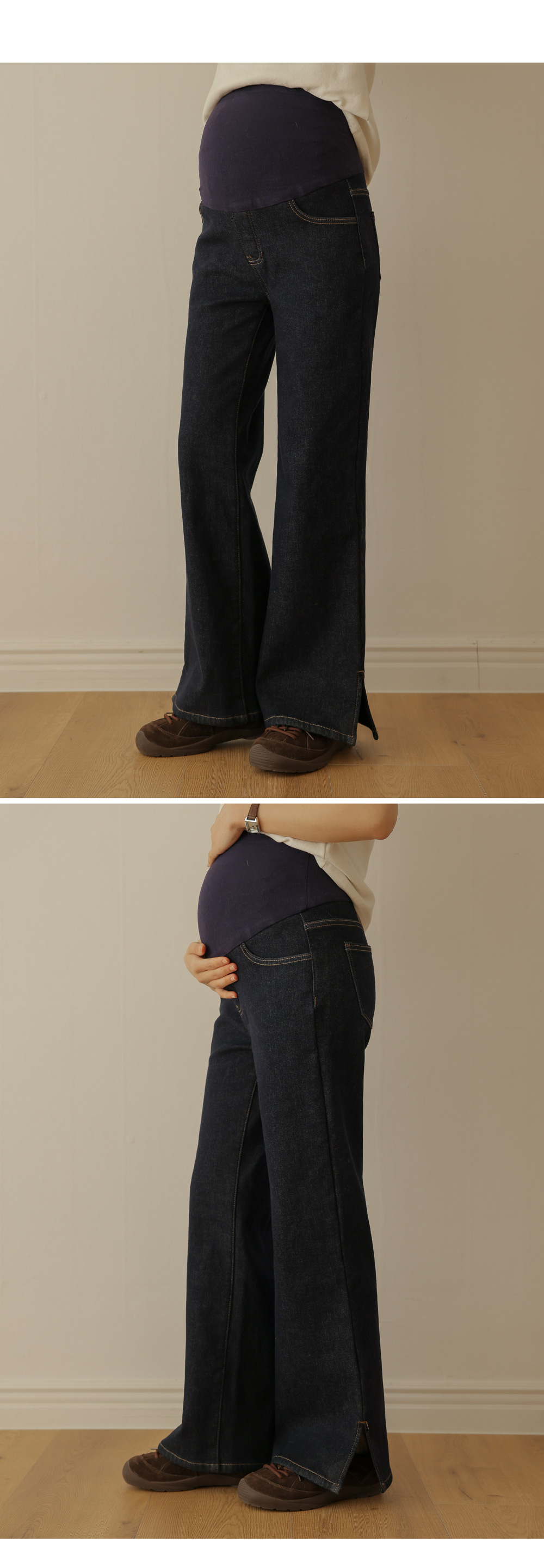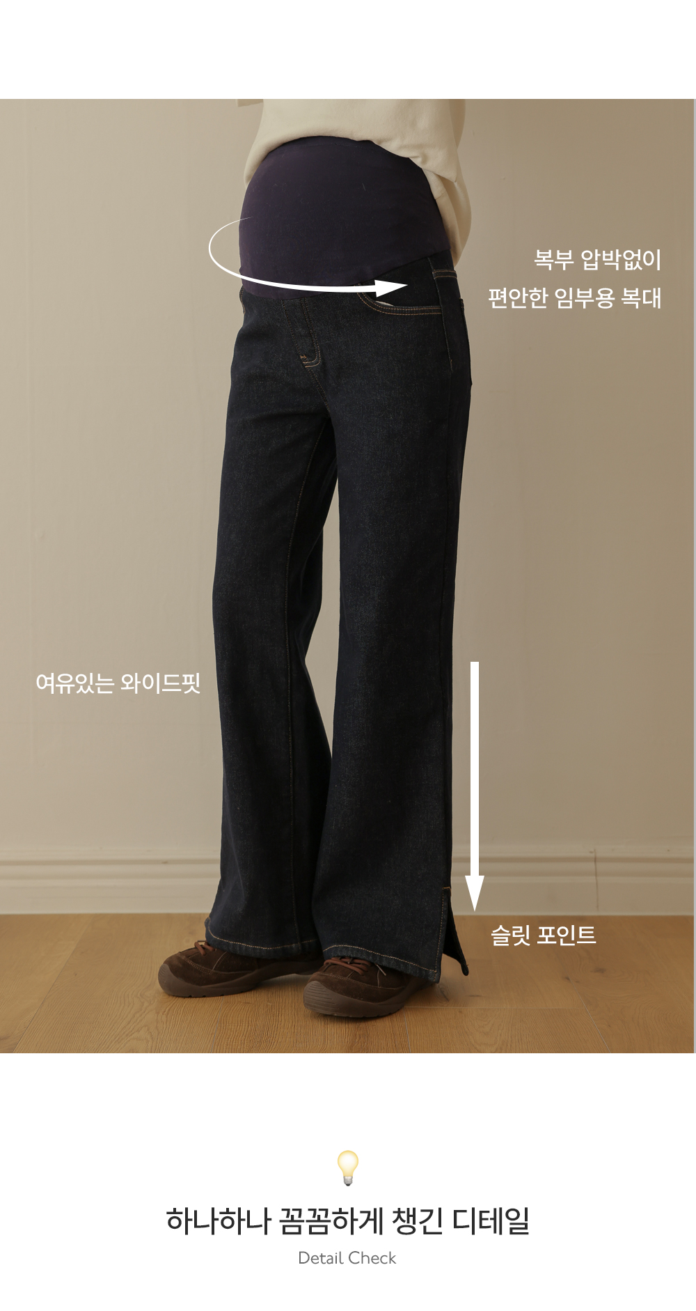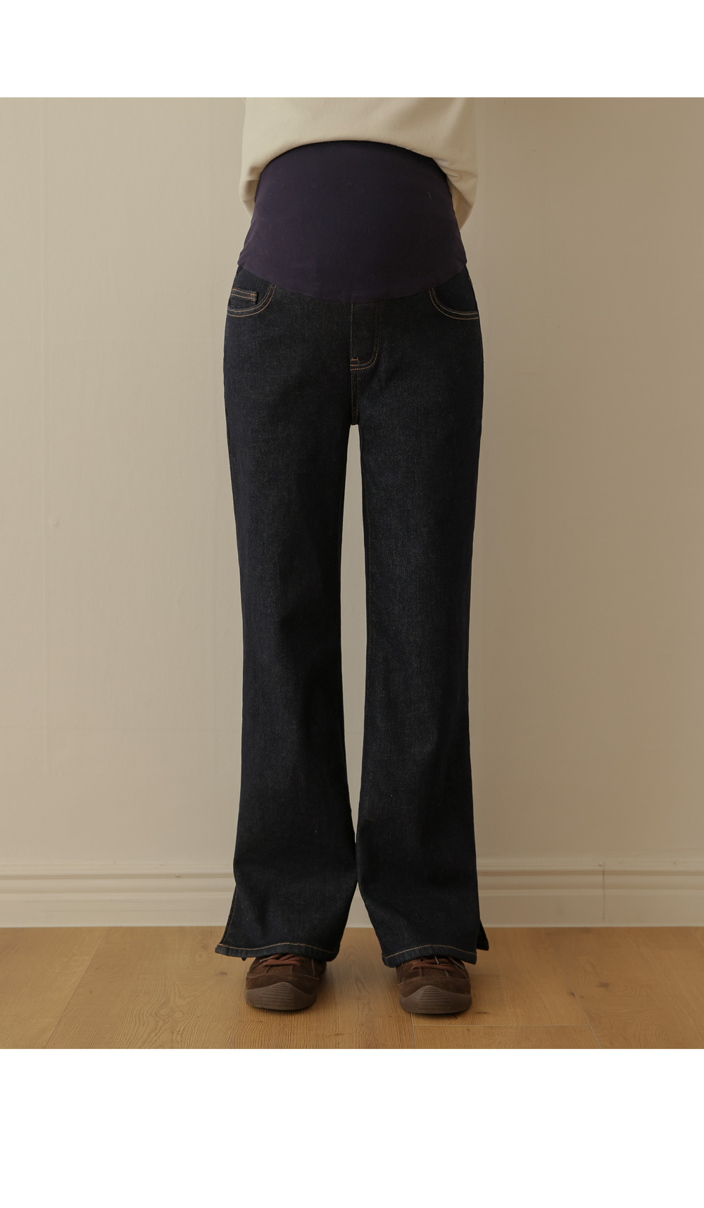 [S-made] Maternity* Life Fit Slit Spandex Wide Maternity Jeans (Ribbed)