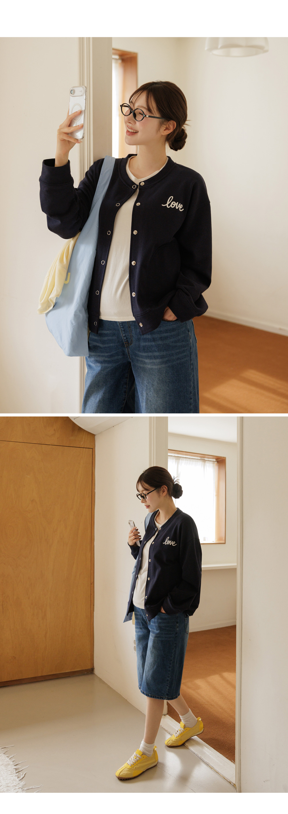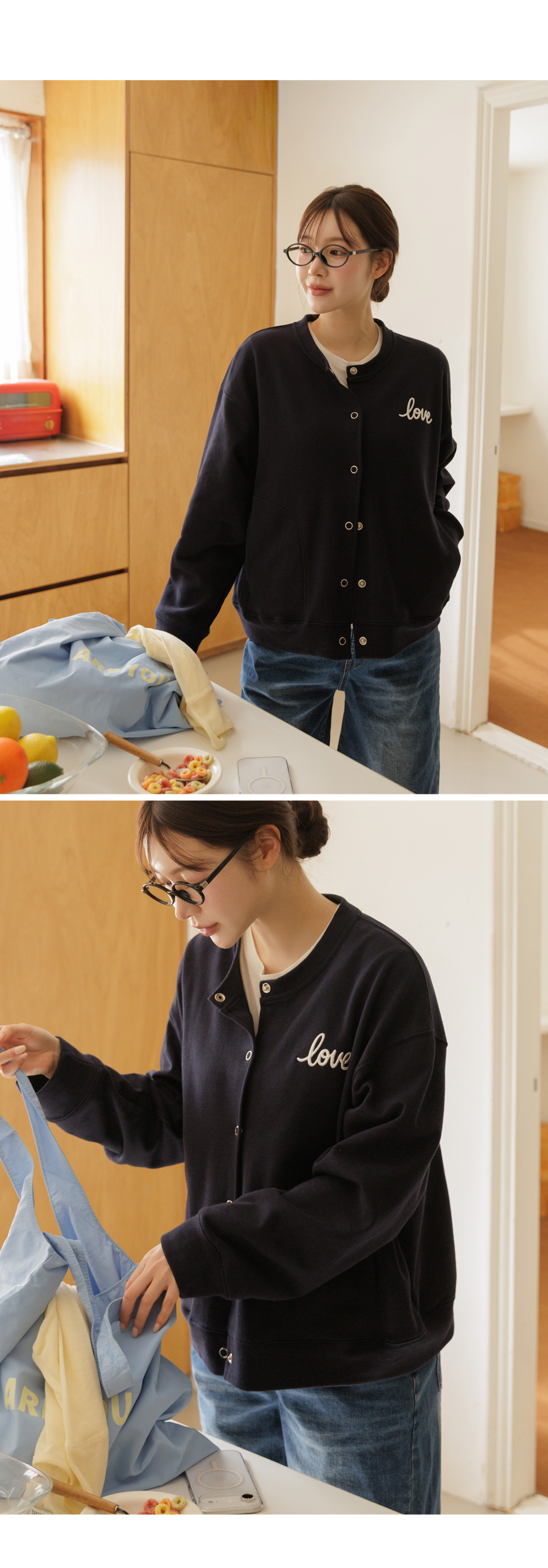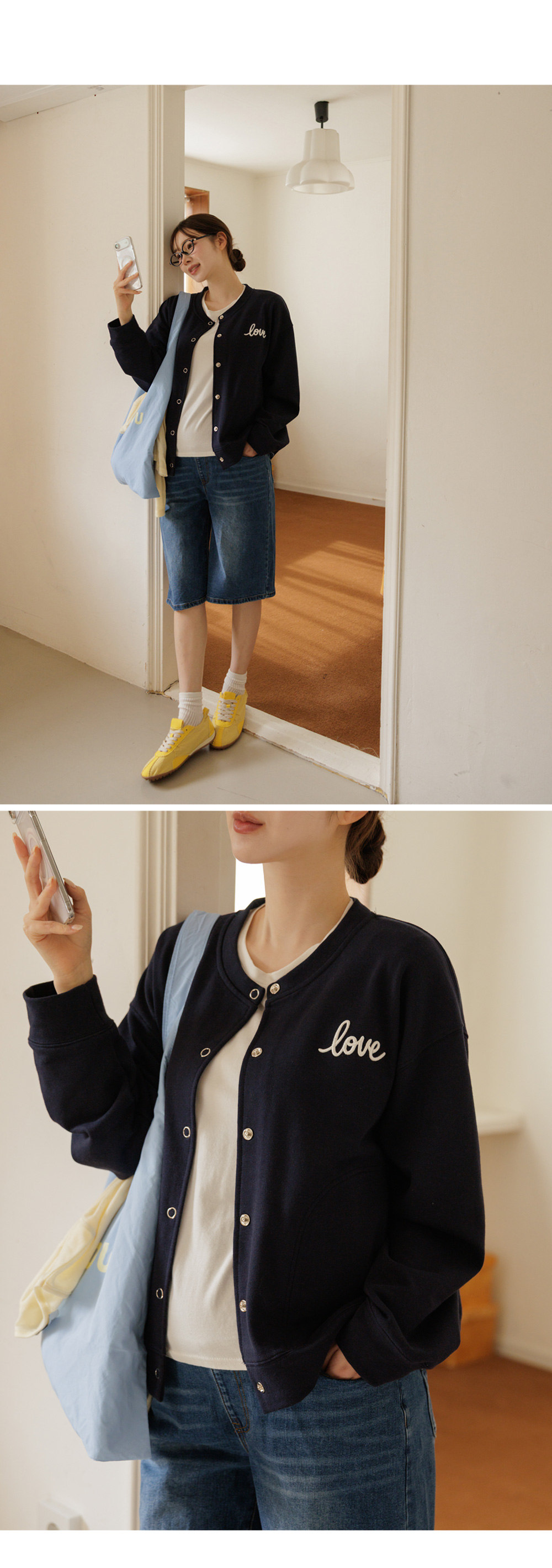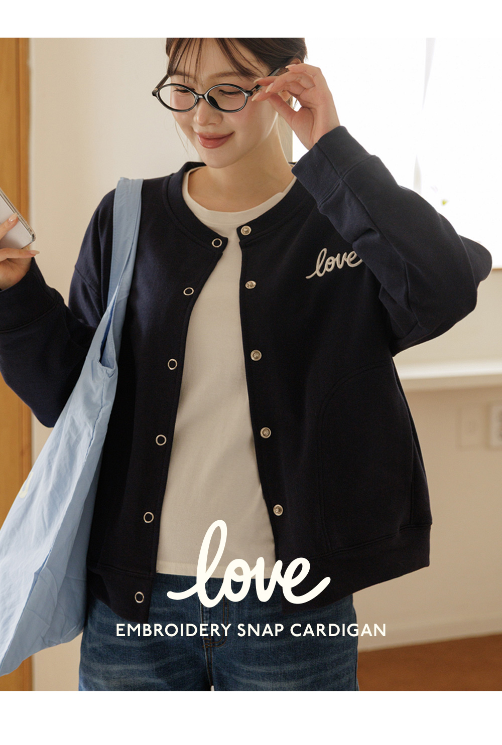 탄탄한 CP쭈리 원단으로 제작된 러브자수 스냅 가디건 입니다