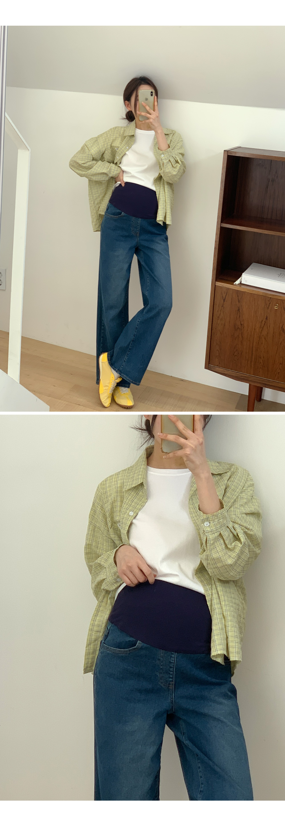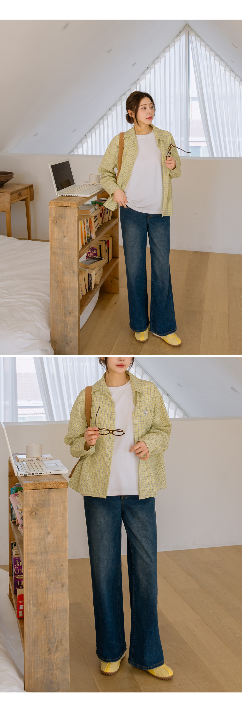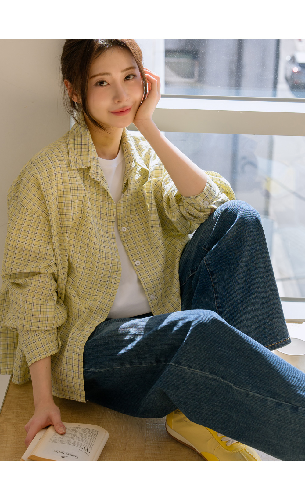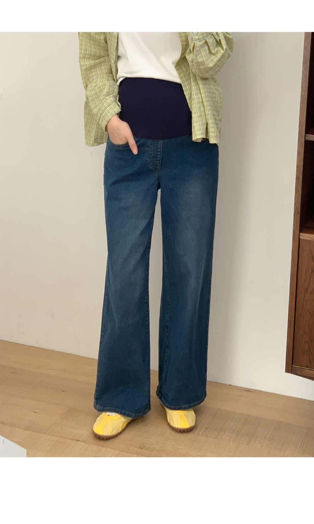 Adjustable band type Wide-fit jeans with a corrugated texture