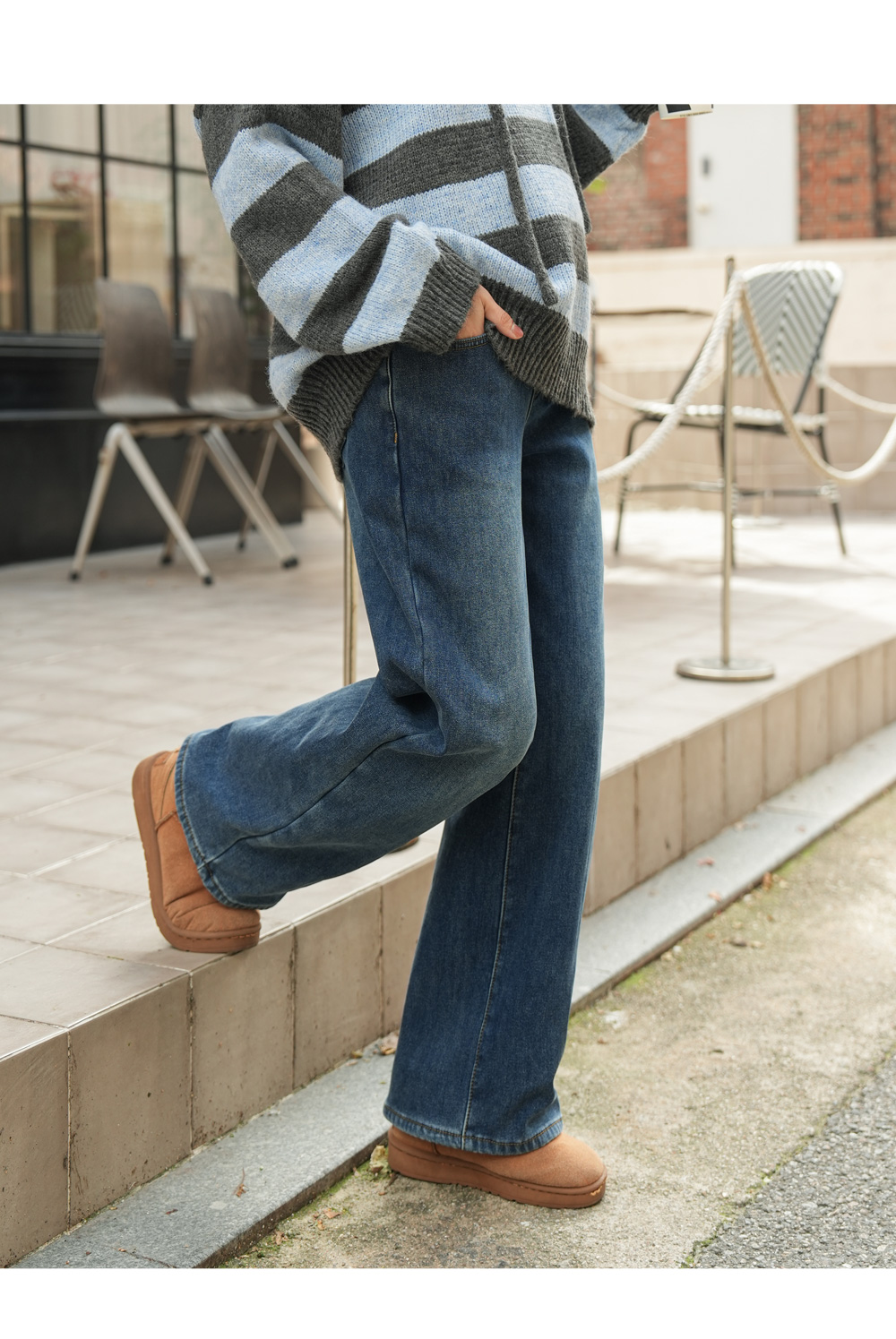 [Slim material/Mink lining] [S-made] Maternity*Real slim touch wide maternity jeans (raised pile)
