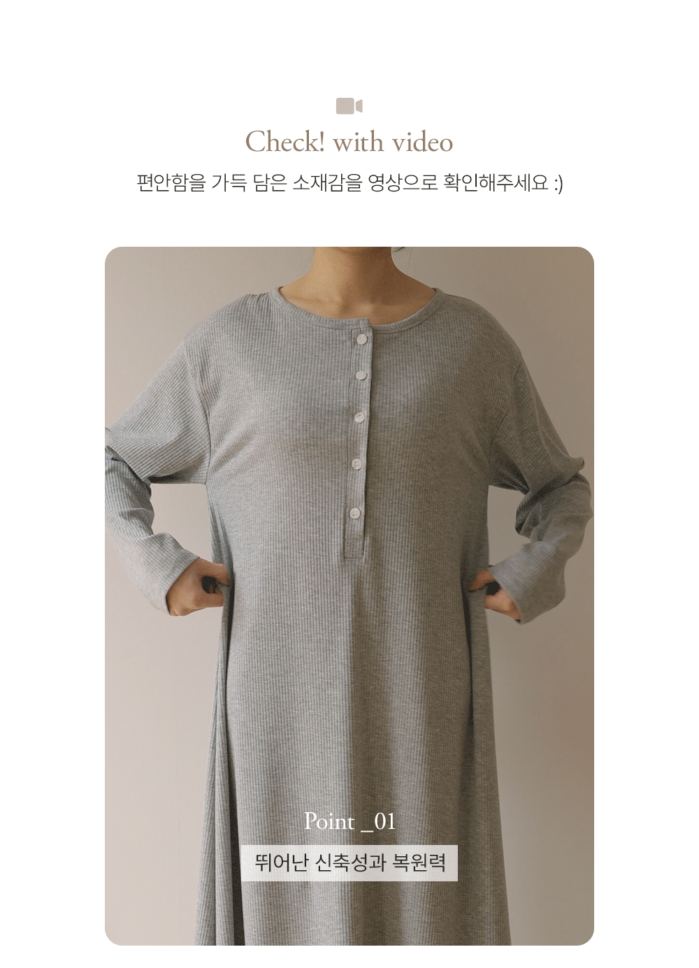Product information본 상품은 수유 원피스 입니다임신 초기부터 중기까지 착용이가능한 임부겸용상품입니다 부드러운 골지 스판 원단의 롱 원피스로, 체형 커버와 편안한 착용감을 동시에 만족시키는 원피스입니다 |