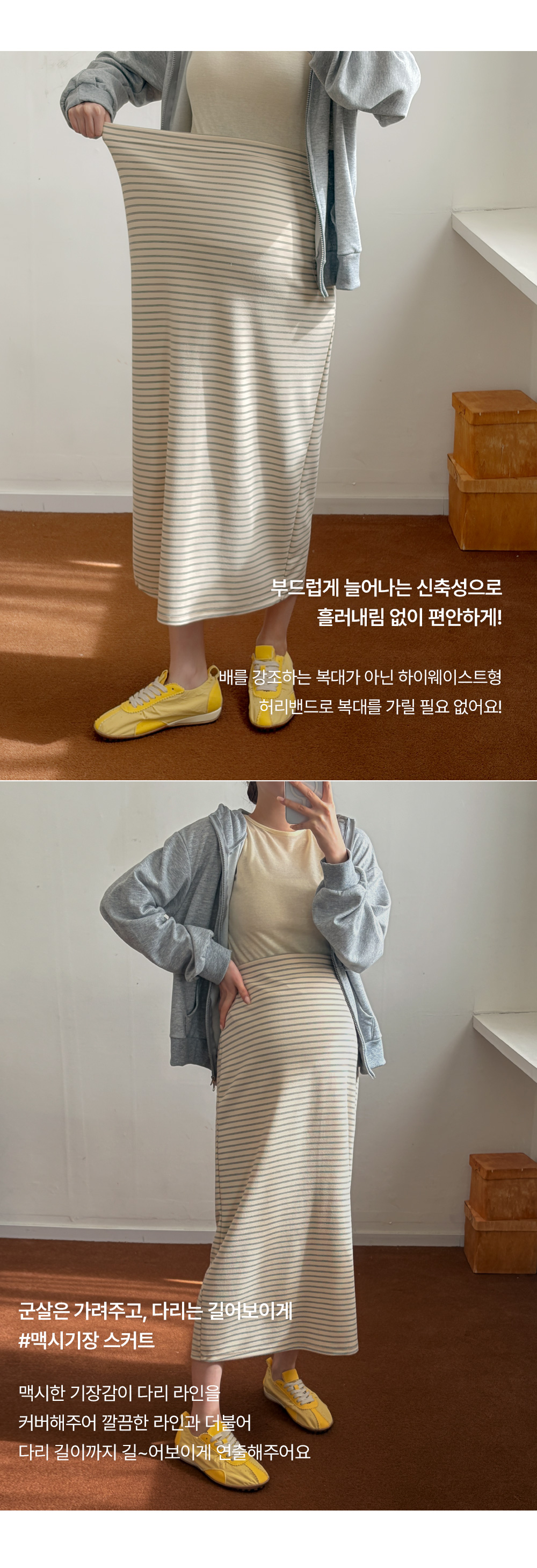 [Tension GOOD/Daily Item] [S-made] Maternity* Double Stretch Stripe Maternity Skirt
