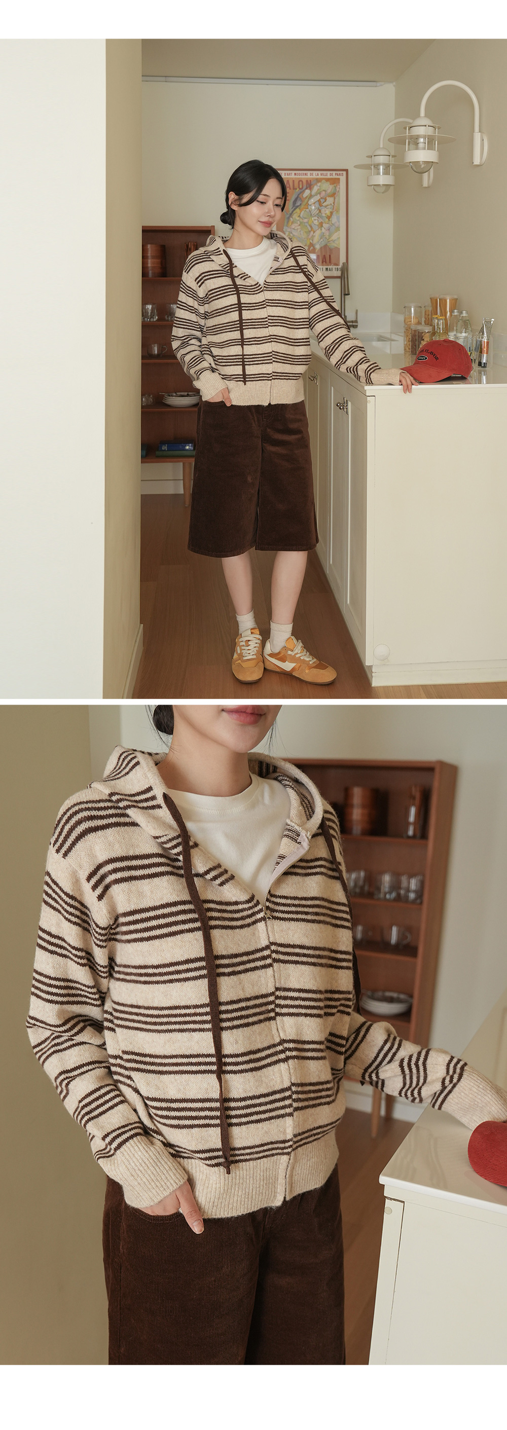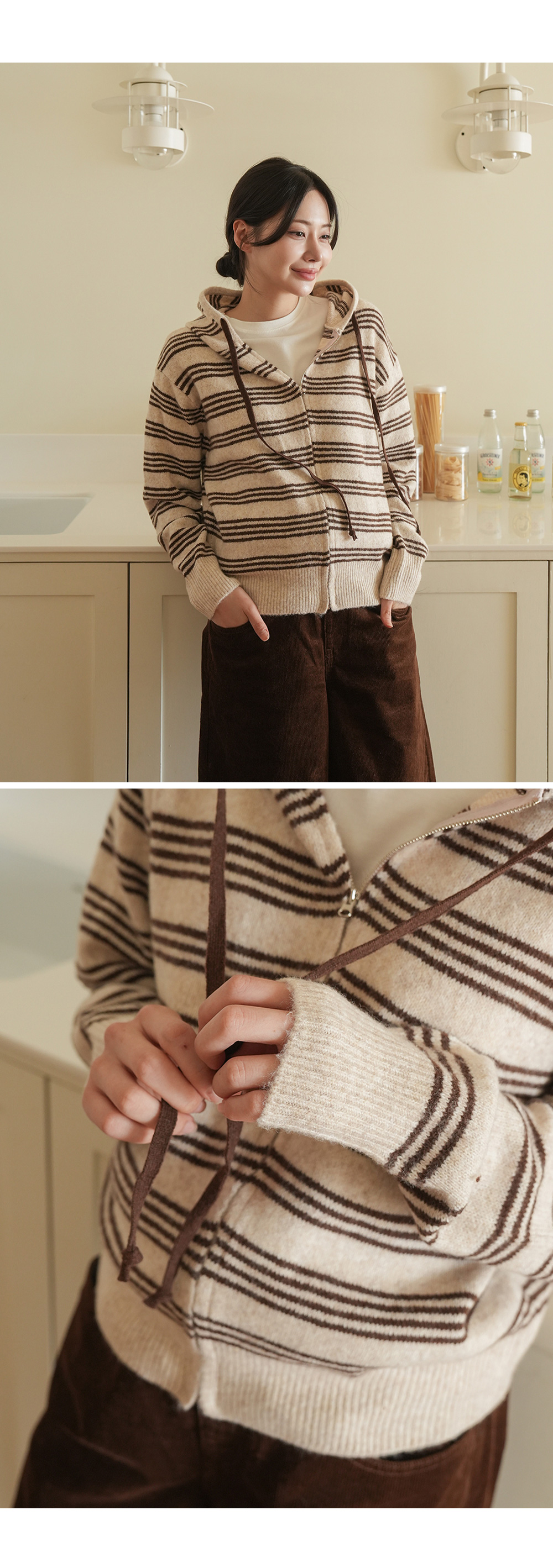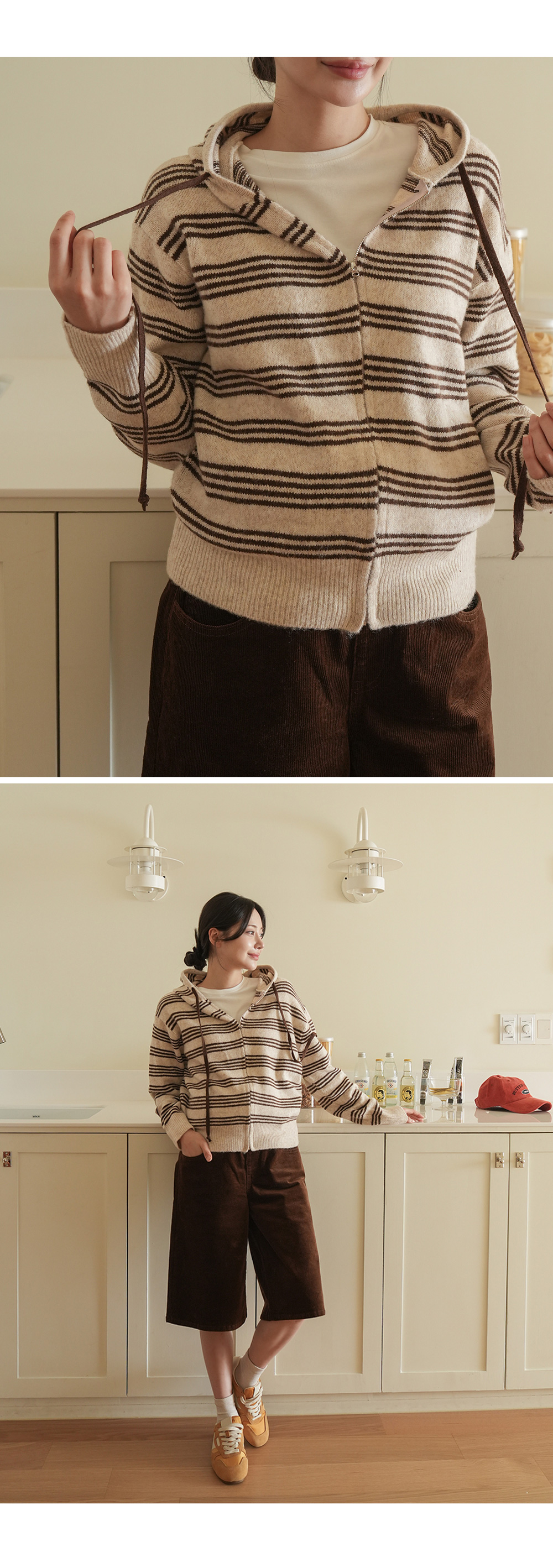 후드집업의 실용성이 더해진 니트 아이템