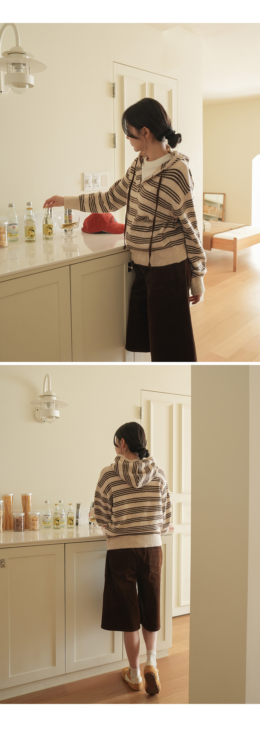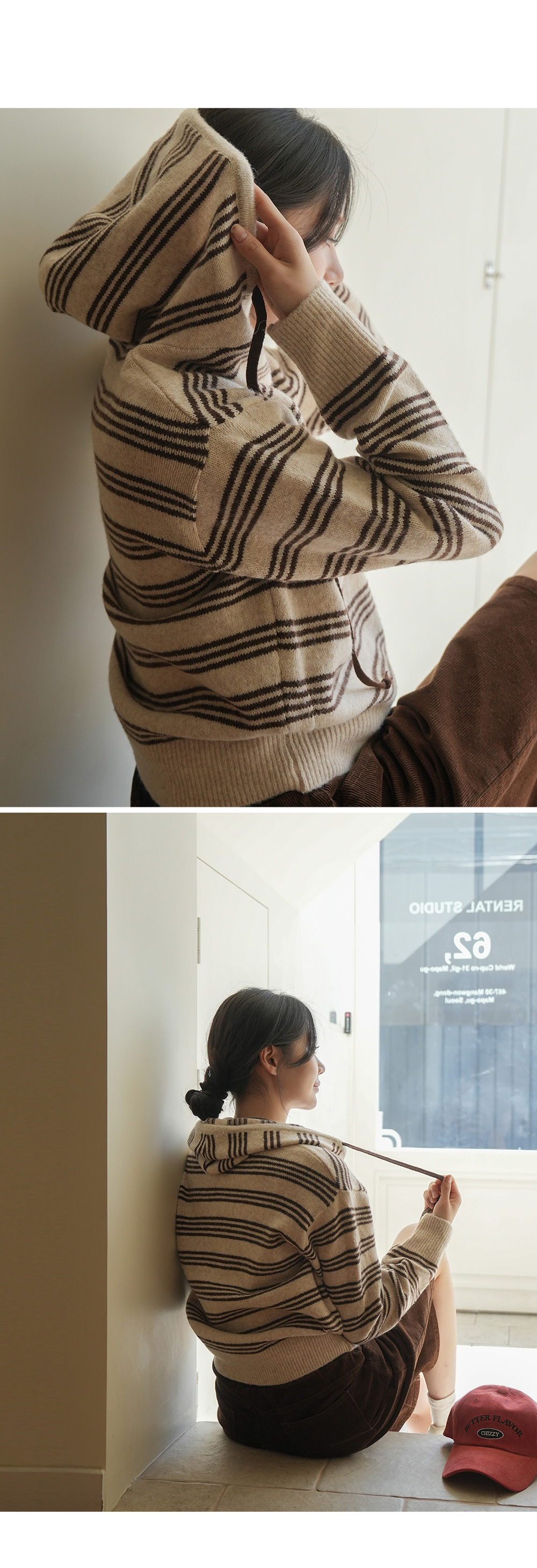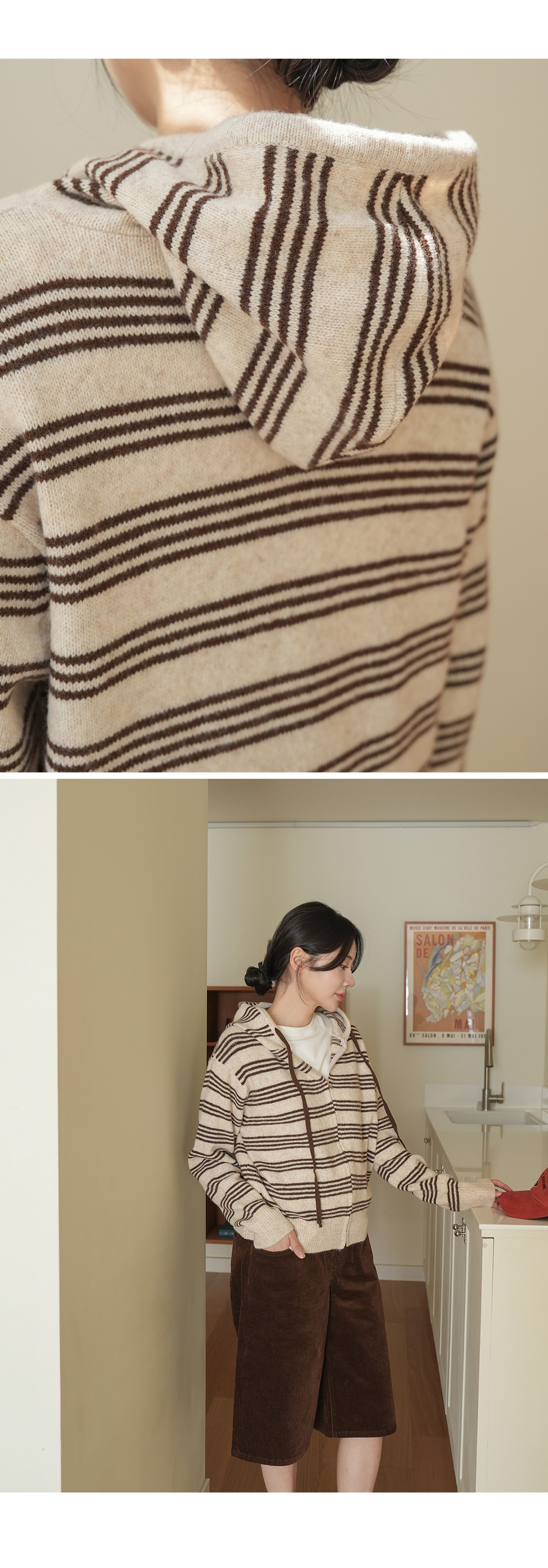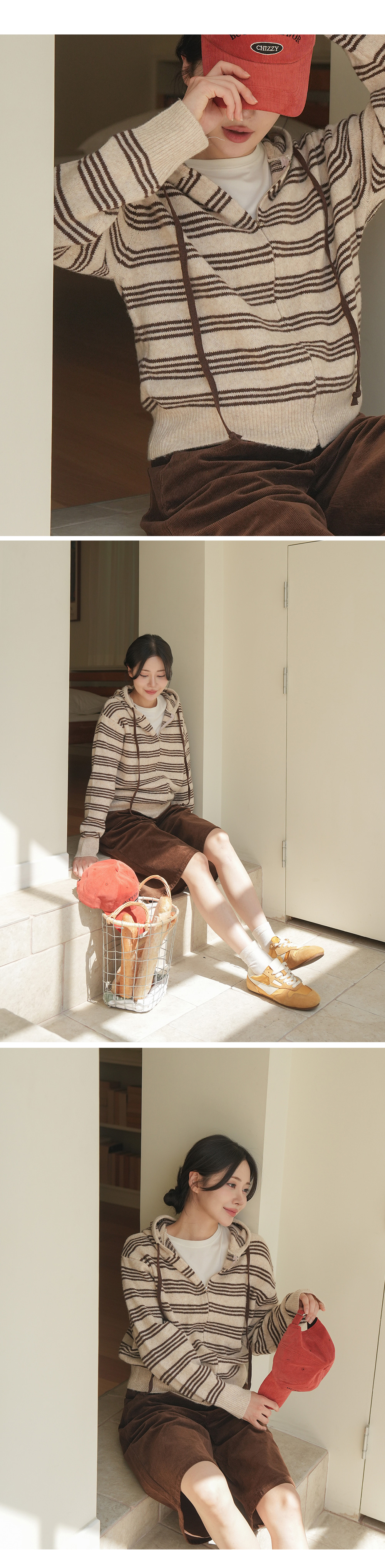 후드집업의 실용성이 더해진 니트 아이템
