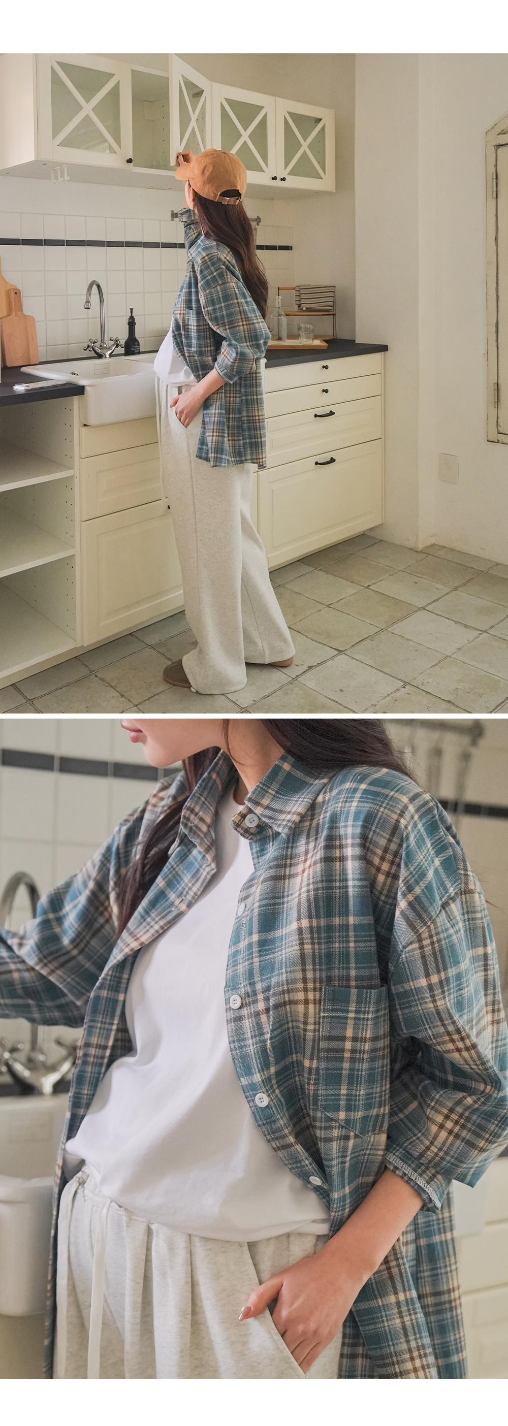 Product information 만삭까지 편안하게 착용할 수 있는 넉넉한 핏의 셔츠입니다.