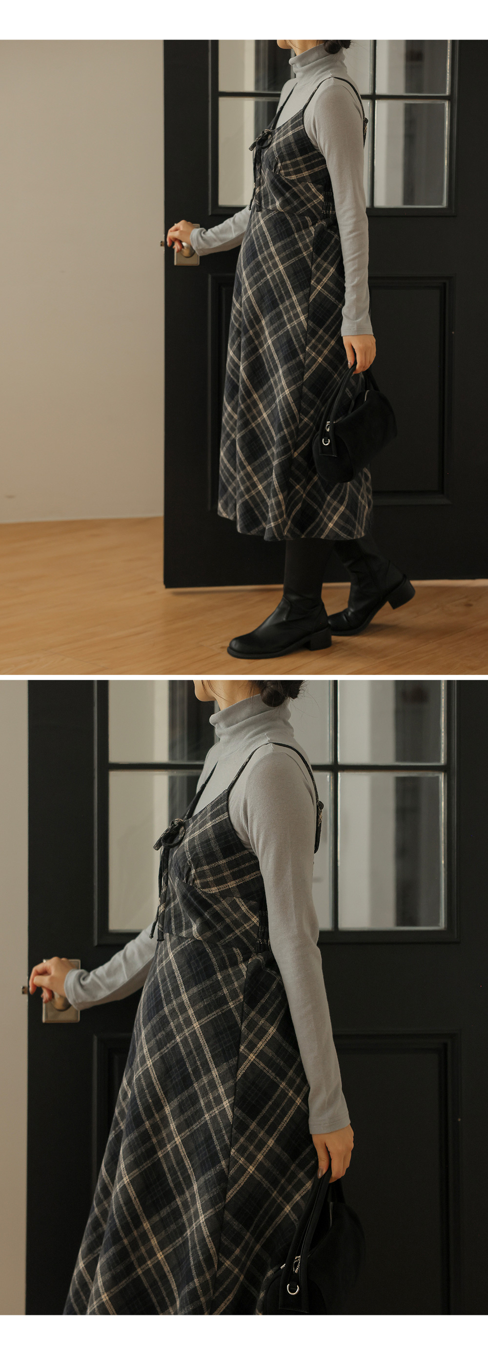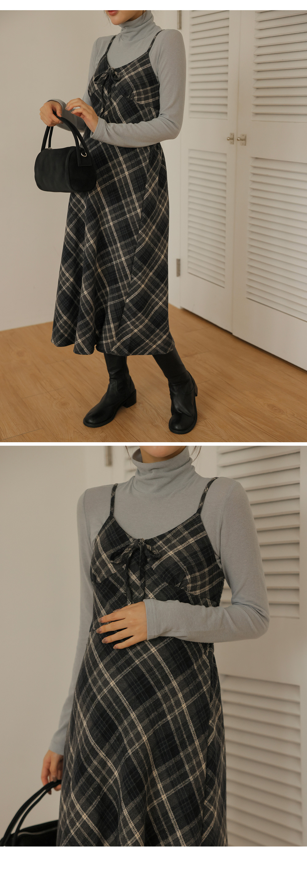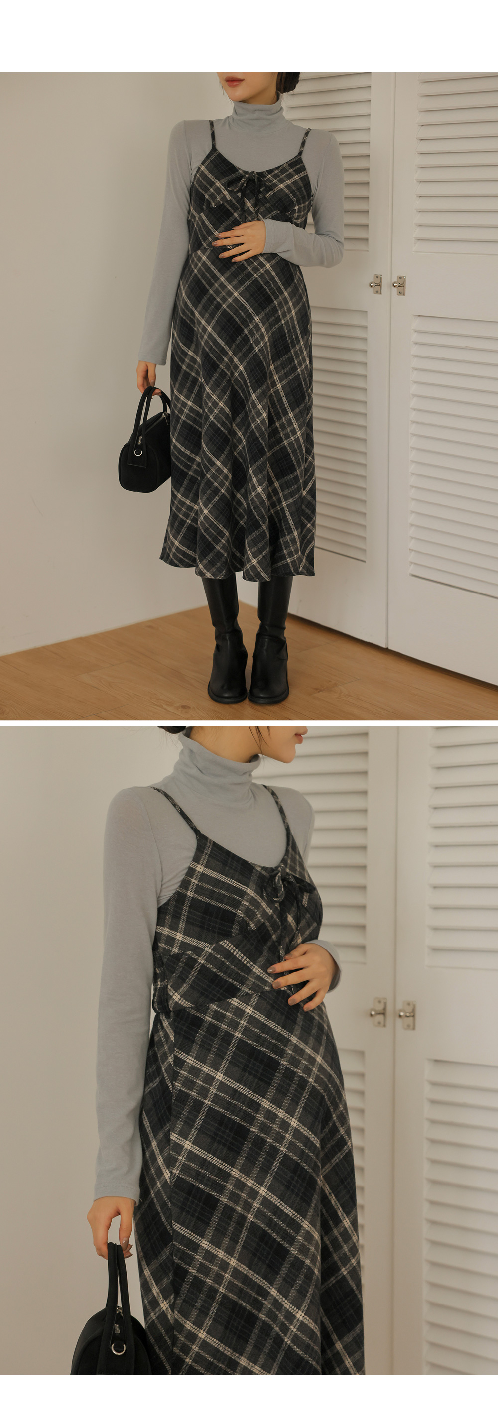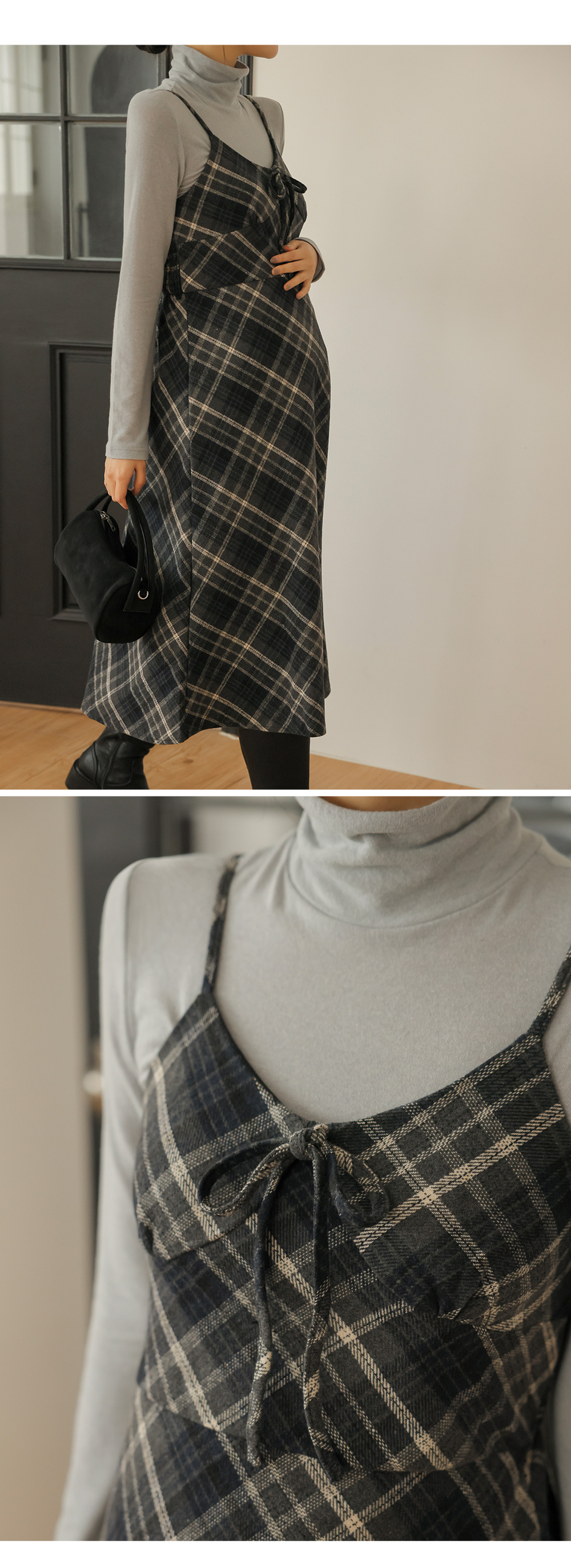 여성스러운 뷔스티에 체크원피스