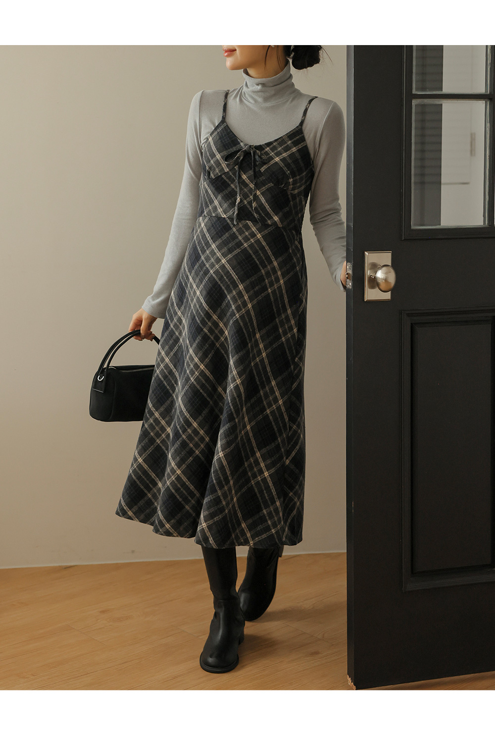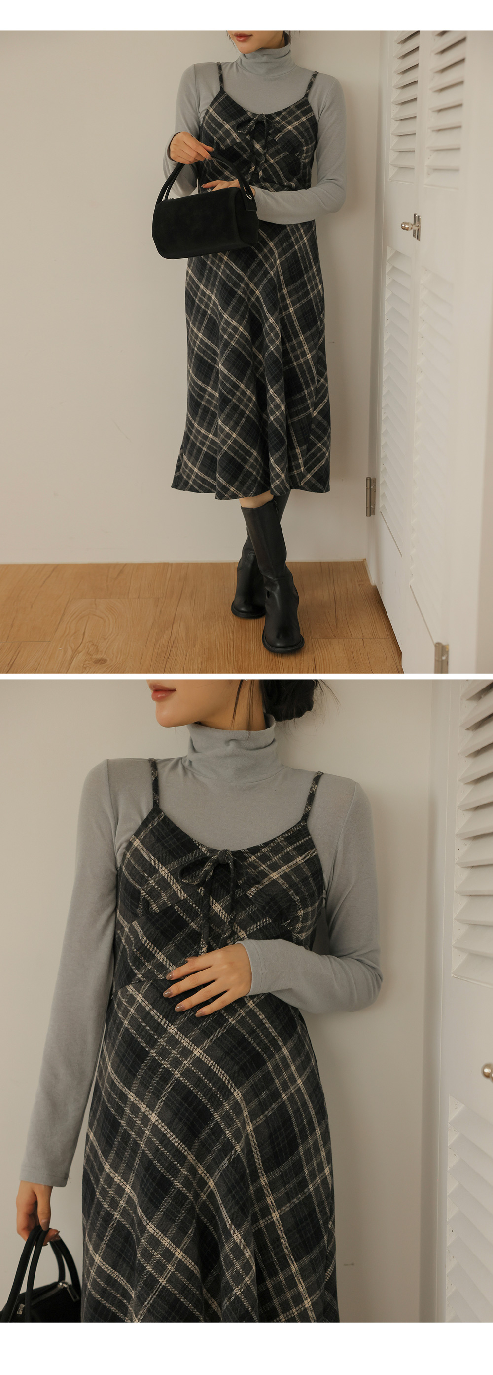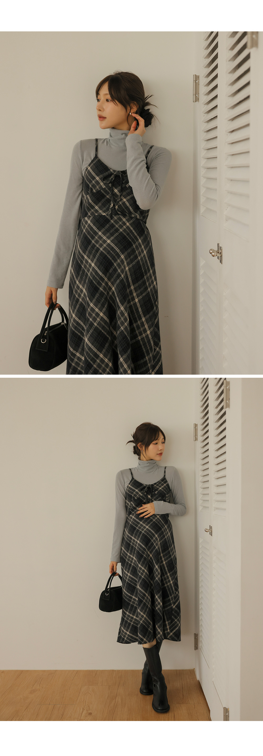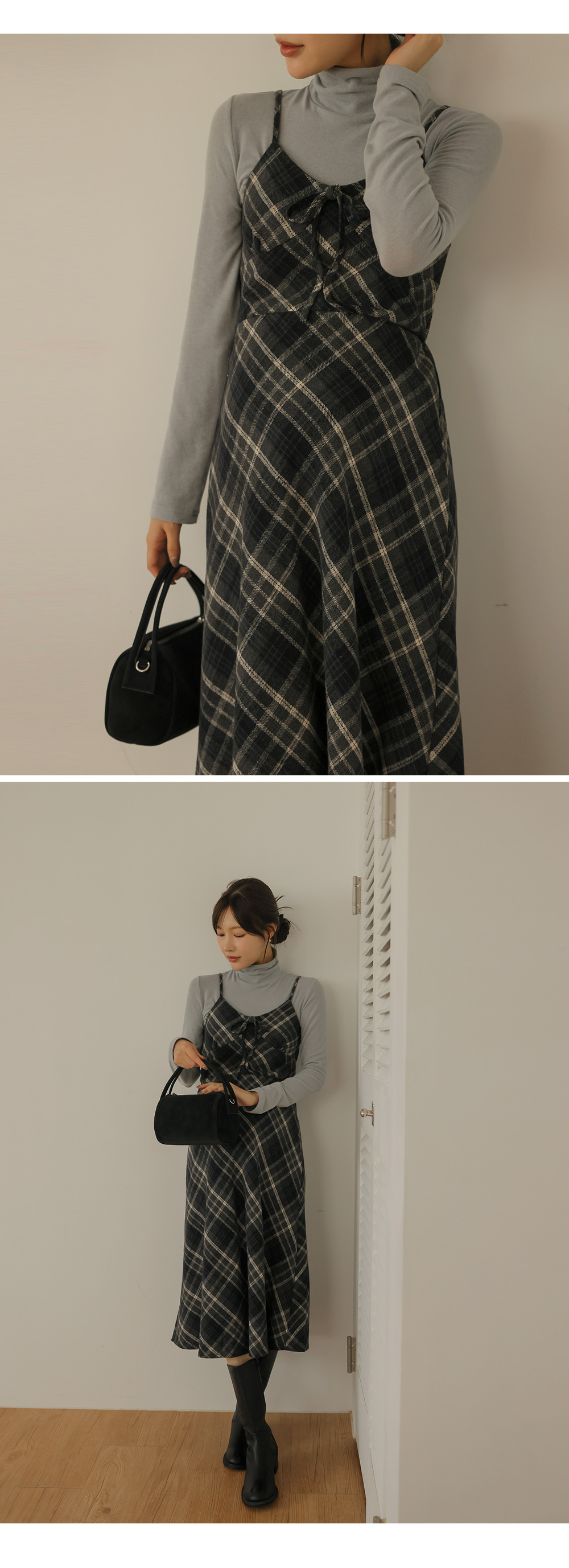 여성스러운 뷔스티에 체크원피스