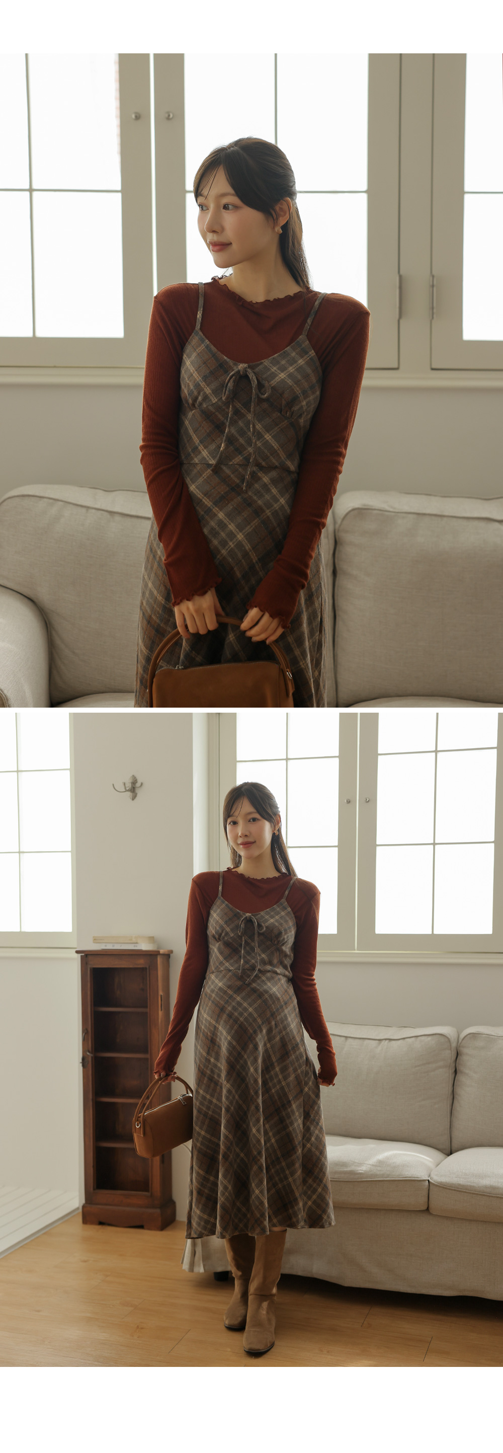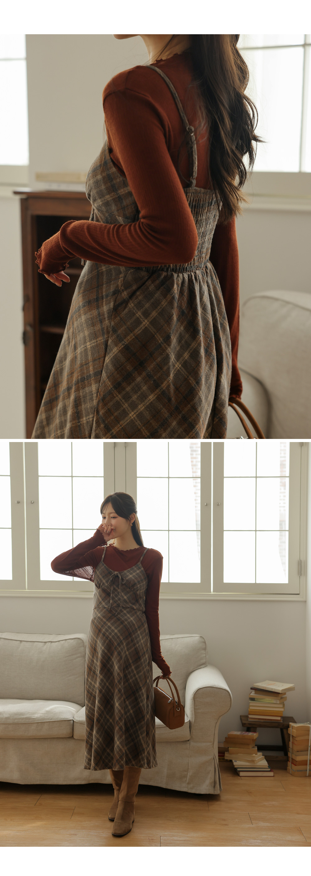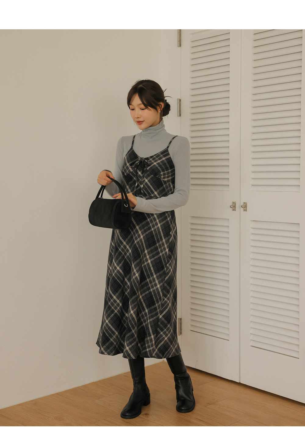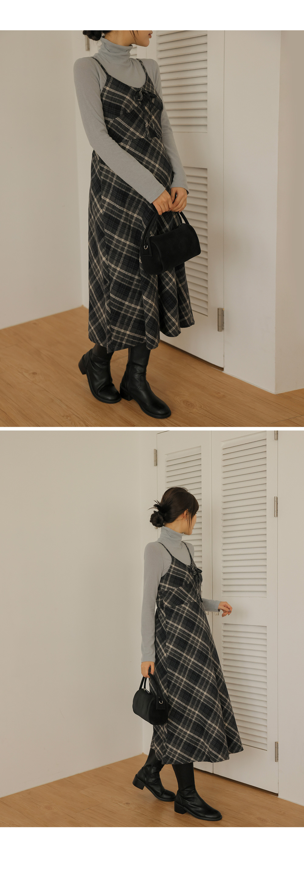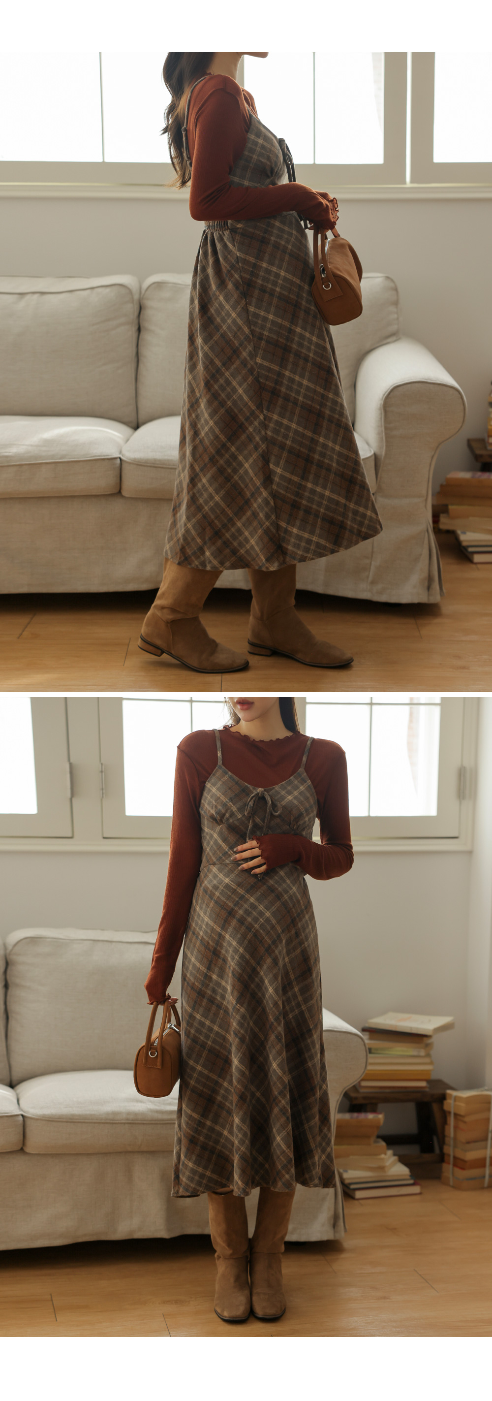여성스러운 뷔스티에 체크원피스