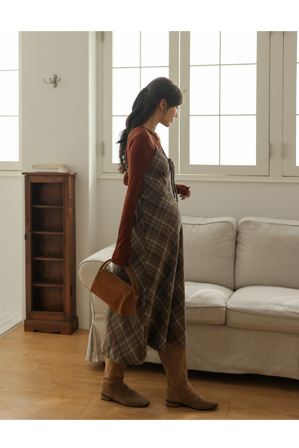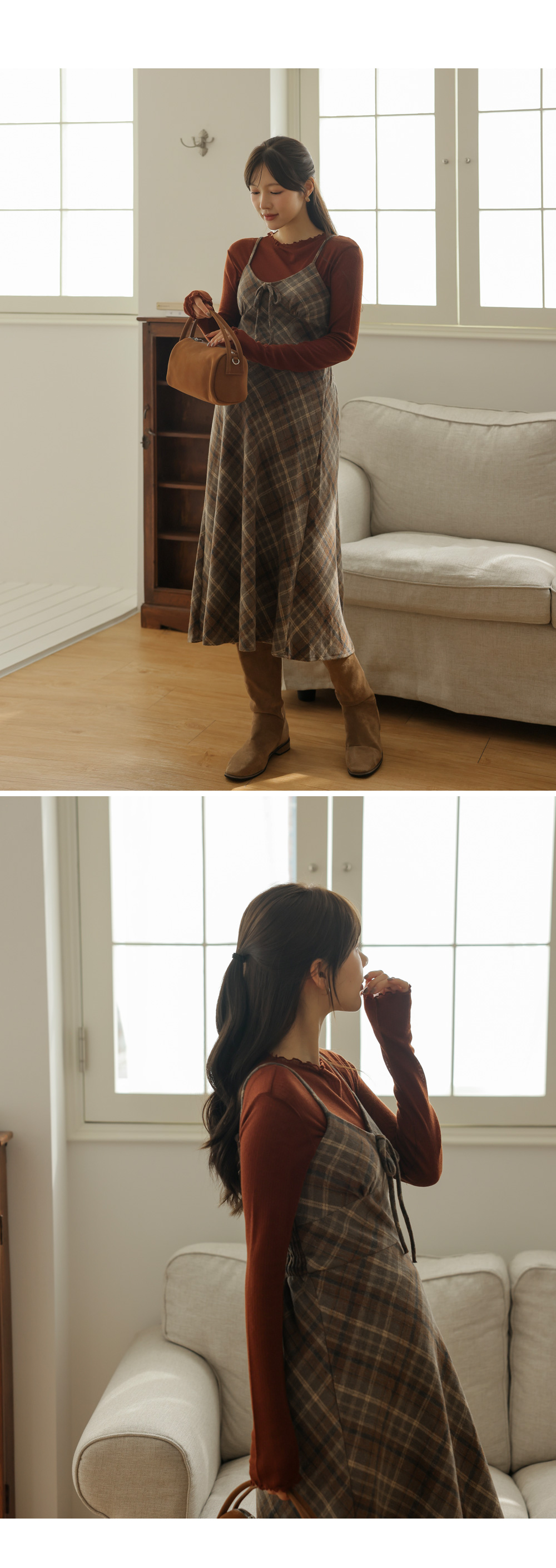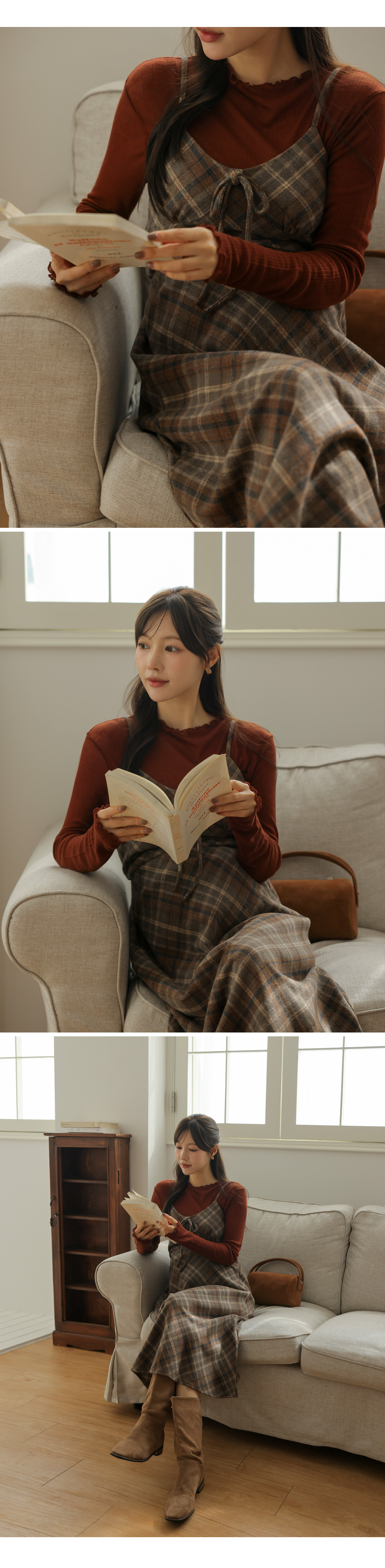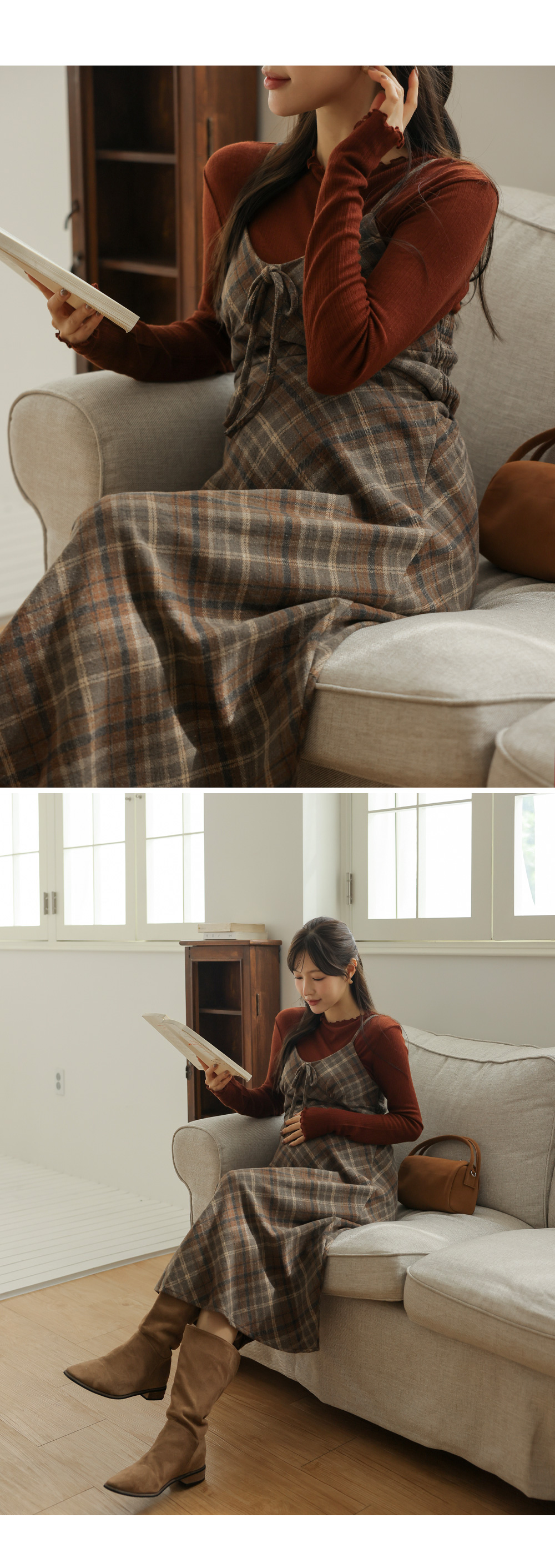 여성스러운 뷔스티에 체크원피스