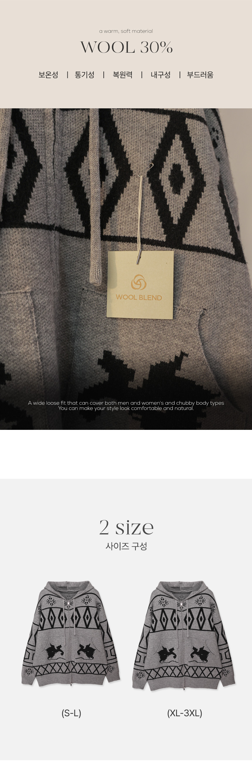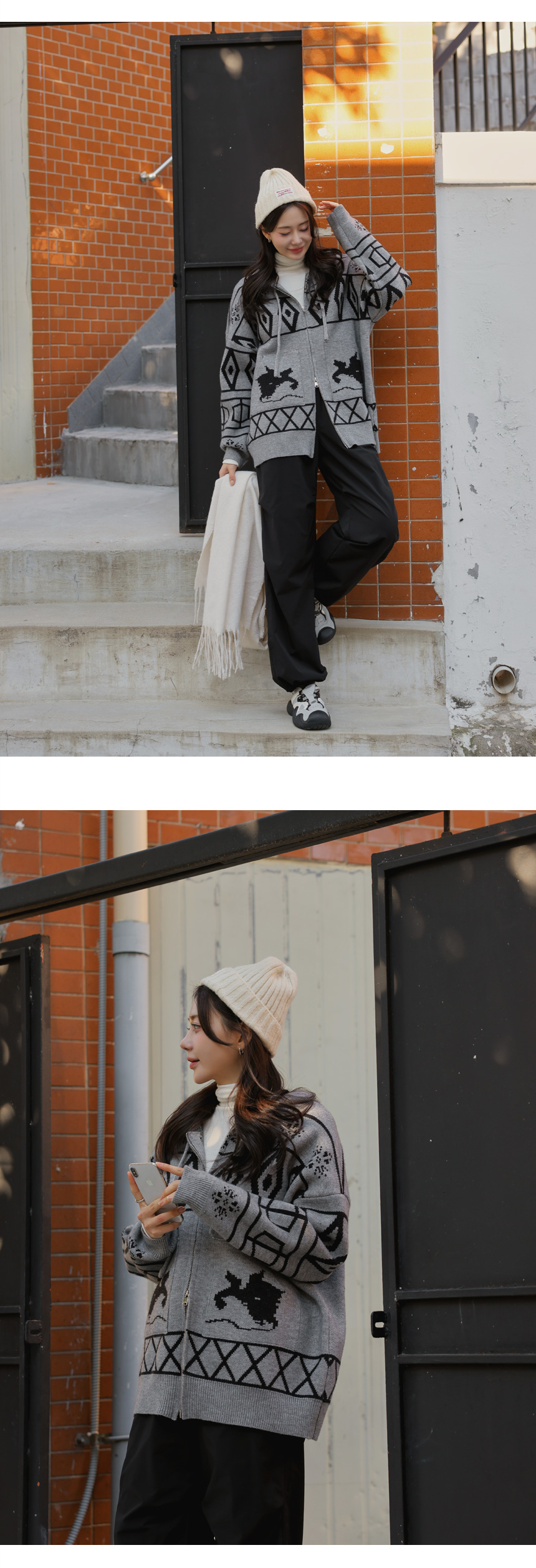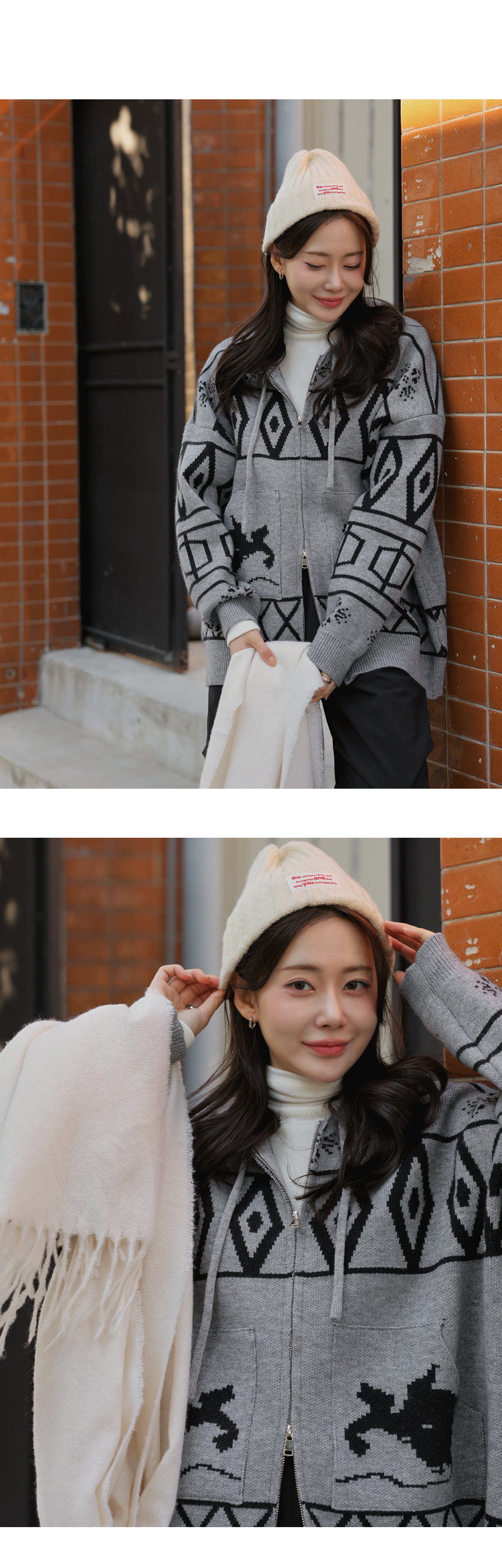 Stylish zip up hoodies with seasonal sensibility Nordic Patterns loose fit Knit 5% discount on new products until the 23rd