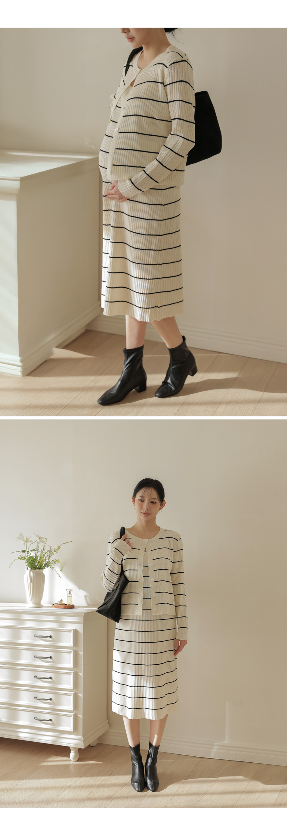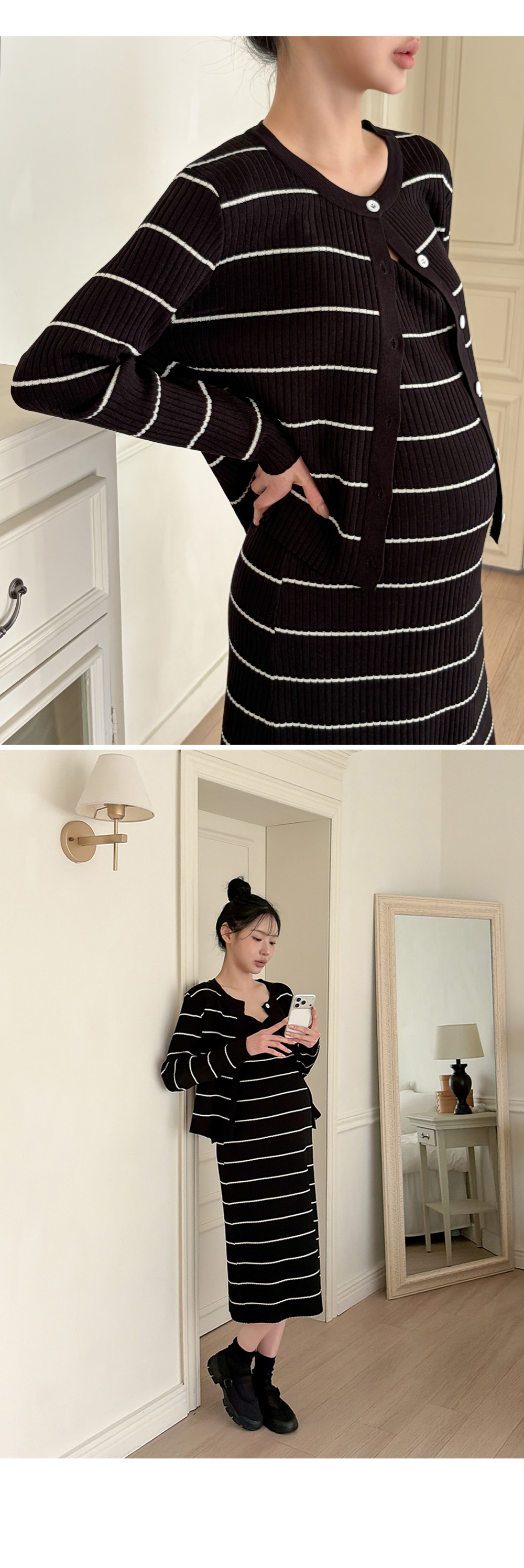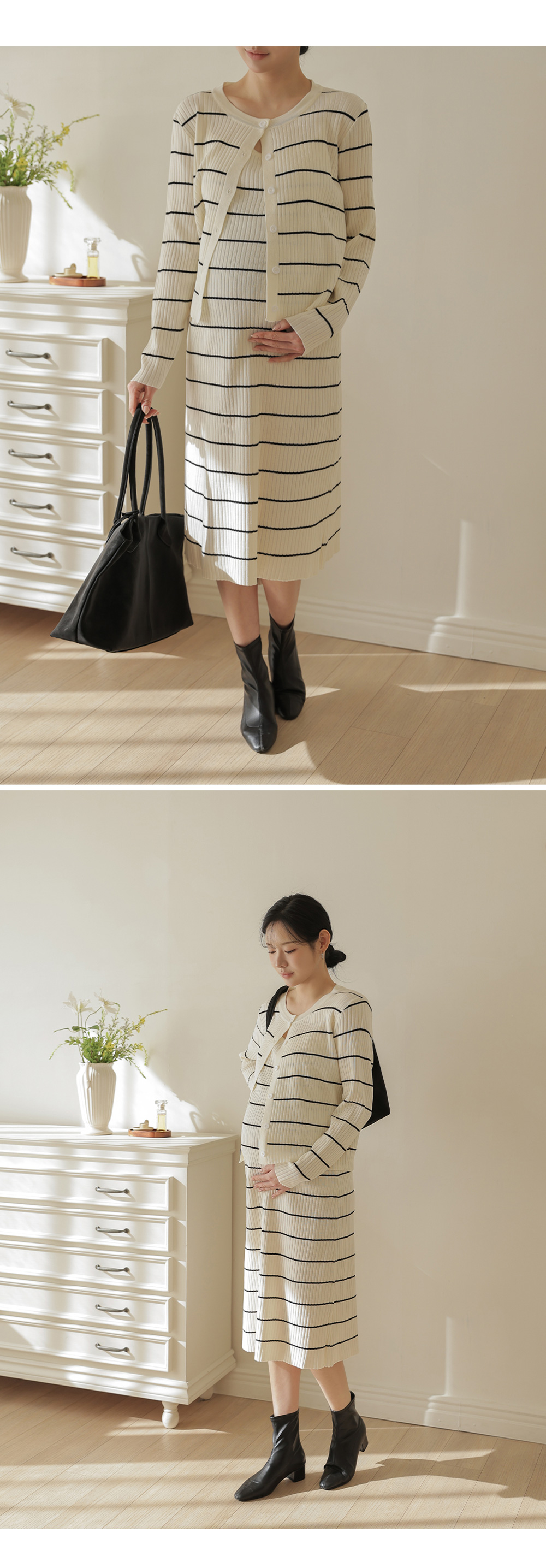 Product information만삭에도 착용가능한 임산부 원피스입니다.캐주얼한 스트라이프 패턴의 클래식한 디자인입니다. 군살을 커버해주는 롱 기장입니다. 우수한 신축성으로 만삭에도 불편함 없습니다. 부드러운 비스코스 소재로 편안한 착용감입니다. |