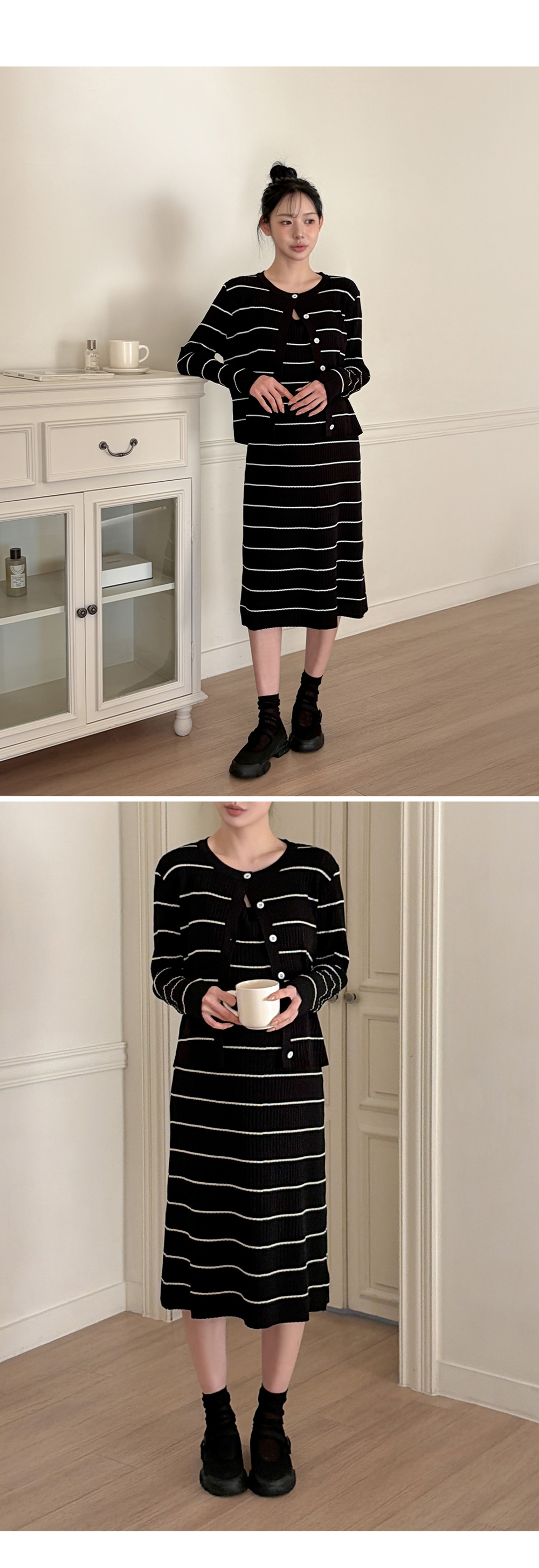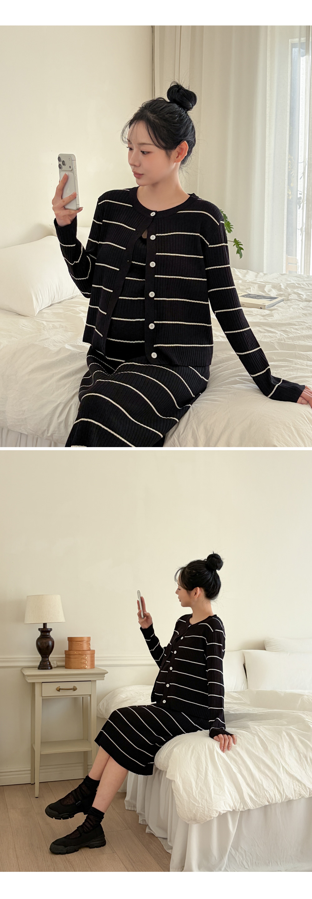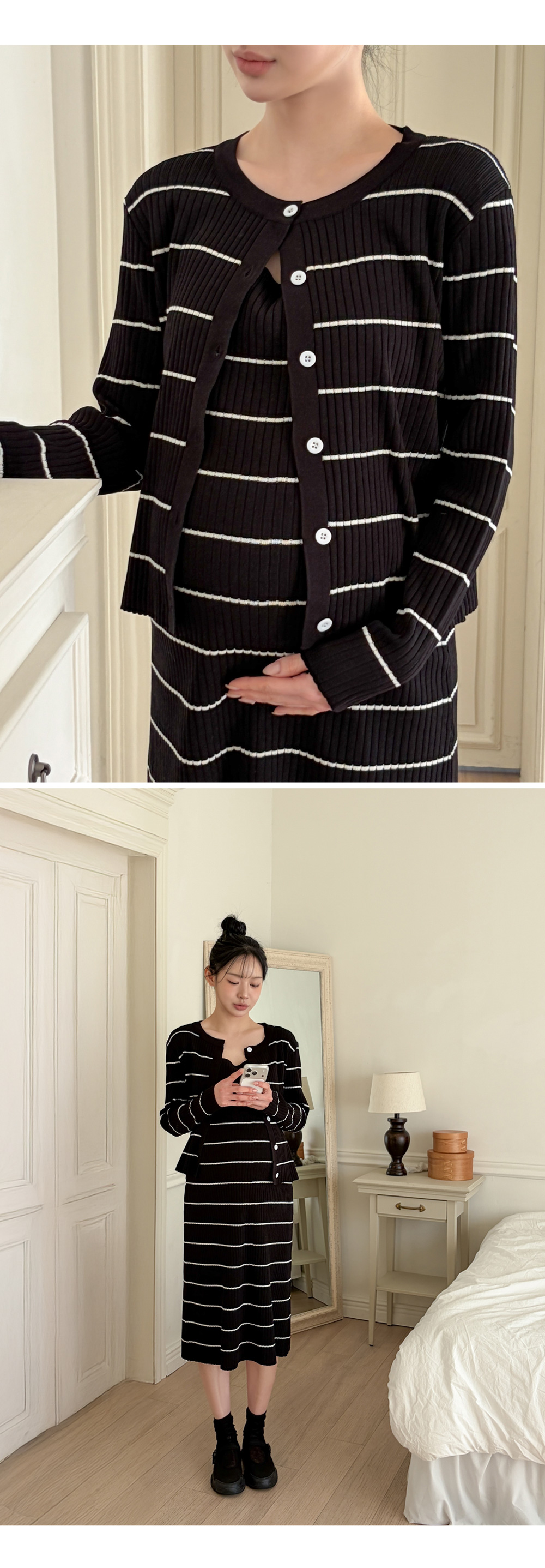 Product information만삭에도 착용가능한 임산부 원피스입니다.캐주얼한 스트라이프 패턴의 클래식한 디자인입니다. 군살을 커버해주는 롱 기장입니다. 우수한 신축성으로 만삭에도 불편함 없습니다. 부드러운 비스코스 소재로 편안한 착용감입니다. |