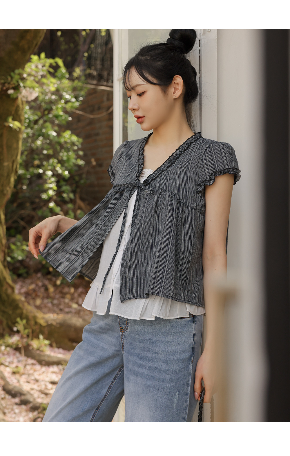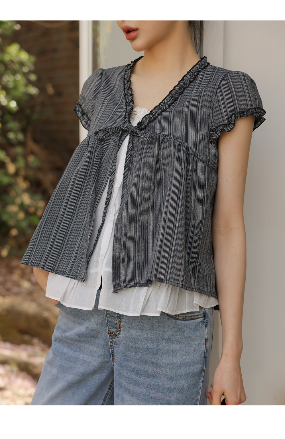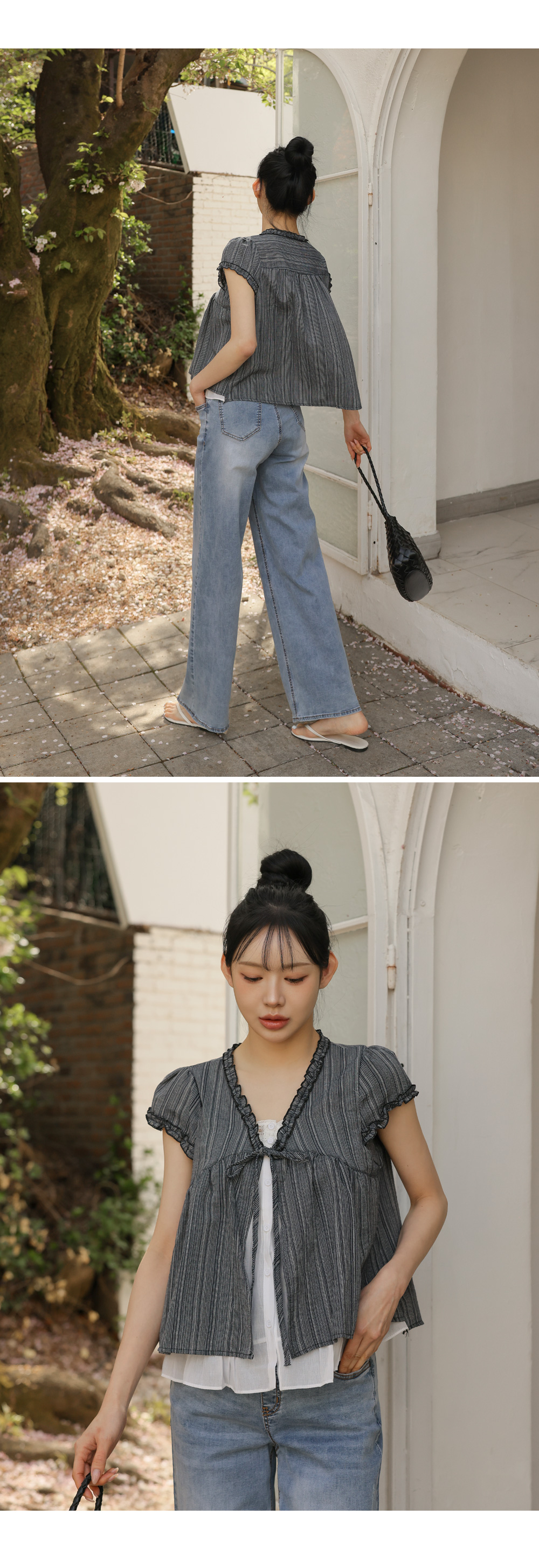 With a stylish double-layered design Loose fit blouse that beautifully covers the D-line 5% off new arrivals until the 3rd