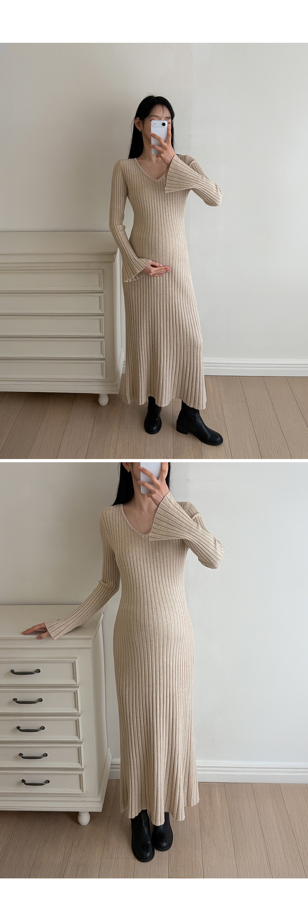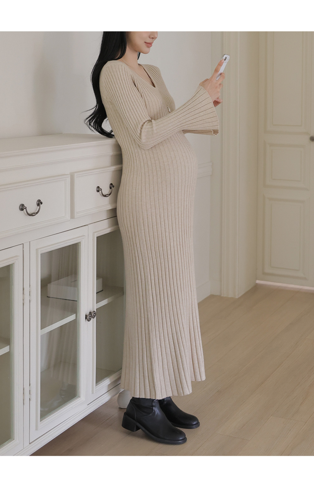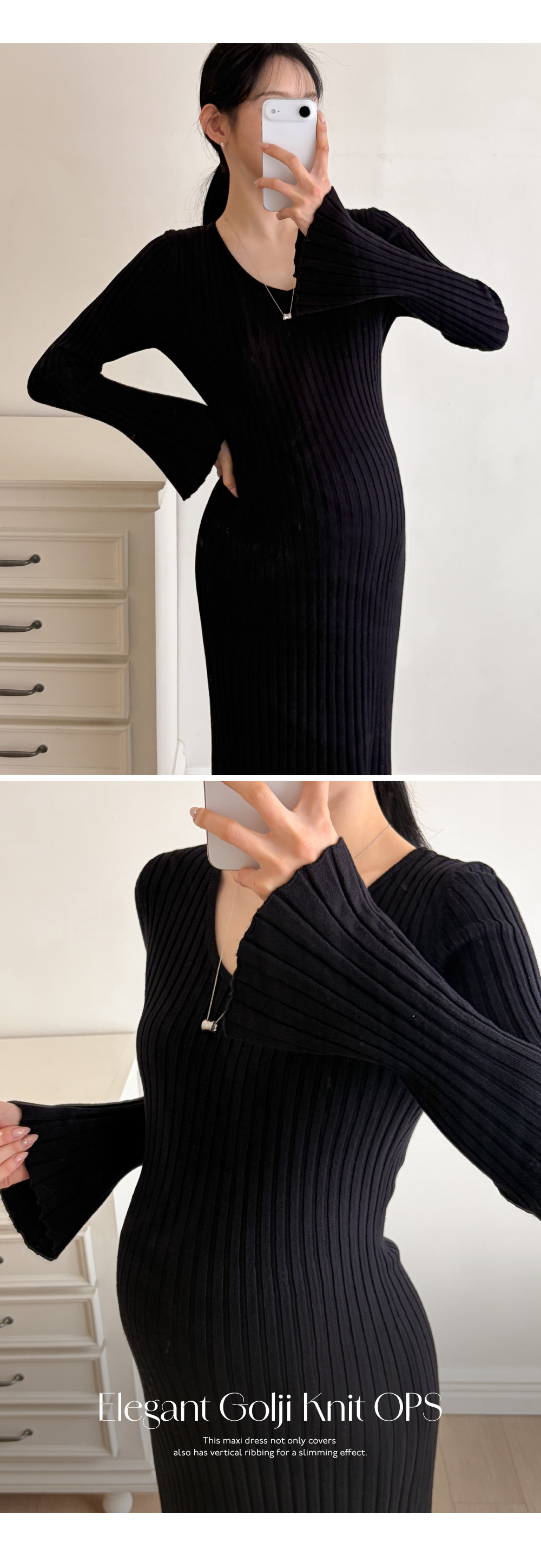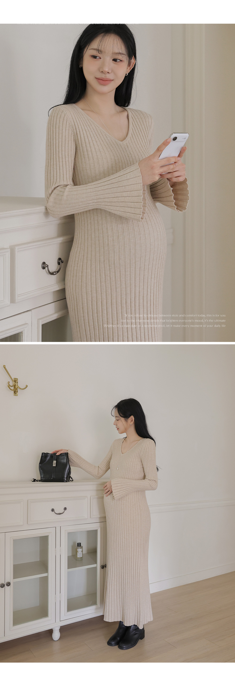 Product information복부 압박이 적어 편안한 임산부 원피스입니다.세로 골지 패턴으로 체형 보정 효과가 있습니다. 목선이 답답해보이지 않는 브이넥 디자인입니다. 맥시 기장으로 노출 부담이 적습니다. 신축성 좋은 니트 소재로 임신기간 내내 착용가능합니다. |