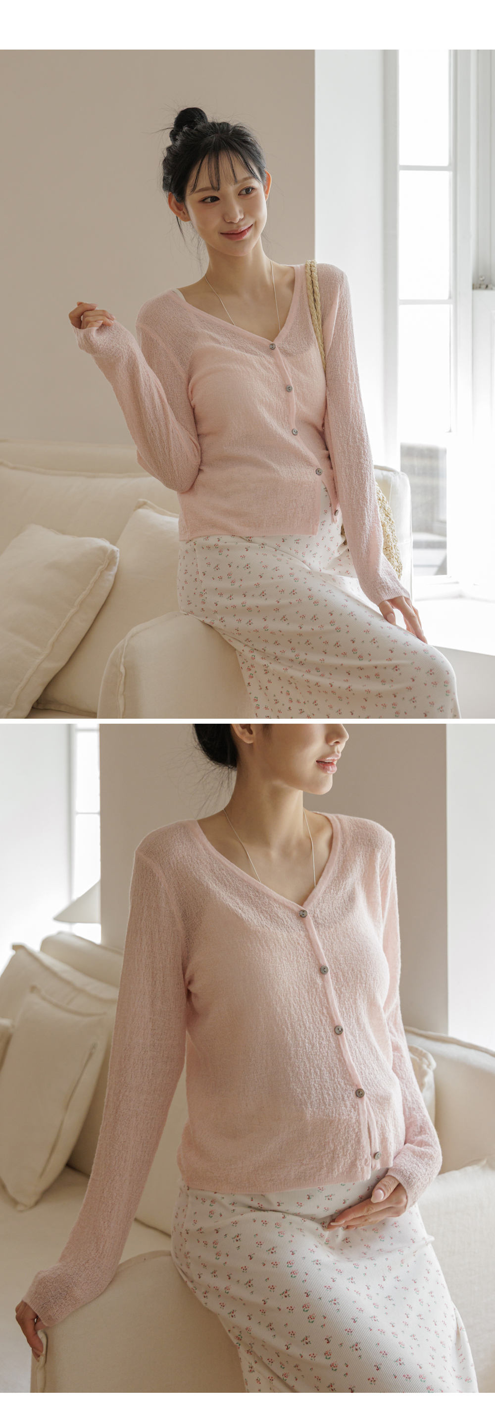 -여리하게 연출되는 브이넥 디자인