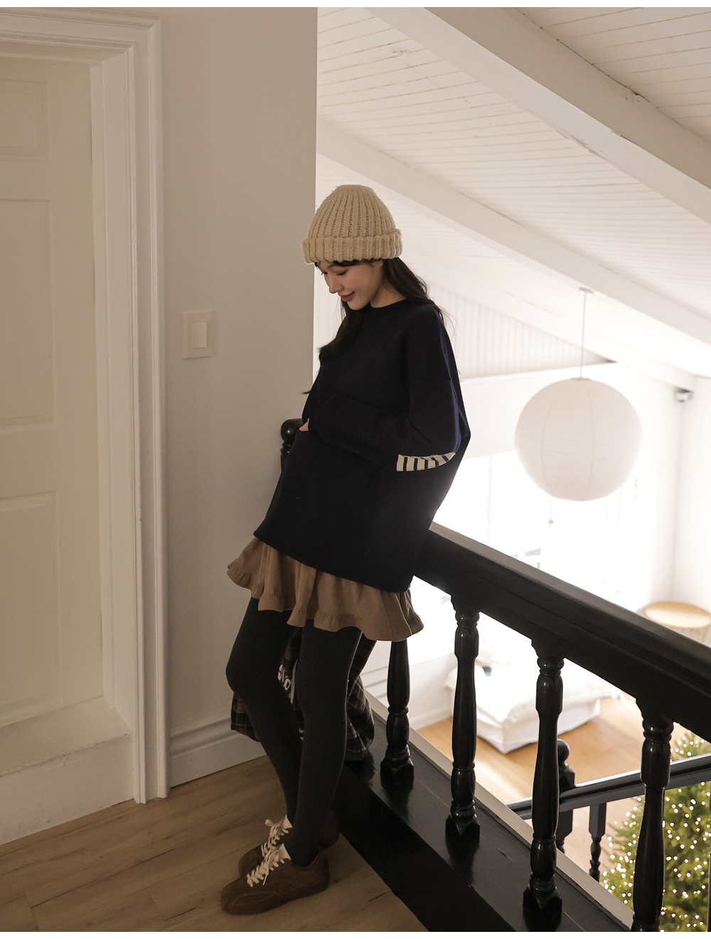 - [Limited-time discount] Maternity*Wave Flower Half-Length Knit