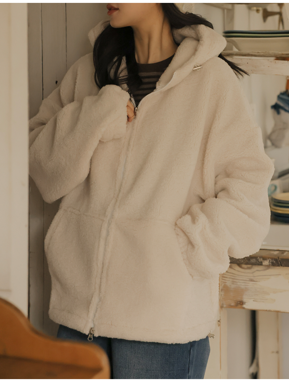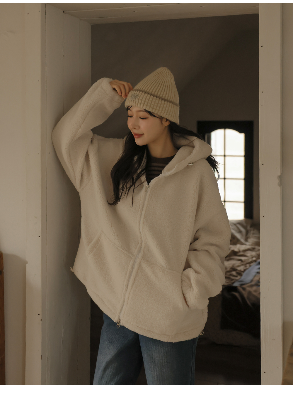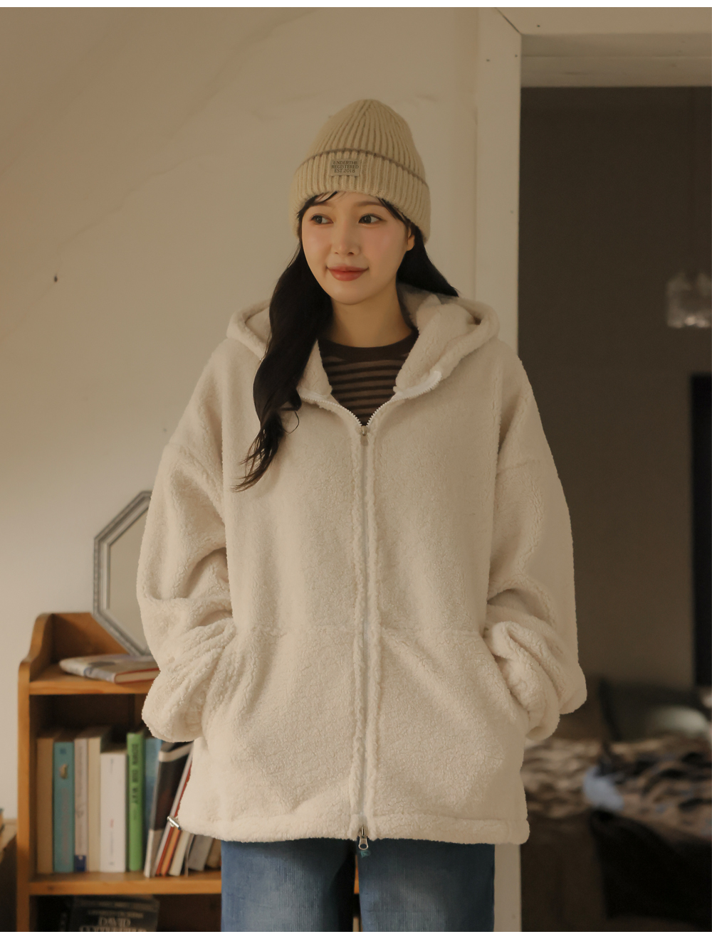 - Maternity*Fluffy fleece two-way hoodies zip up