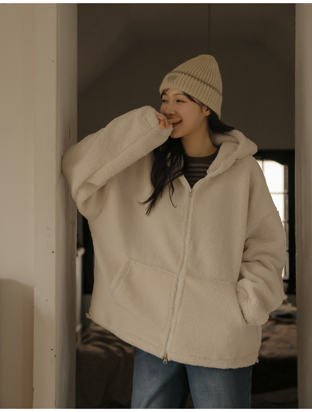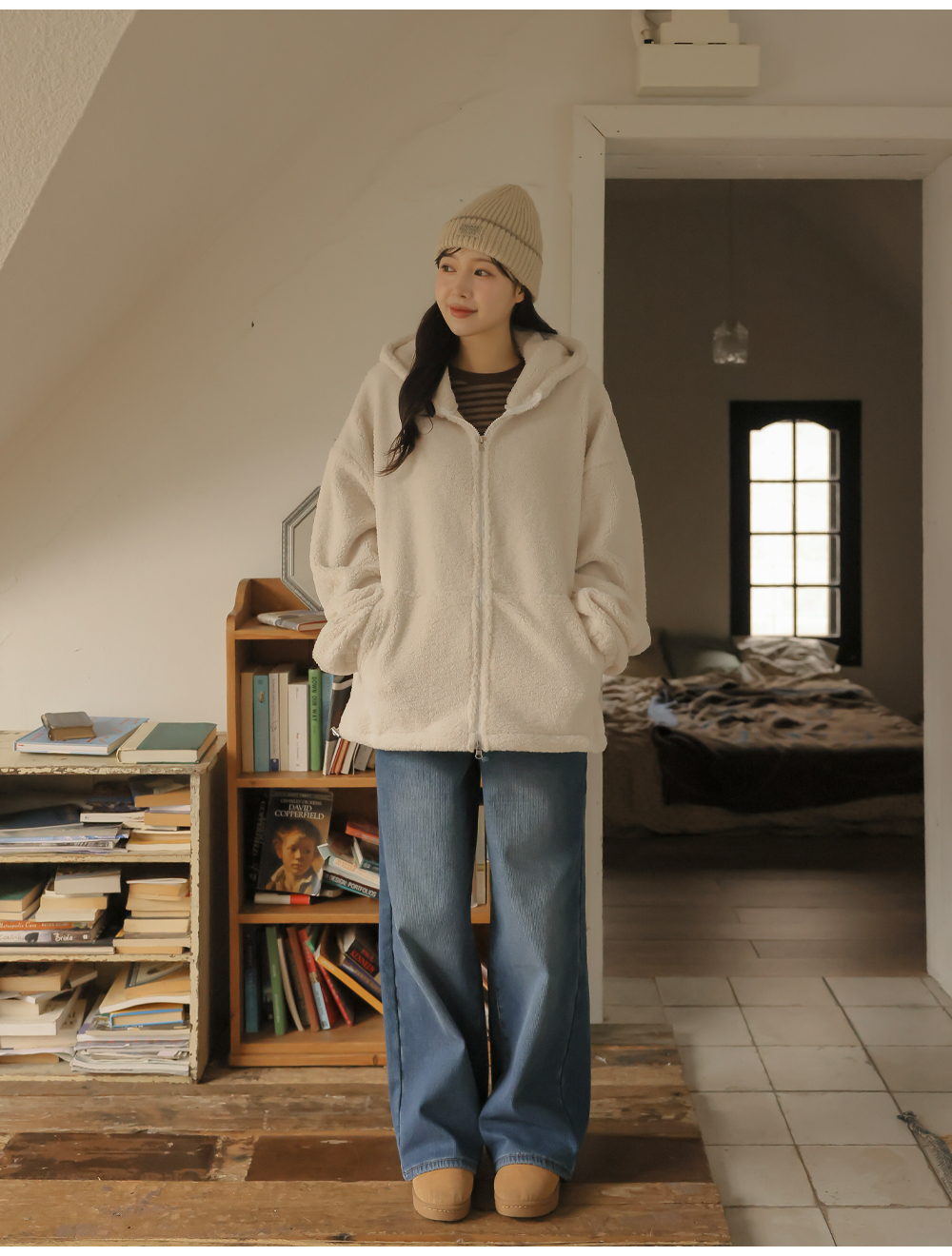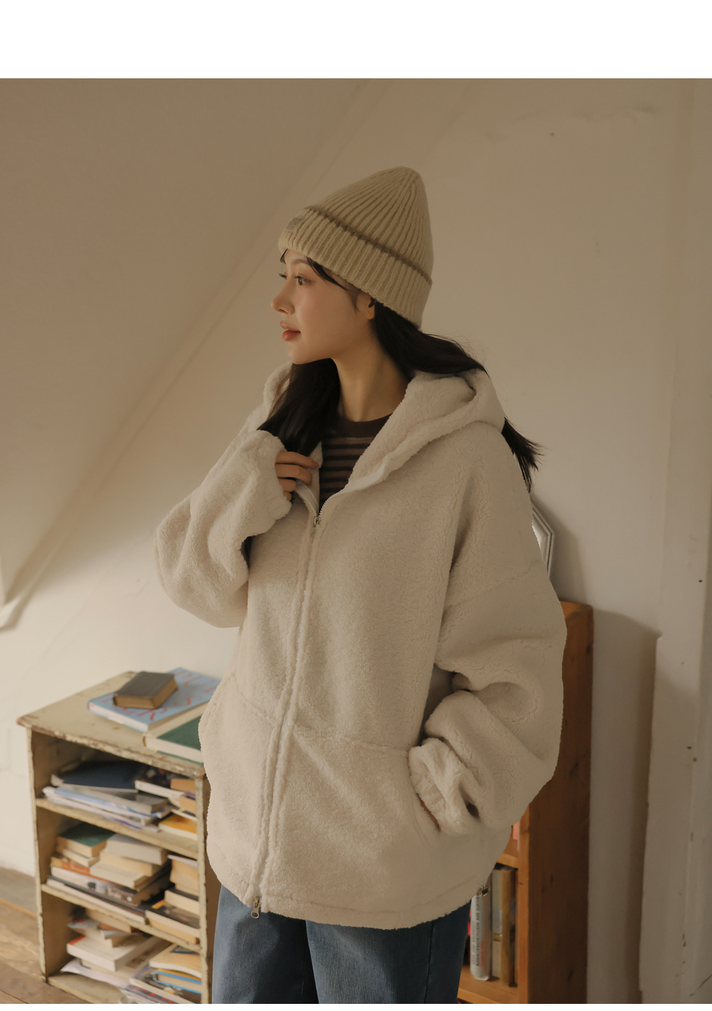 - Maternity*Fluffy fleece two-way hoodies zip up