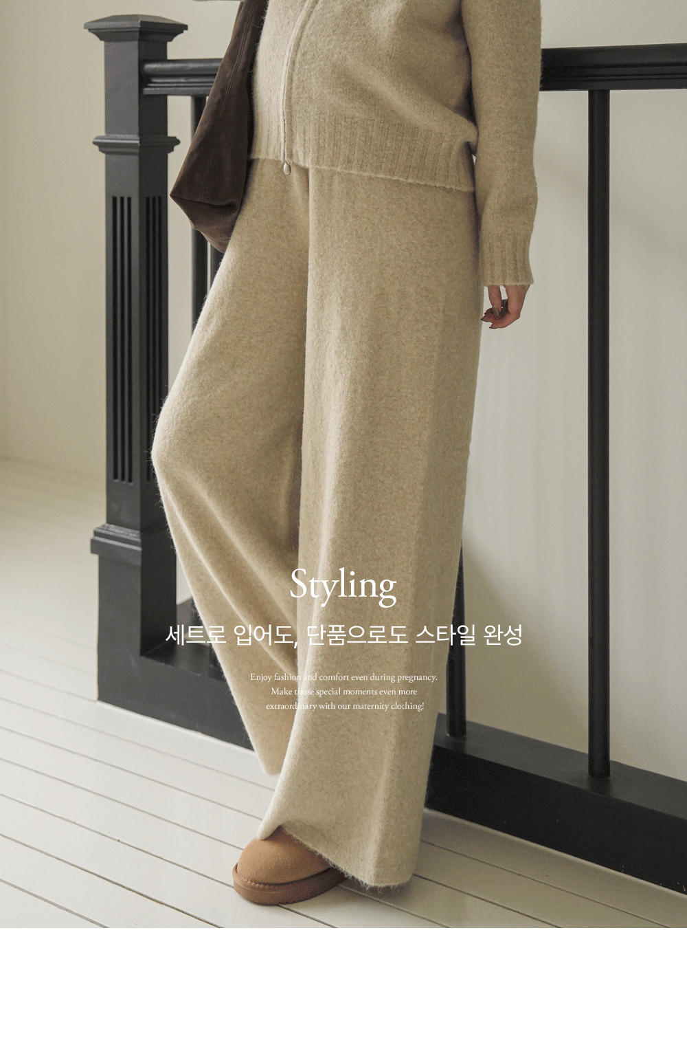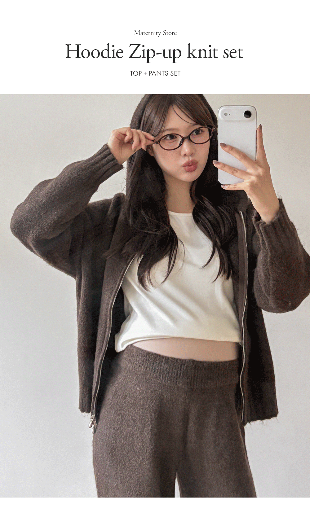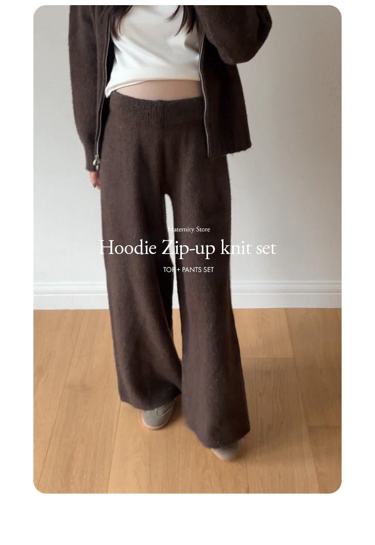 Maternity*Hooded Zip-up Knit Top and Bottom Set (for Postpartum Use)