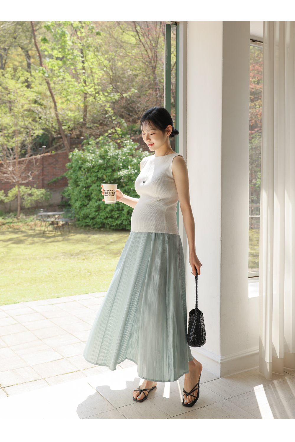 - [Pleated Material/Flowy/Versatile] [S-made] Maternity*Grace Pleated Maxi Flare Maternity Skirt
