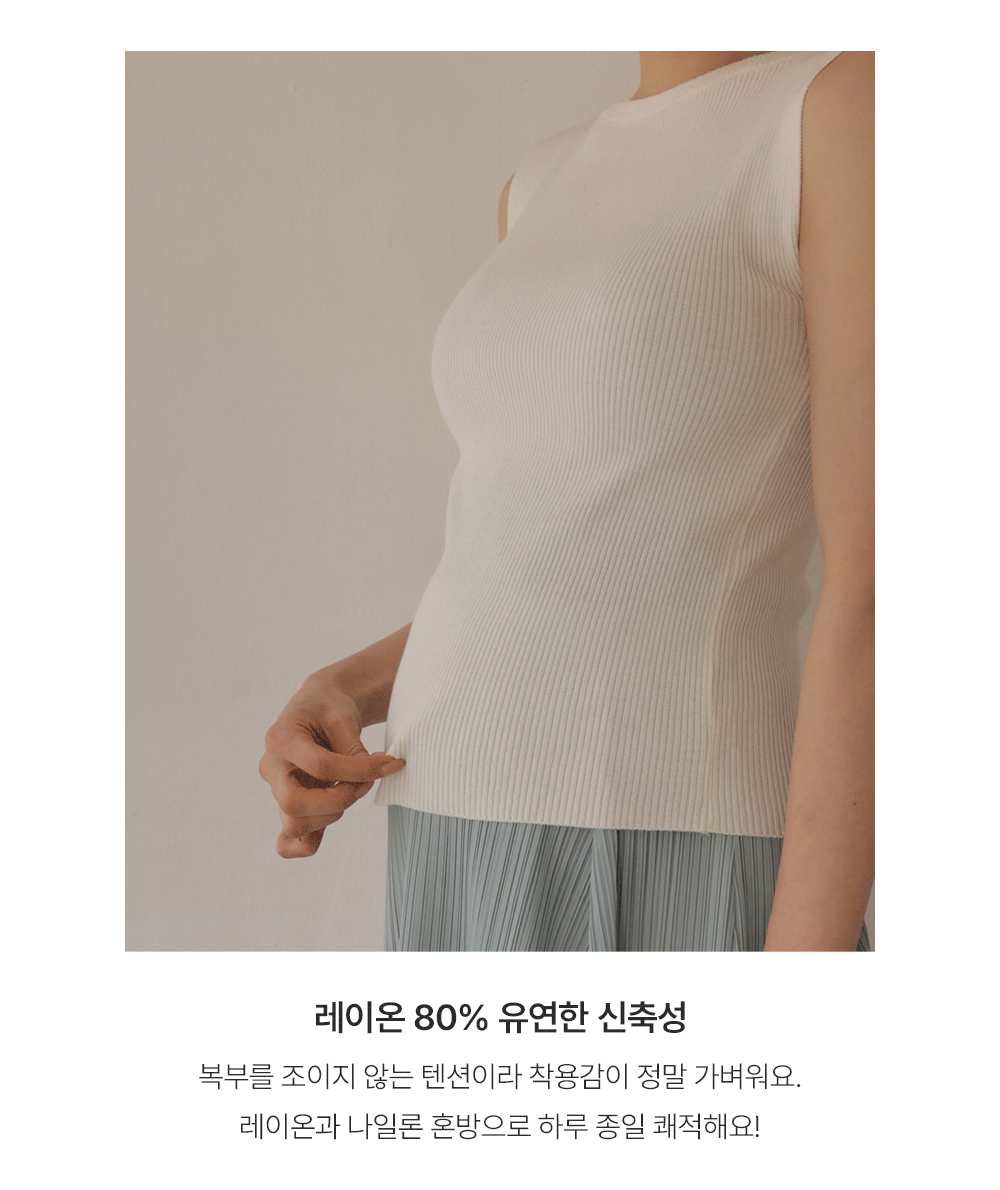Product information암홀이 여유있어 부유방커버에 효과적입니다.출산 전후로 즐기기 좋은 골지나시입니다. 편안하게 늘어나는 신축성 좋은 소재입니다. |