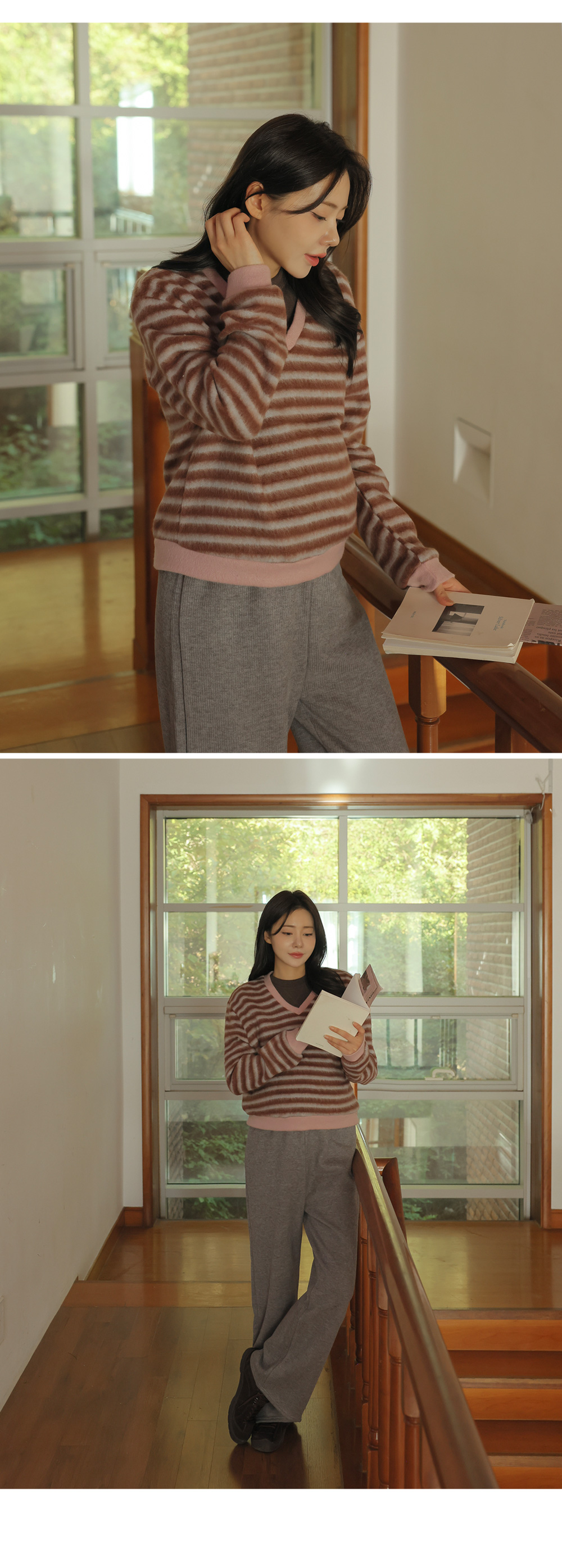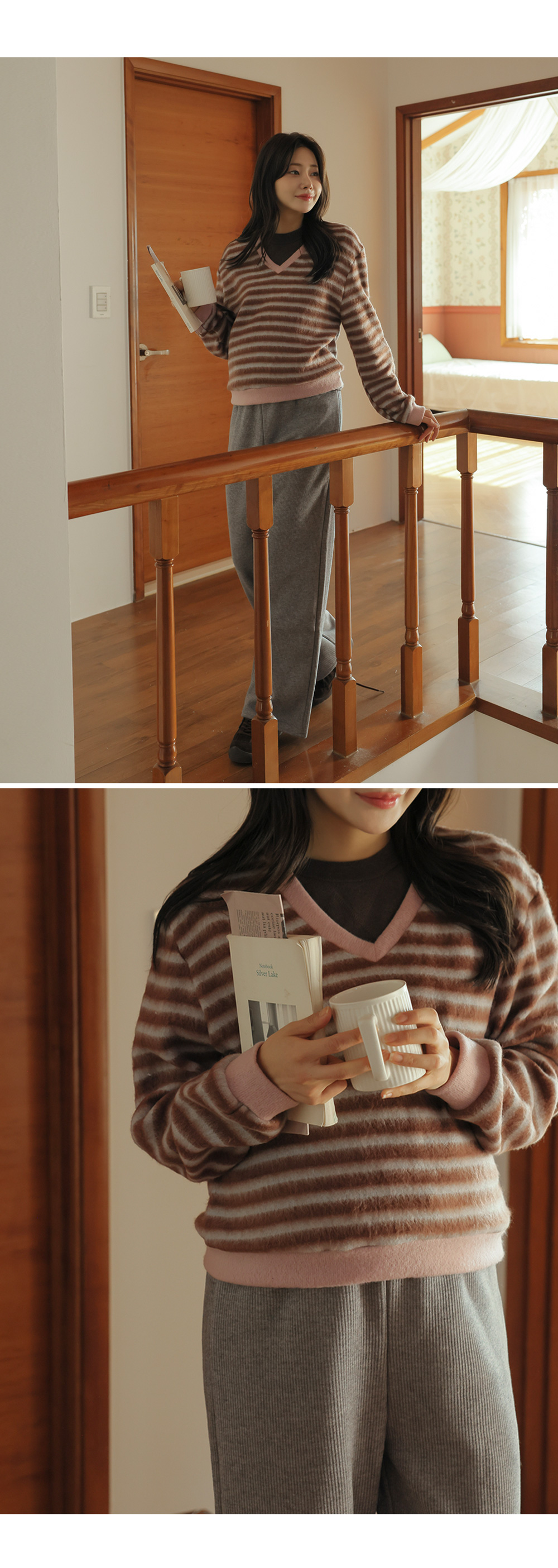 - Maternity*Soft Stripe V-Neck Man-to-Man