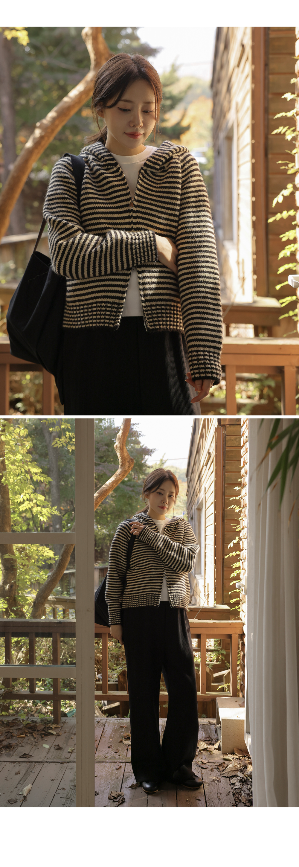 - Maternity*Kitchen Stripe Hooded Knit Zip-Up