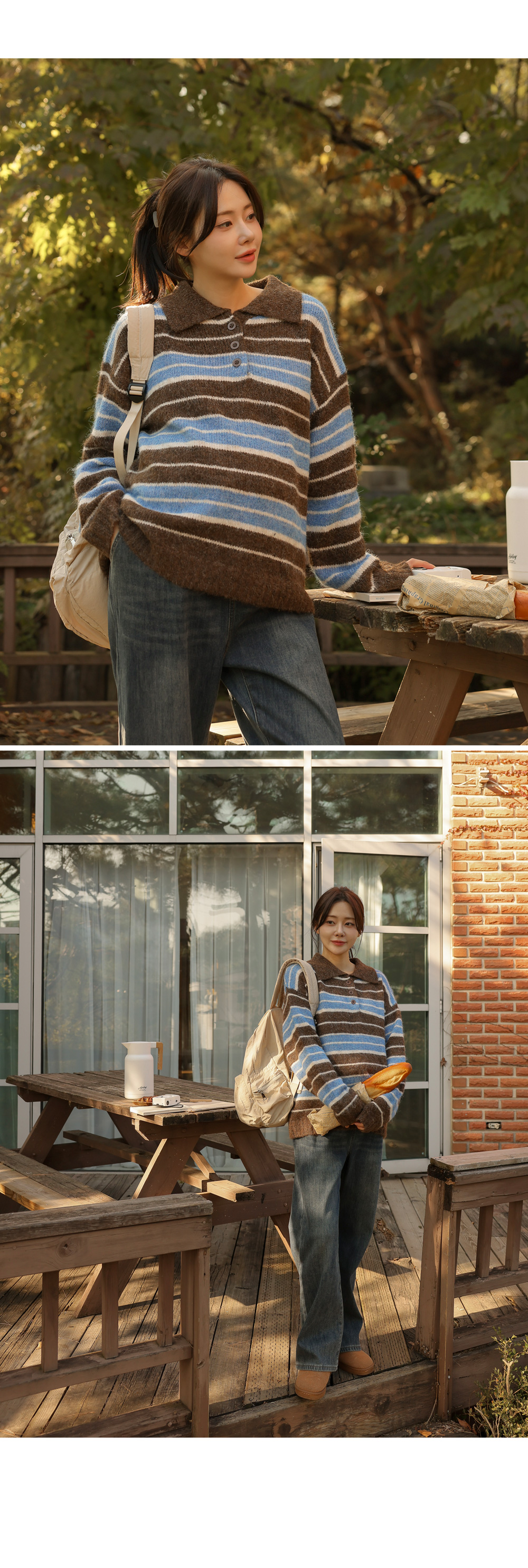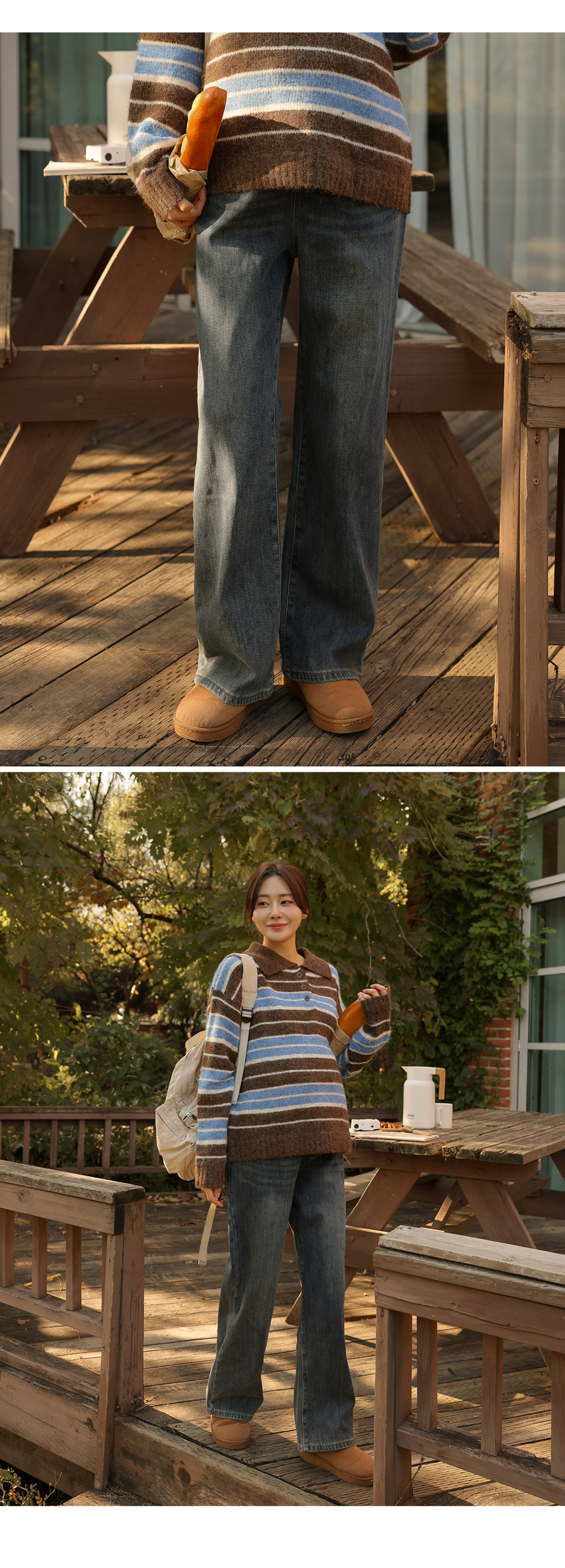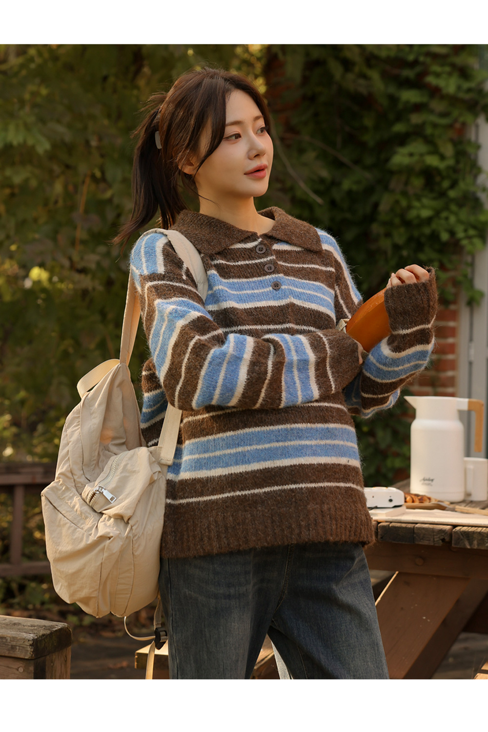 - Maternity*Striped Collar Hair Knit
