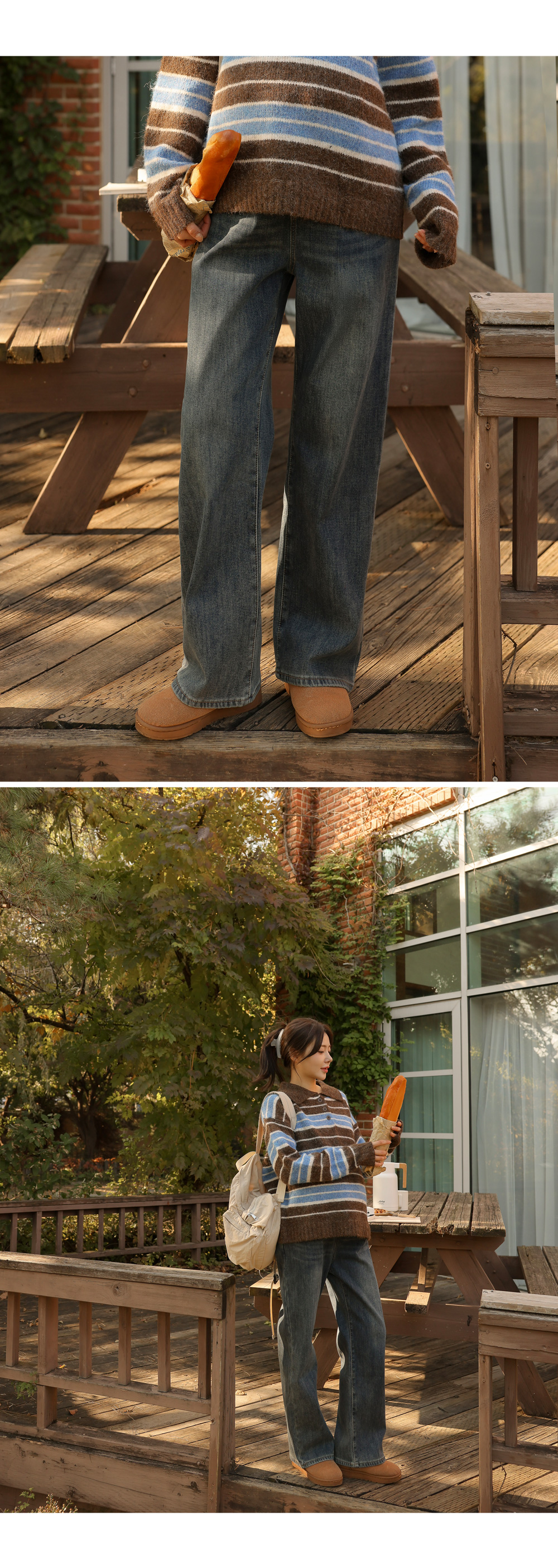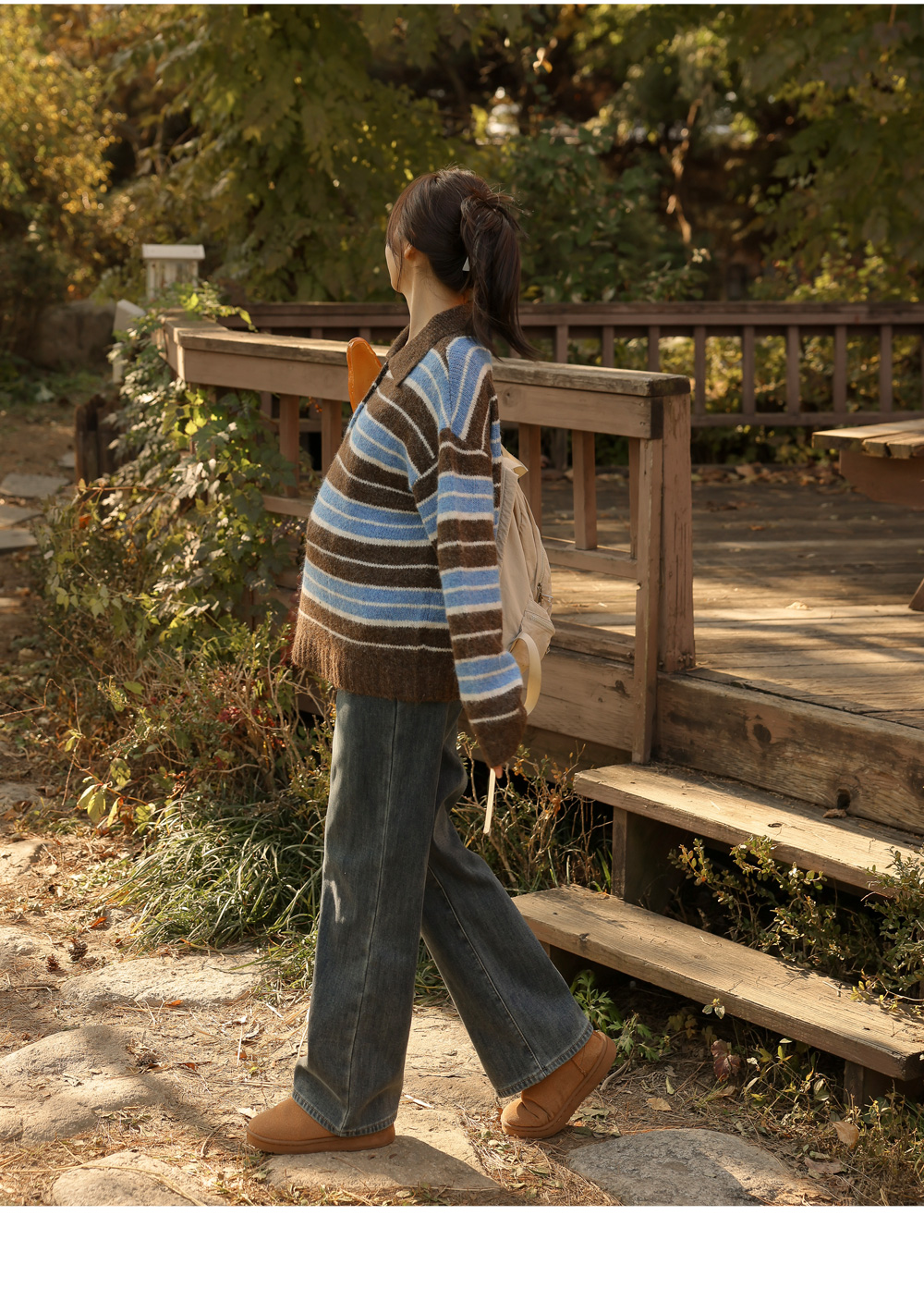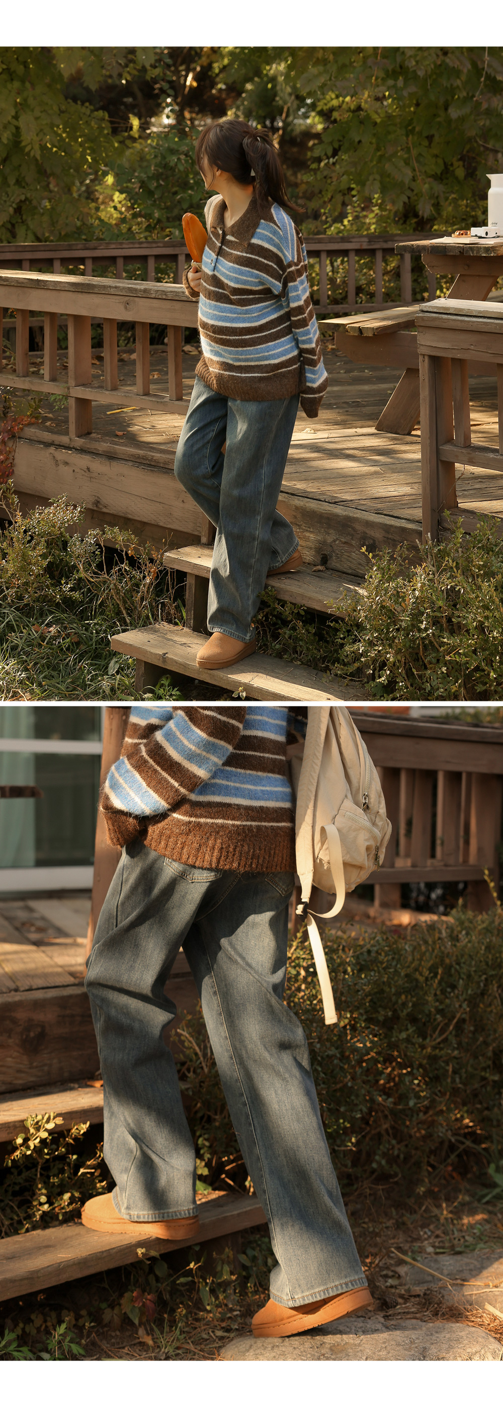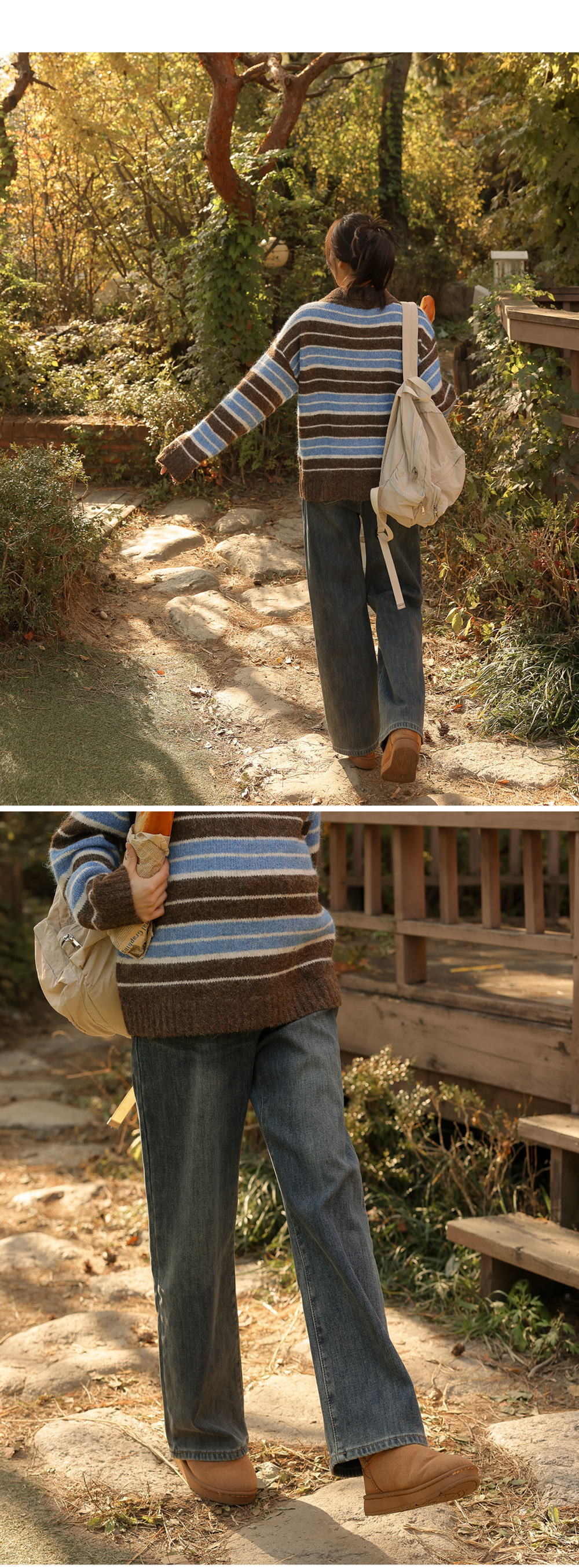 - Maternity*Striped Collar Hair Knit