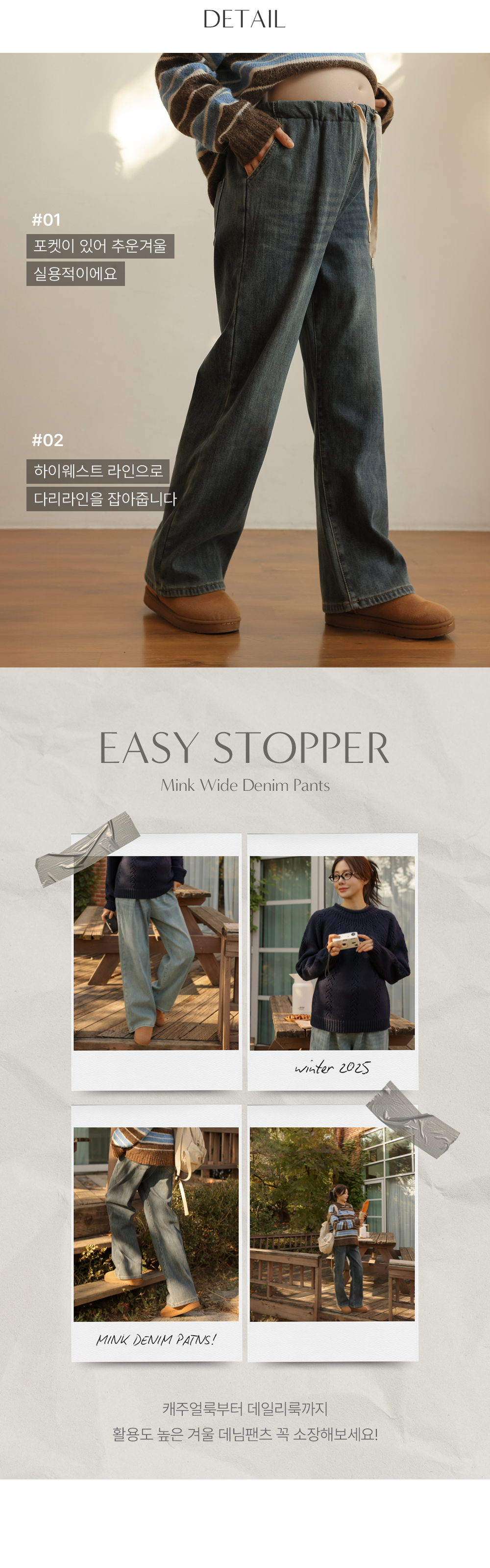 Maternity*Mink Pocket Denim Wide Stopper Maternity Pants