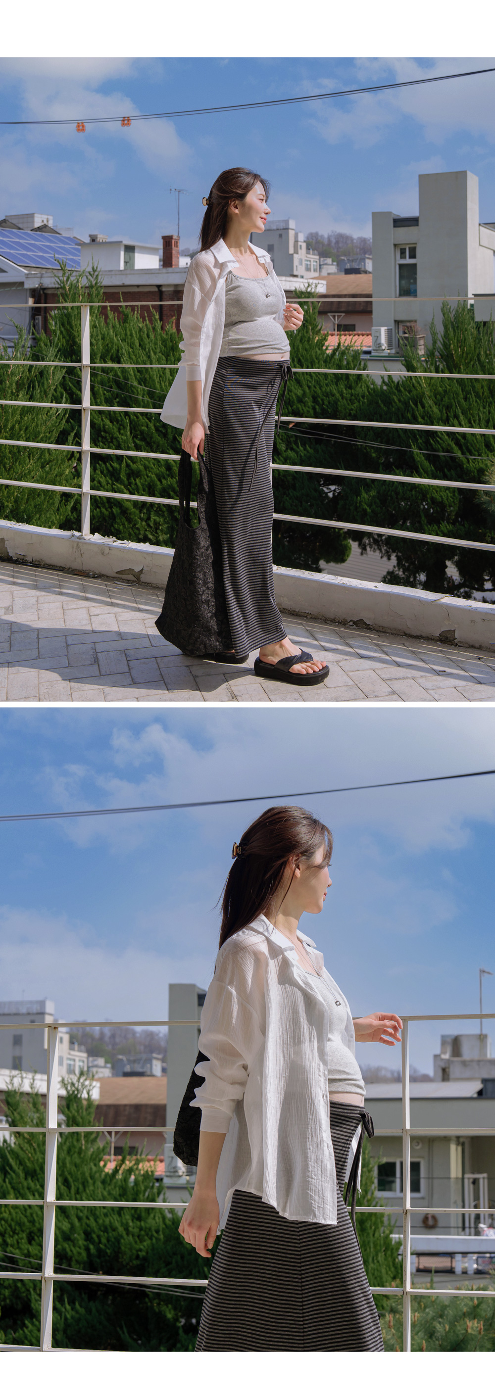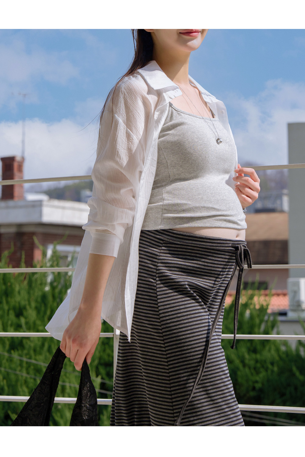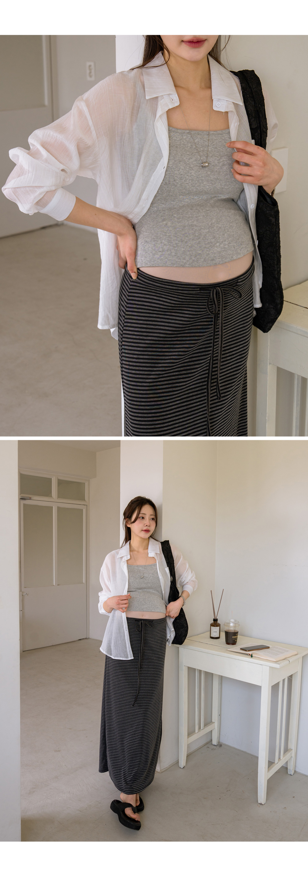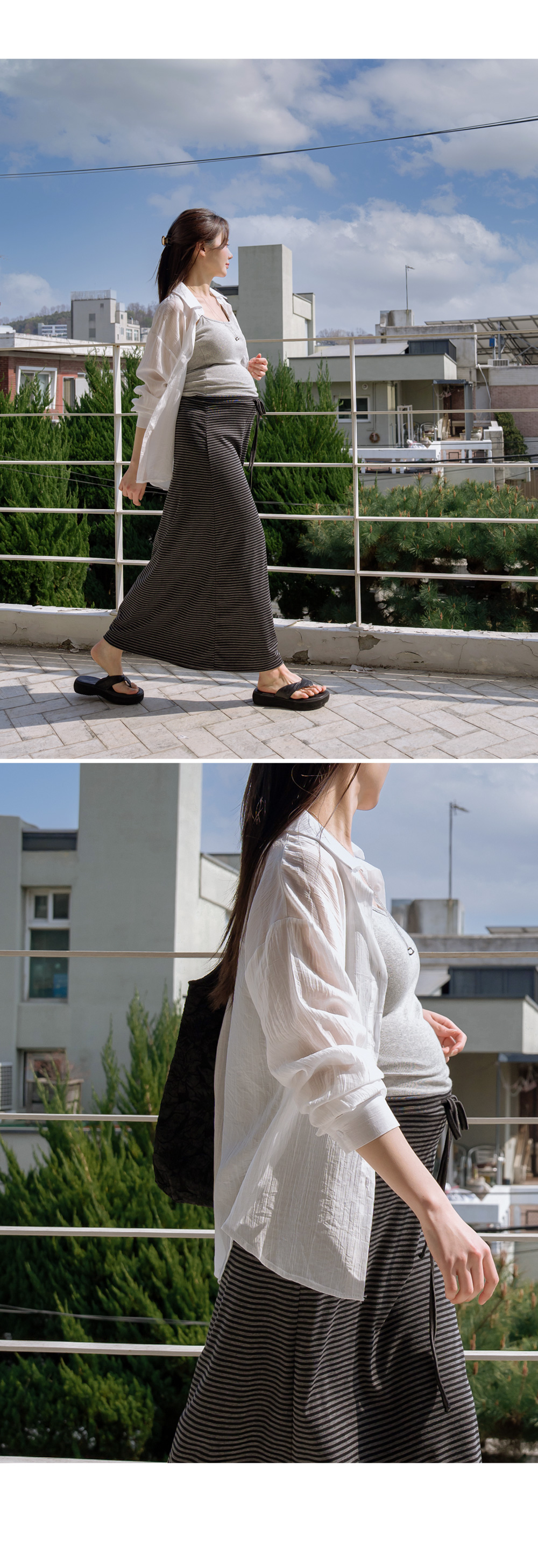 - [Up to Full Maternity/Great Energy] Maternity*Stretchy Striped Rong Skirt