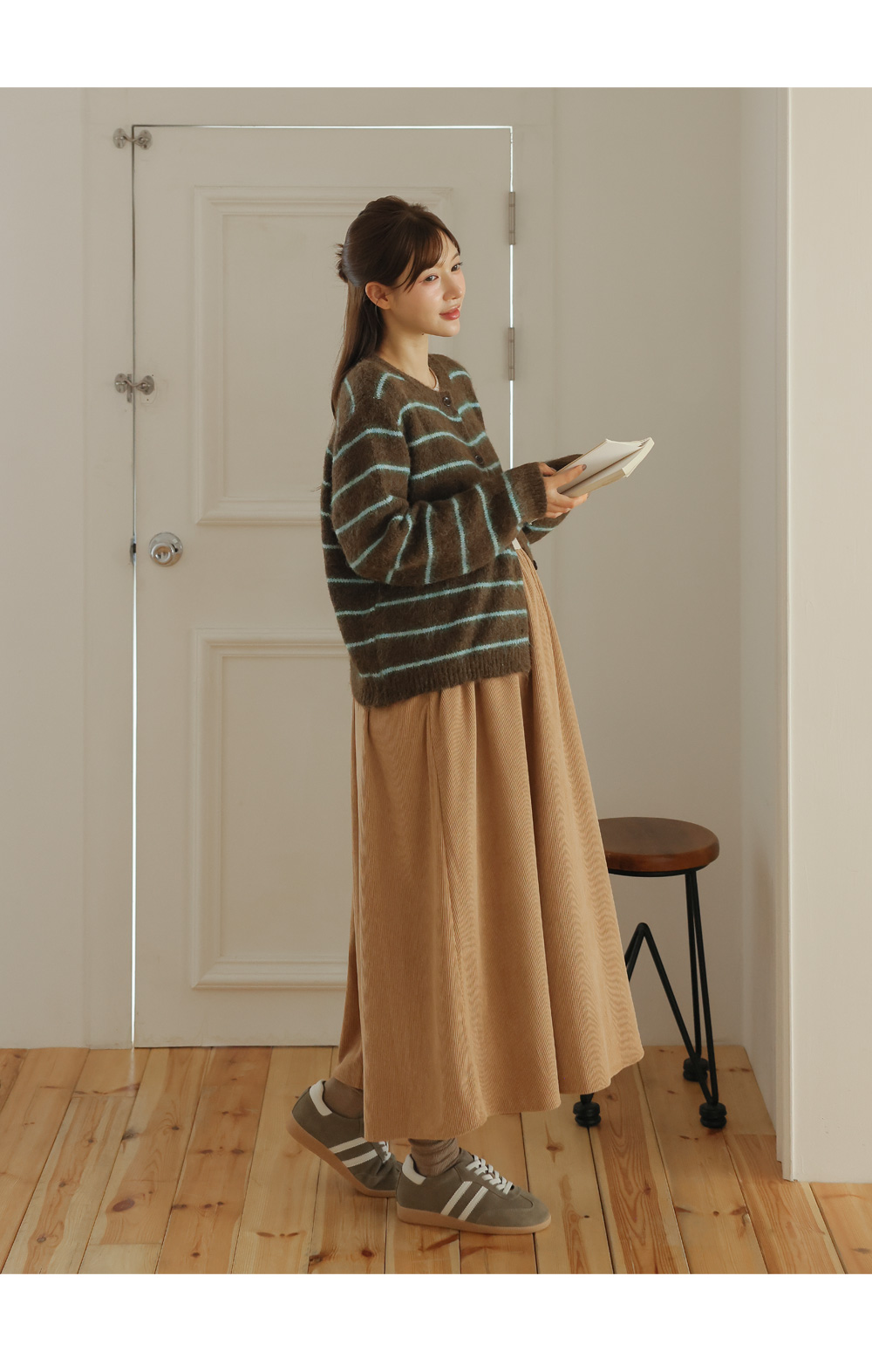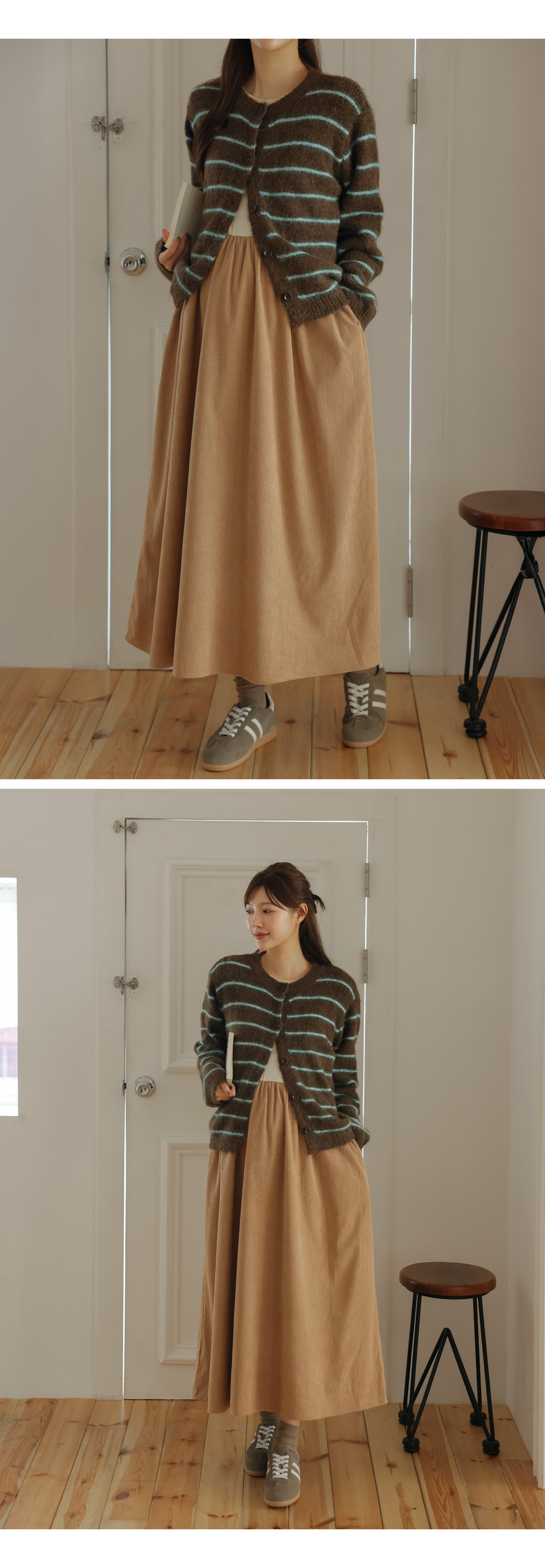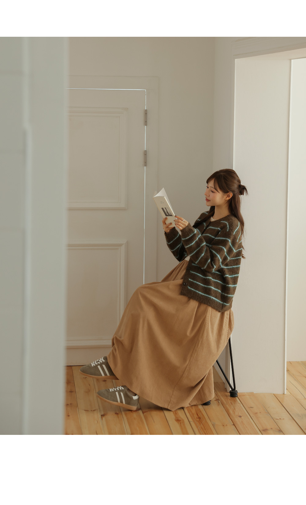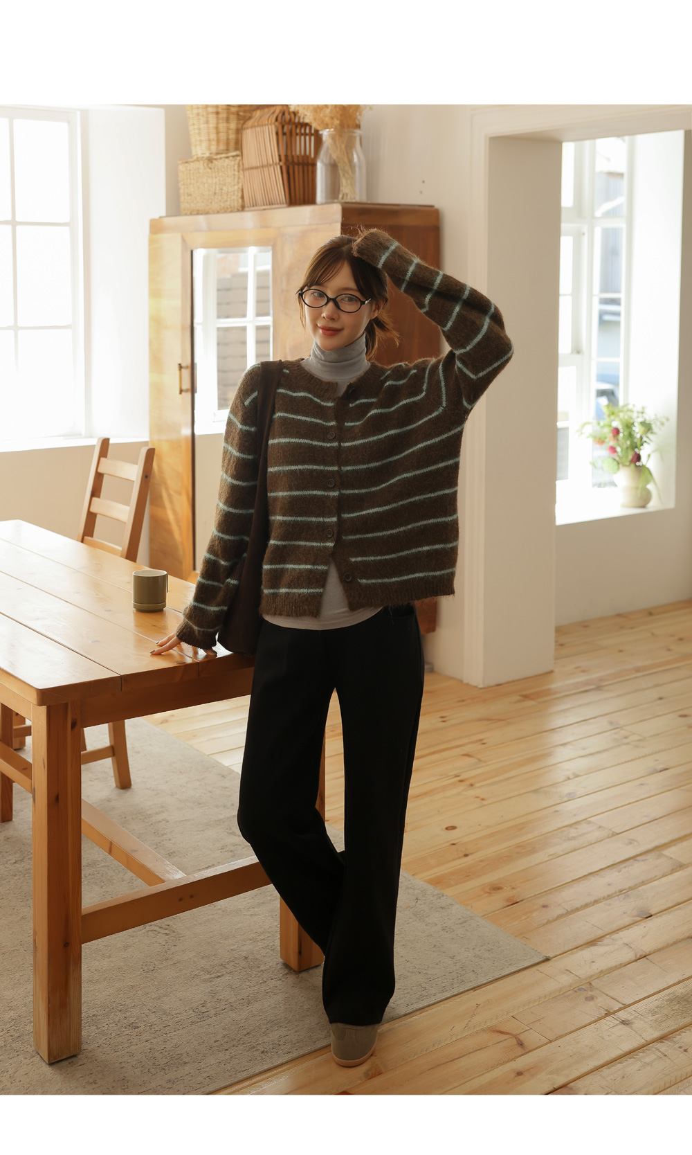 포슬포슬 헤어리한 소재감 또렷한 배색감이 예쁜 가디건 MD's comment - 포슬포슬 올라온 헤어리한 가디건 - 포근하고 유연한 니트 소재 - 또렷한 배색 스트라이프로 포인트 :) - 과하지 않게 여유로운 실루엣 - 데일리하기 좋은 적당한 기장감
