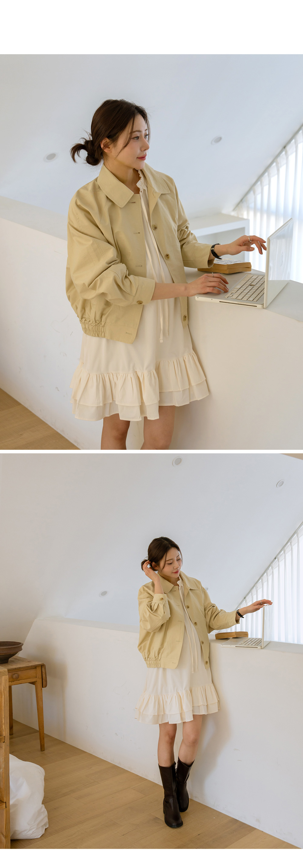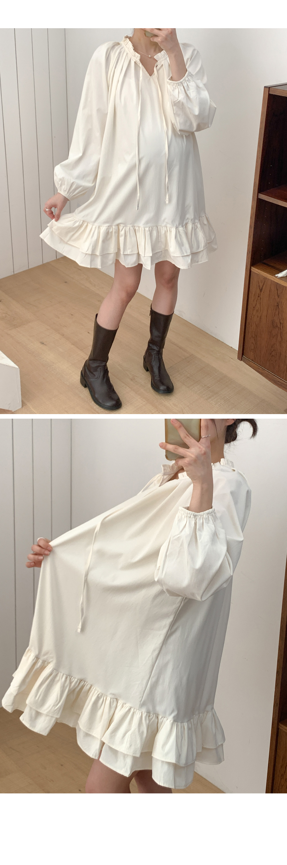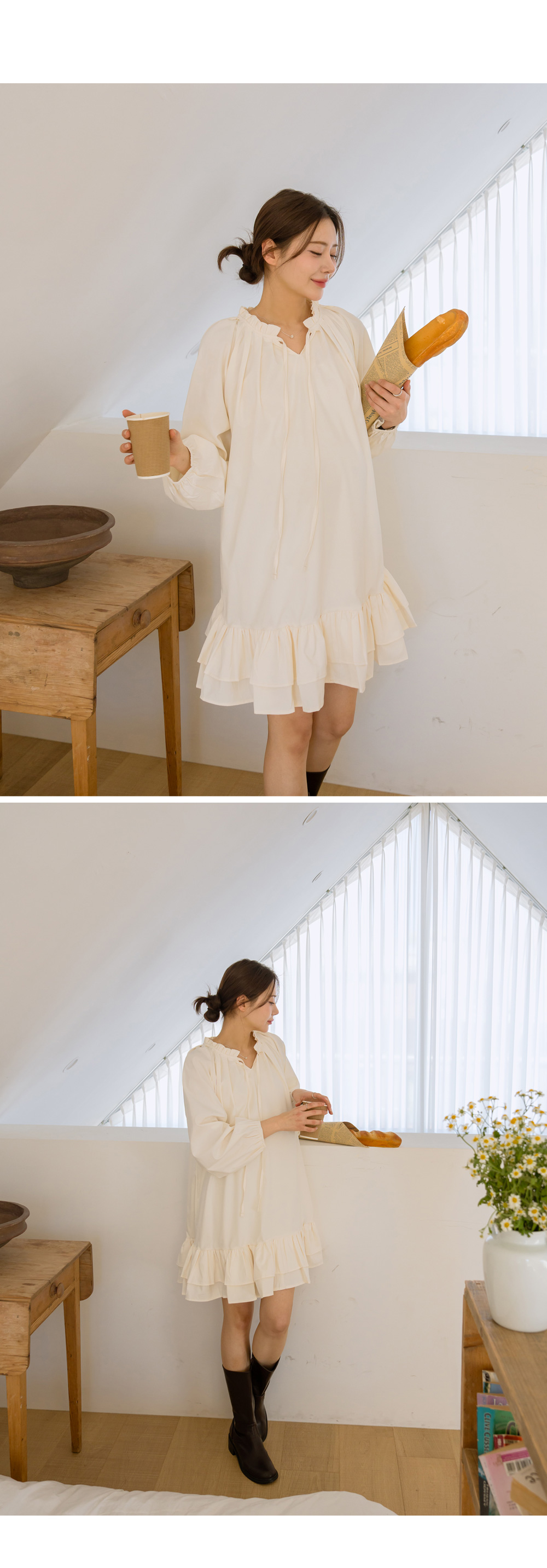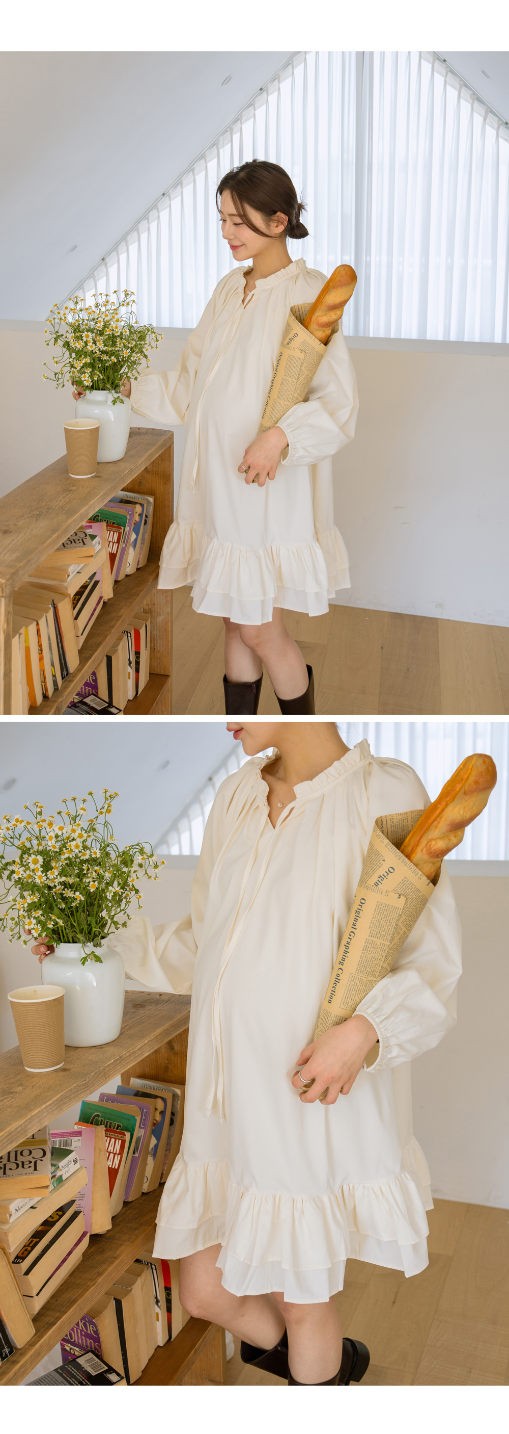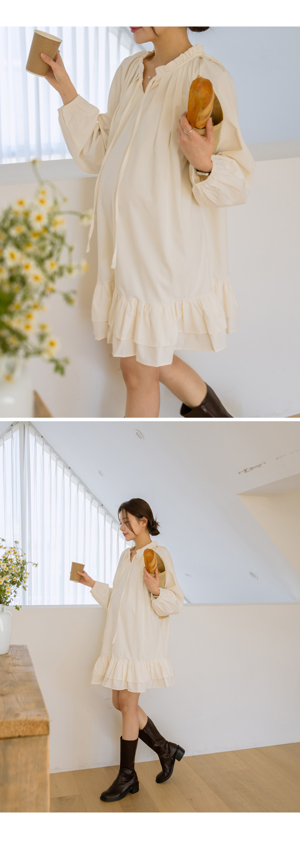 출산 후 까지 즐길 수 있는 이중 프릴 미니 원피스