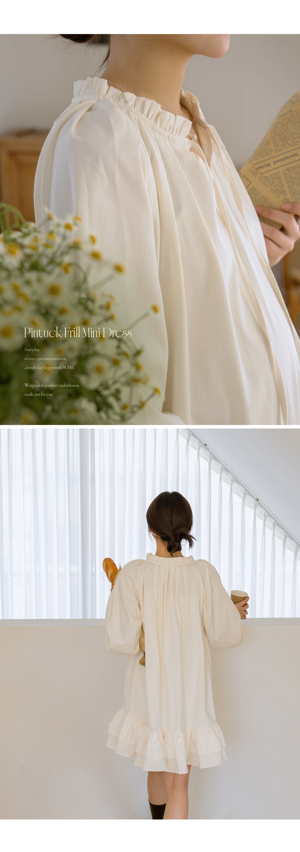 Product information-핀턱 디테일과 이중 프릴 밑단이 돋보이는 임산부 미니원피스입니다.-너무 짧지 않은 기장과 여유 있는 품으로 만삭까지 편안하게 착용 가능하며 체형 커버에 효과적입니다. -뒤 넥라인부터 이어지는 핀턱과 프릴 디테일이 러블리한 무드를 연출해줍니다. -중앙 스트랩으로 다양한 연출이 가능합니다. -가디건, 아우터와 함께 코디하기 좋아 임신 기간부터 출산 후까지 활용도 높은 원피스입니다. |