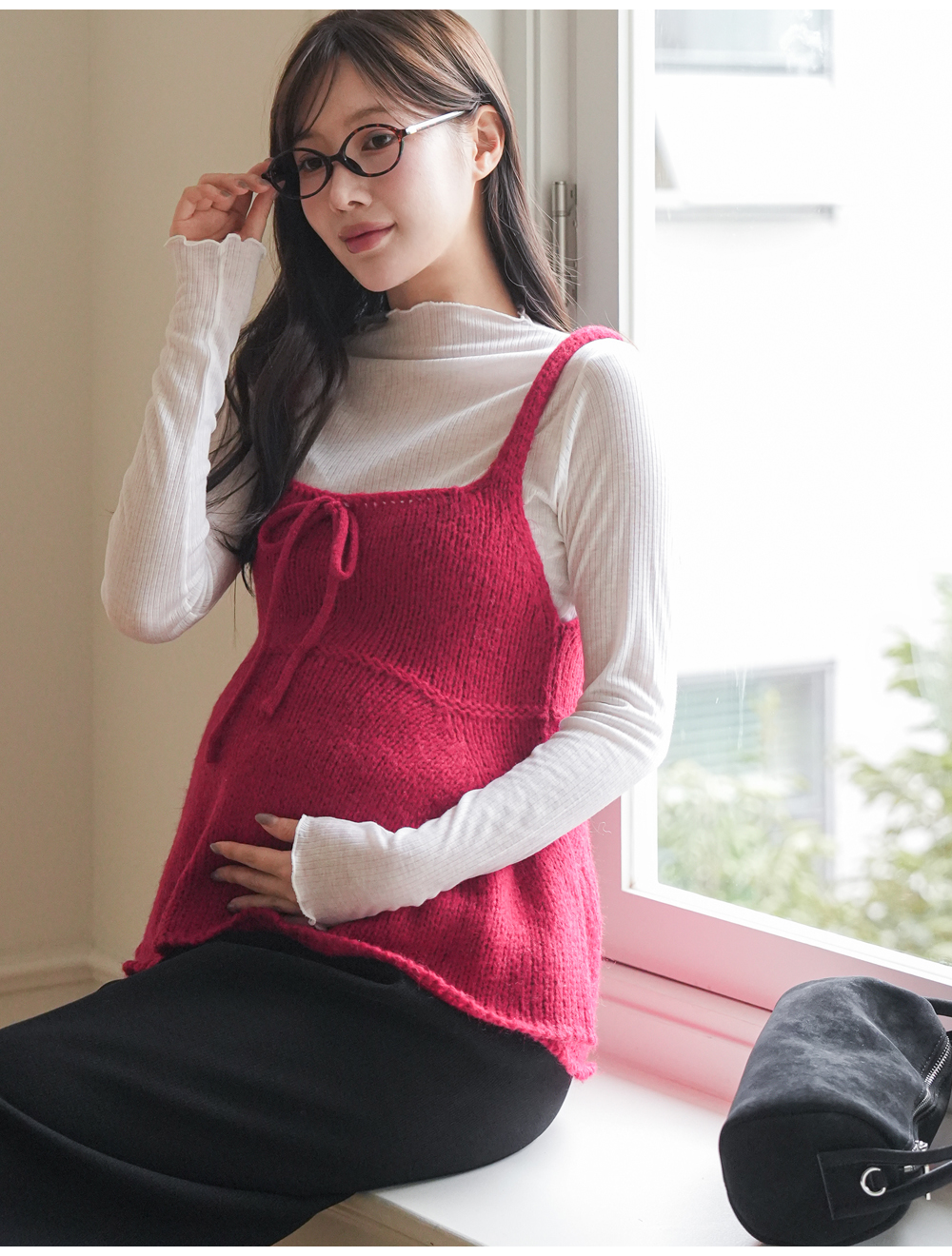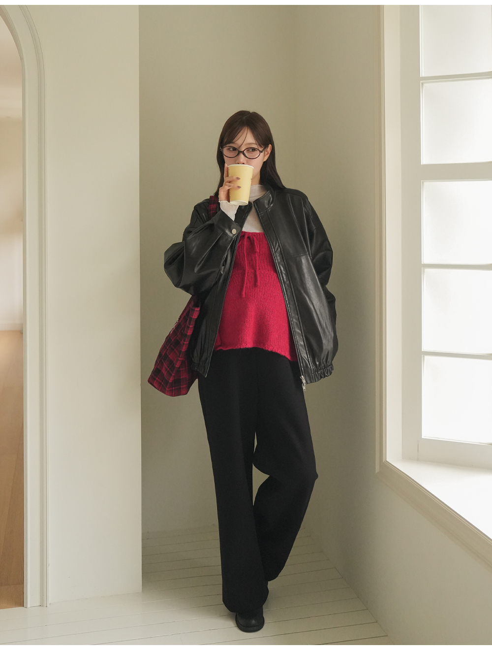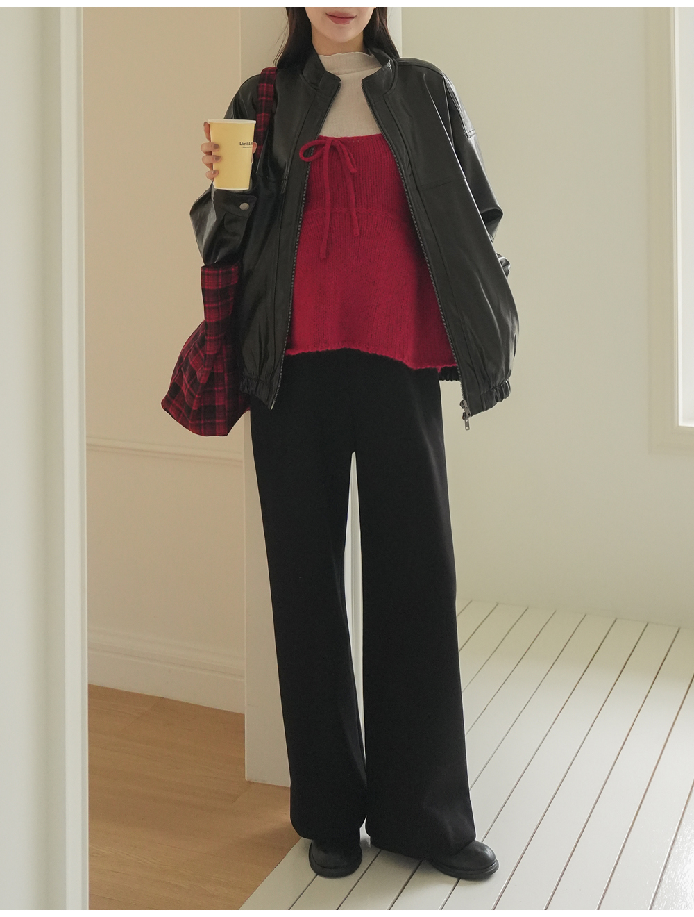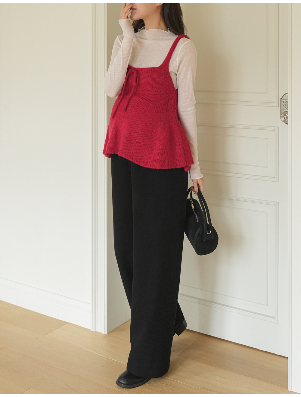 - [Mink lining/adjustable] [S-made] Maternity*Warm knit adjustable wide maternity pants (fleece lining)