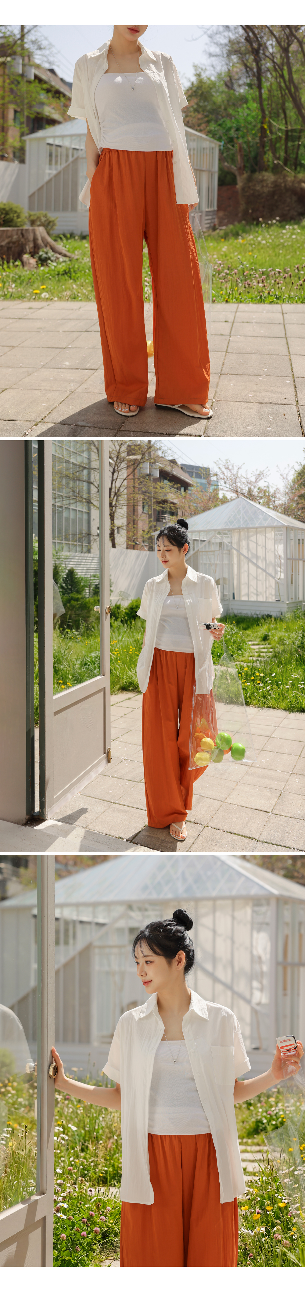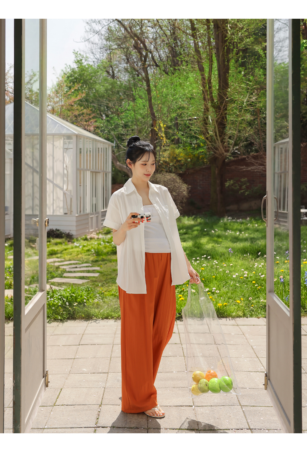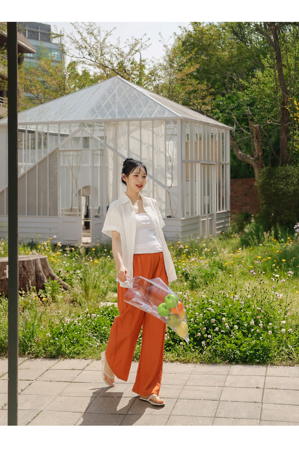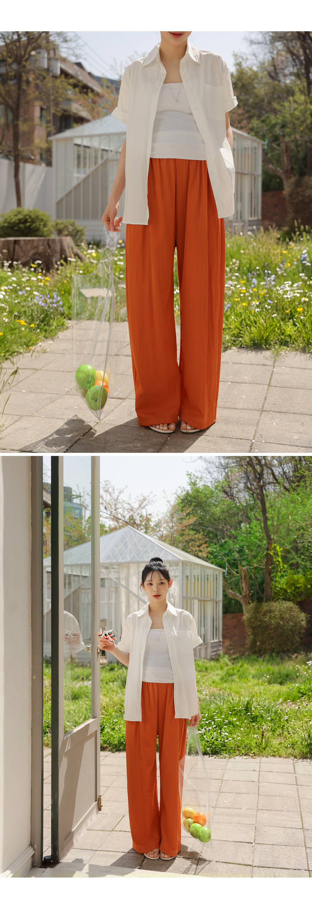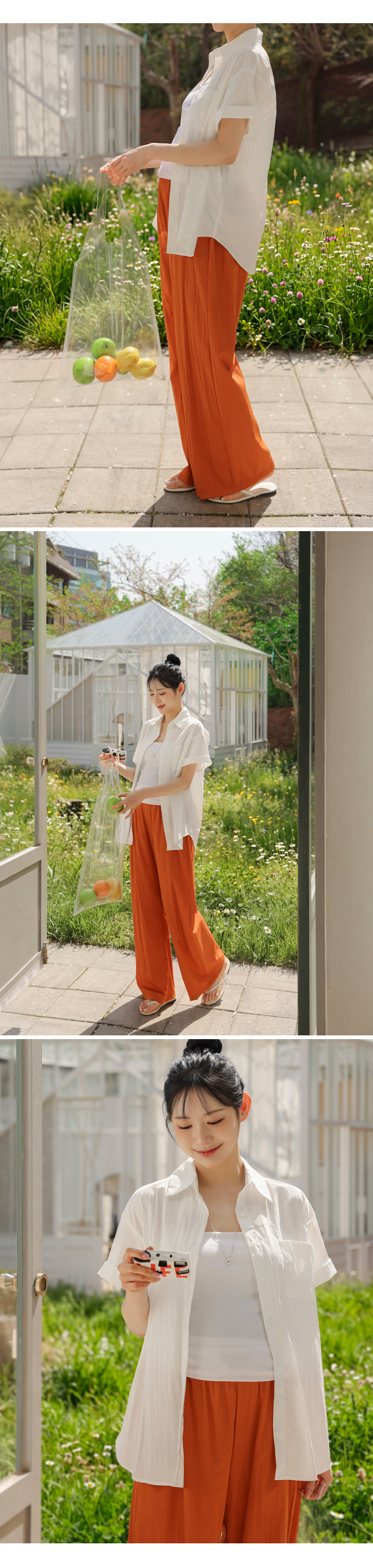 Product information가볍고 시원한 폴리 나일론 혼방 소재를 사용하여 한여름에도 몸에 붙지 않고 쾌적합니다.사이즈 1, 2 두 가지 구성으로 제작되어 임신 초기부터 만삭까지 체형에 맞춰 편안하게 선택 가능합니다. 허리 전체 밴딩 디테일이 복부를 부드럽게 지지해 주어 압박감 없는 편안한 착용감을 선사합니다. 여유롭게 떨어지는 와이드 핏이 다리 라인 군살을 완벽하게 커버하며 롱한 레그라인을 완성합니다. 오렌지, 올리브, 크림, 블랙 4가지 컬러 구성으로 데일리룩부터 포인트룩까지 활용도가 높습니다. 구김이 적고 복원력이 좋은 소재 특성상 세탁 후 관리가 간편하며 매일 입기 좋은 데일리 아이템입니다. |