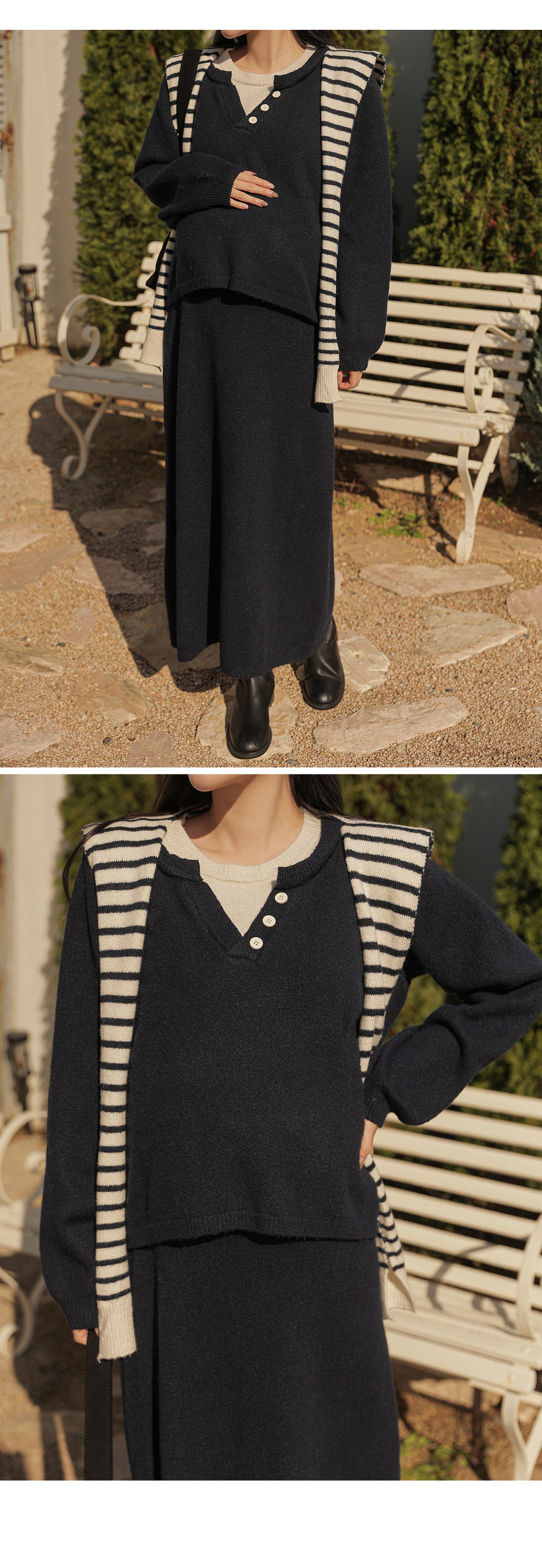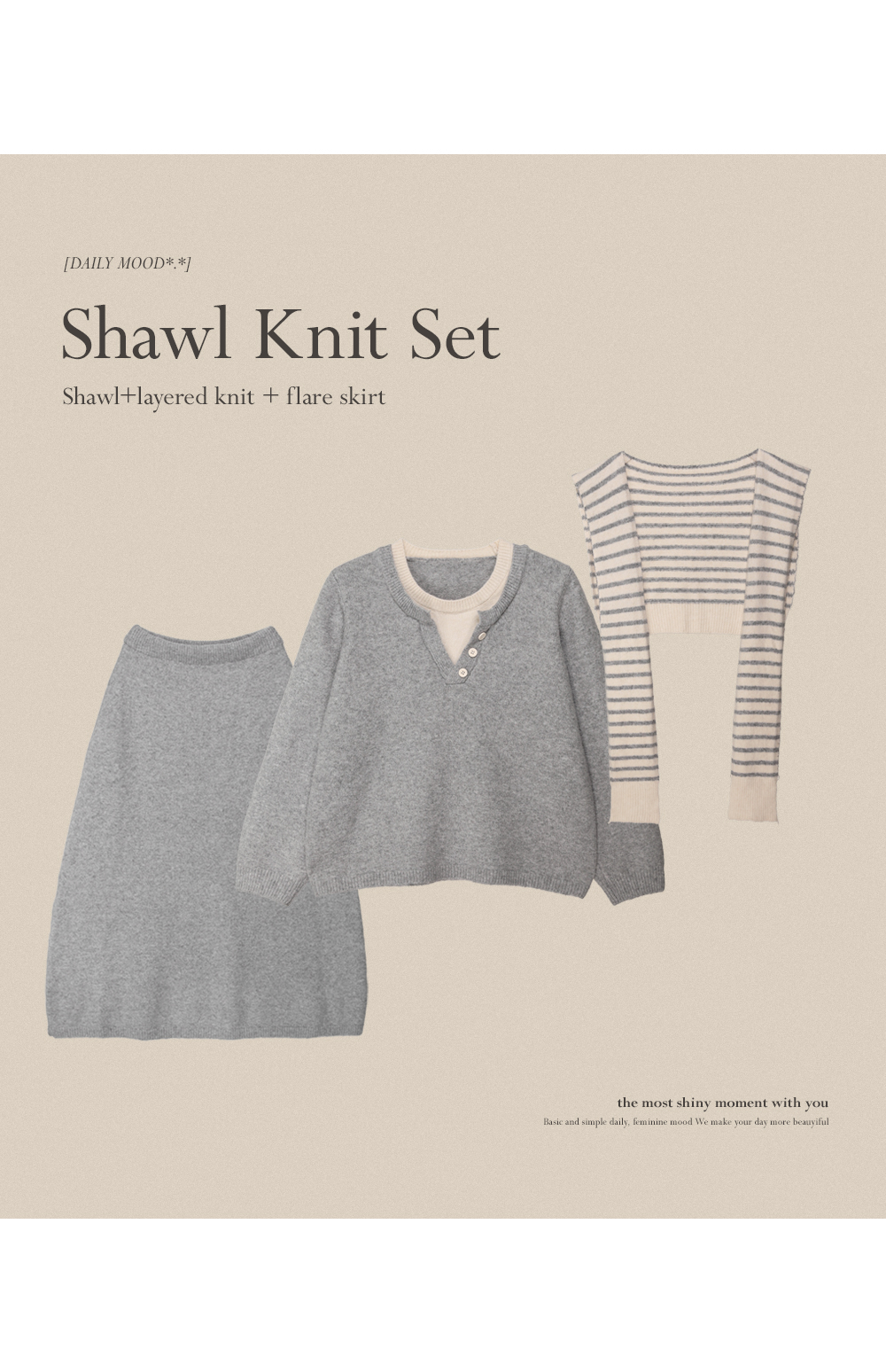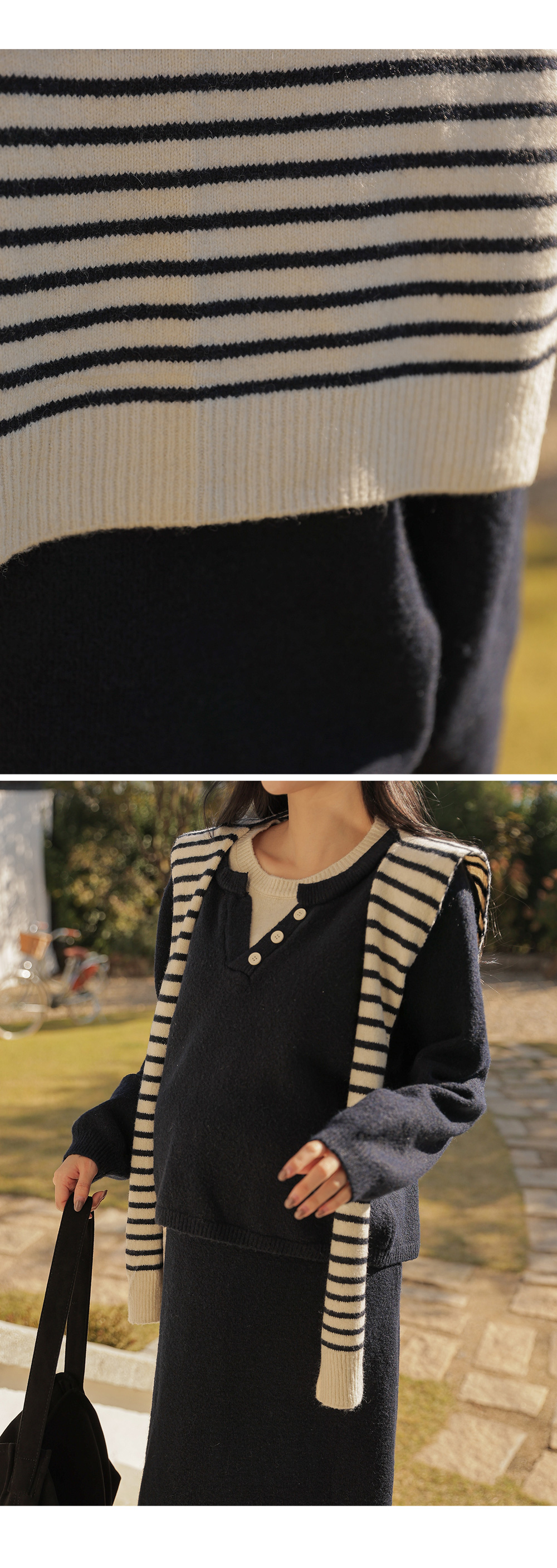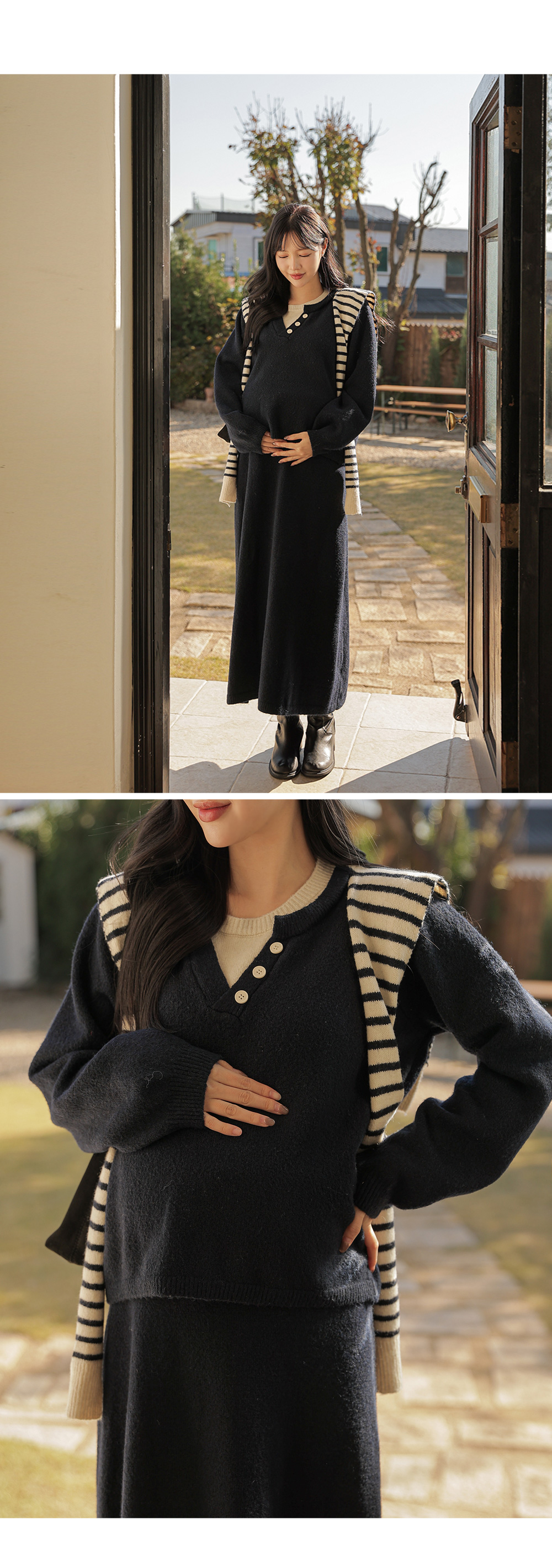 Maternity* Shawl Color Block Knit Top and Bottom Set (3pcs)