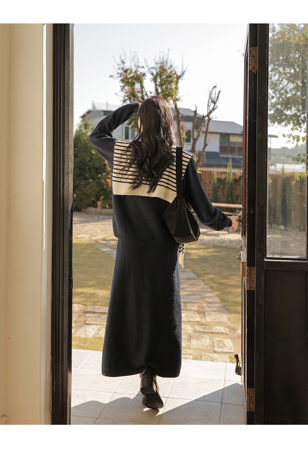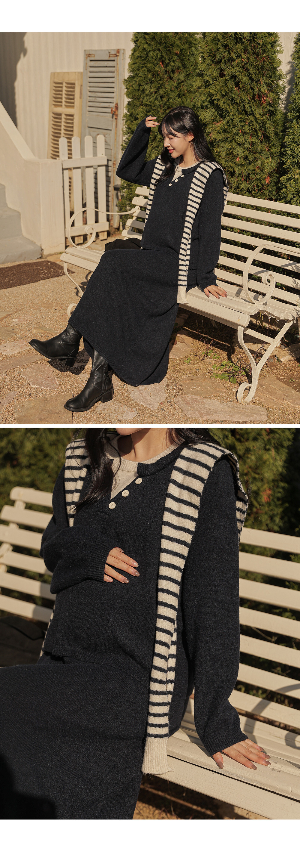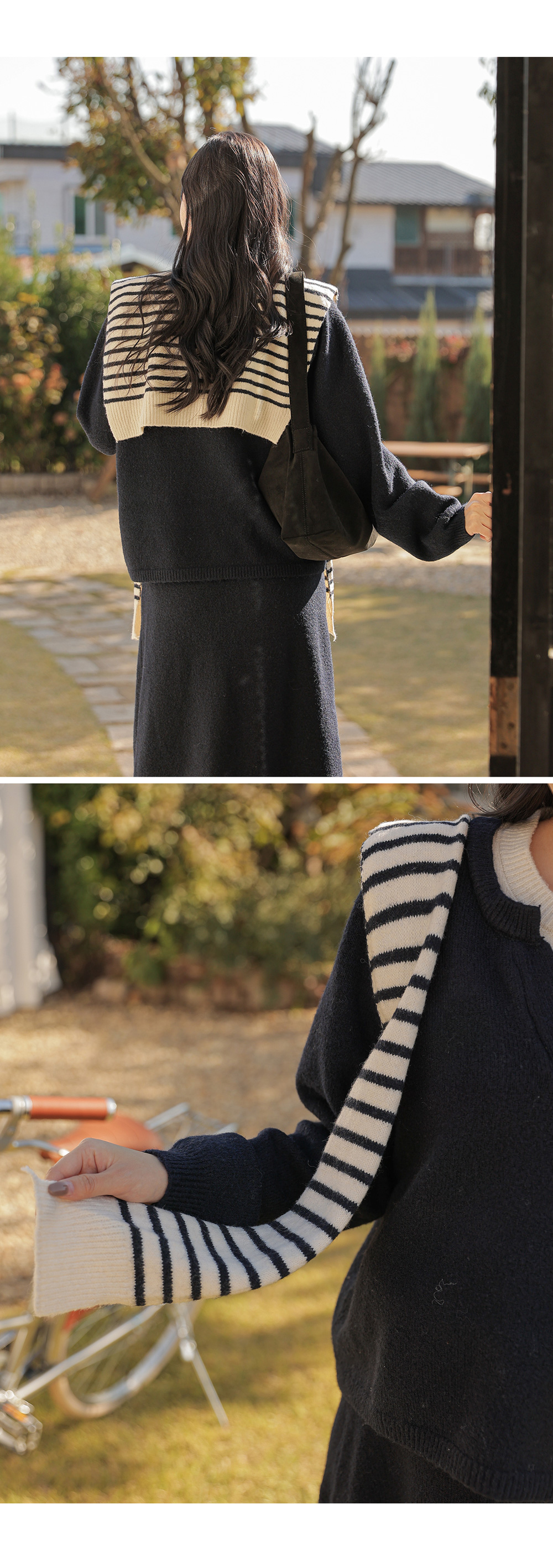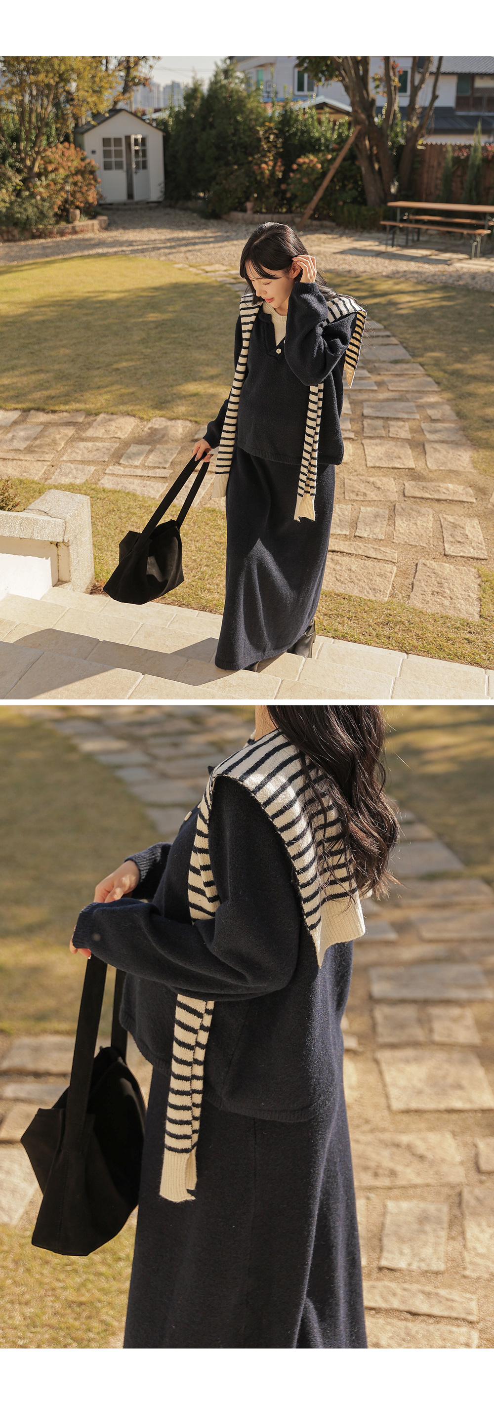 Maternity* Shawl Color Block Knit Top and Bottom Set (3pcs)