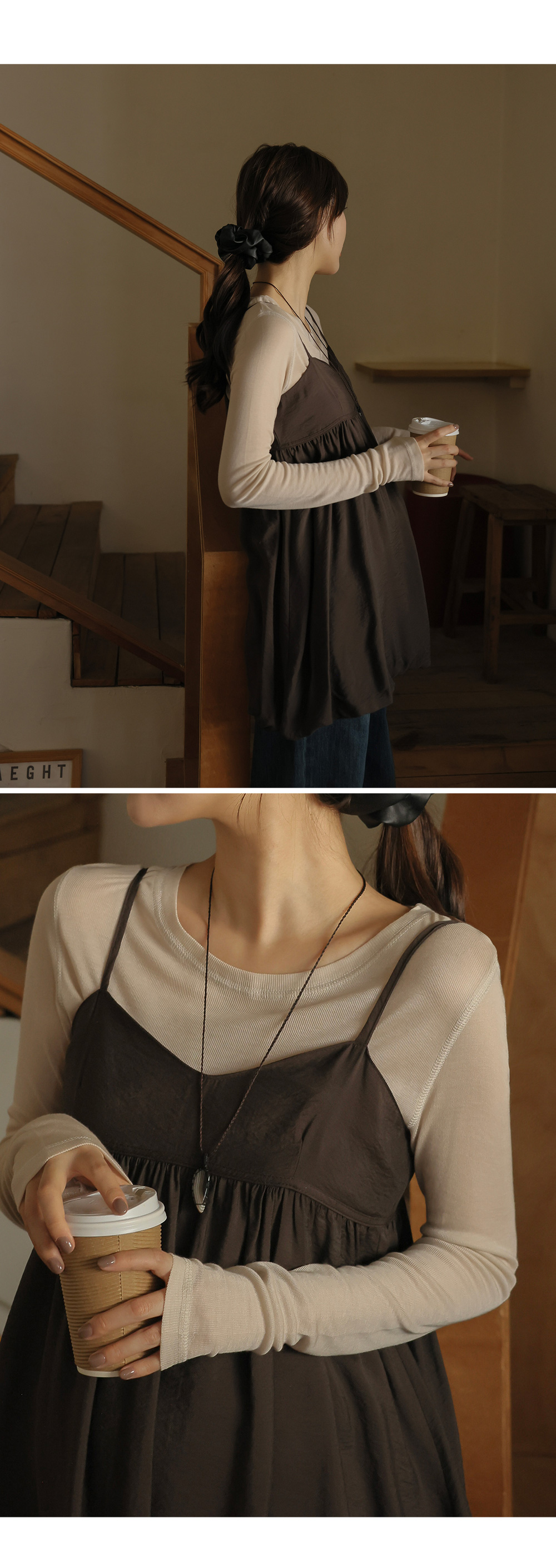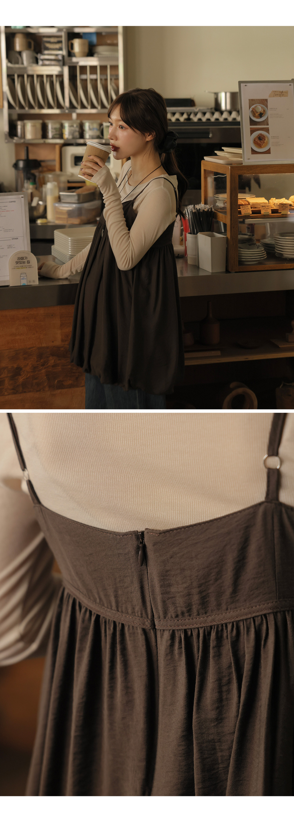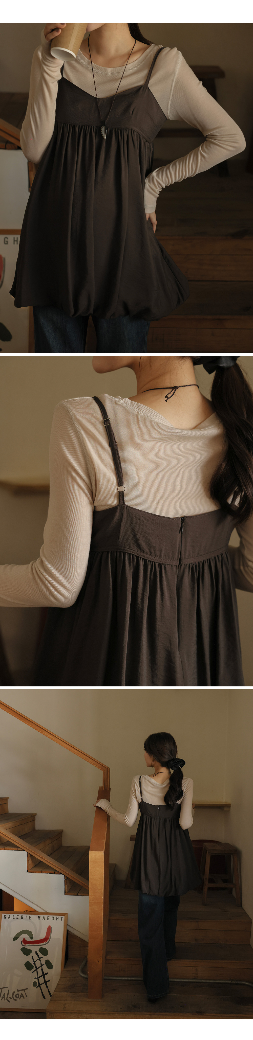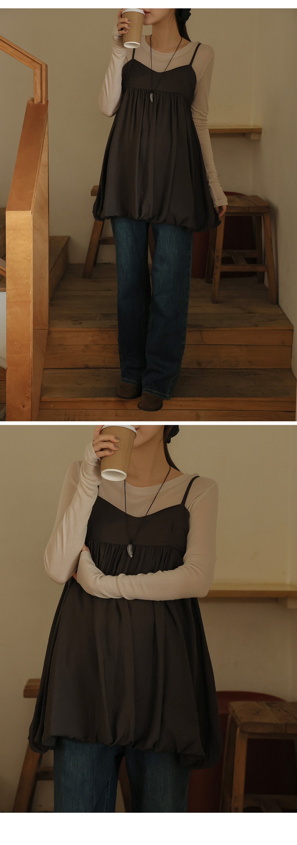배를 쏘옥 감춰주는 귀여운 벌룬핏 미니원피스 무드의 뷔스티에 블라우스 MD's comment - 레이어드하기 좋은 뷔스티에 블라우스 - 배를 쏘옥 감춰주는 풍성한 벌룬핏 - 미니원피스처럼 여유로운 기장감 - 체형에 맞게 기장 조절이 가능한 어깨버클 - 실키한 소재로 고급스럽게 감도는 광택감