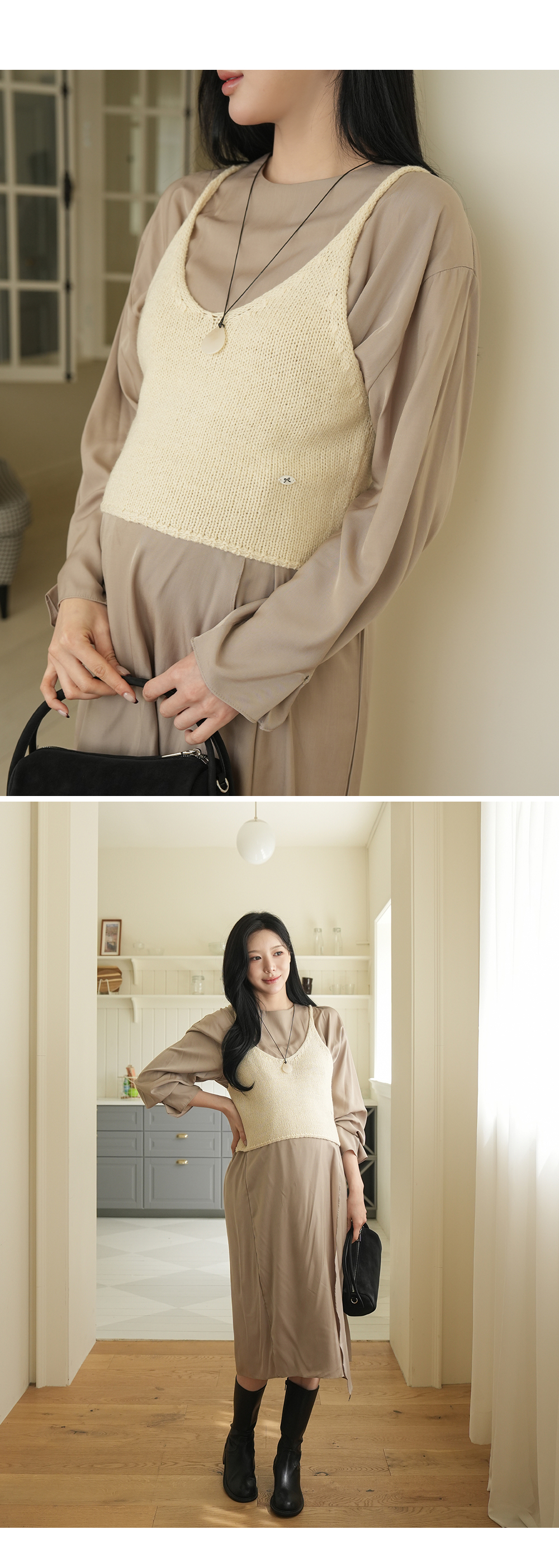 체형 변화에도 부담 없이 착용 가능한 임산부 니트 뷔스티에예요.