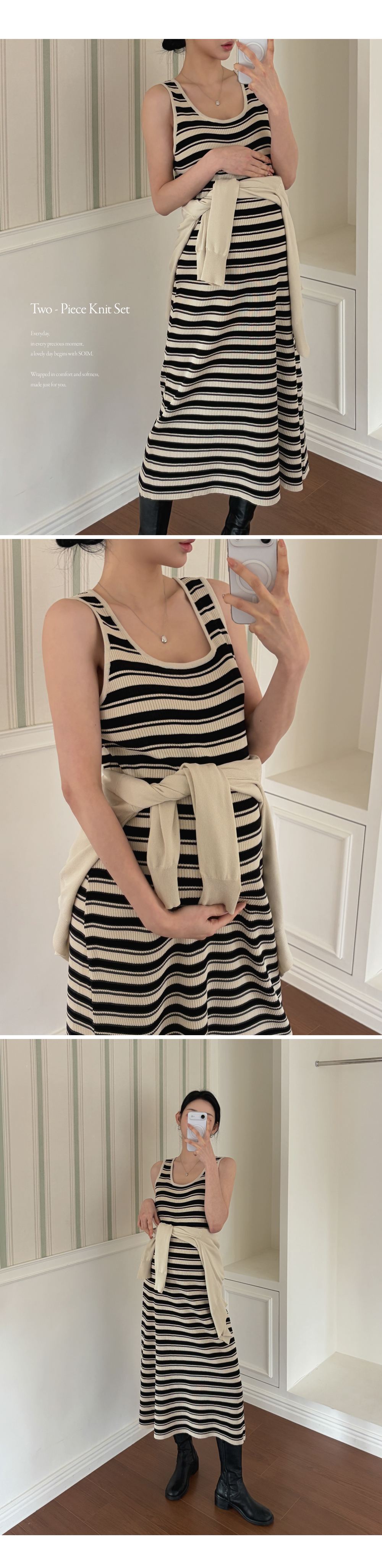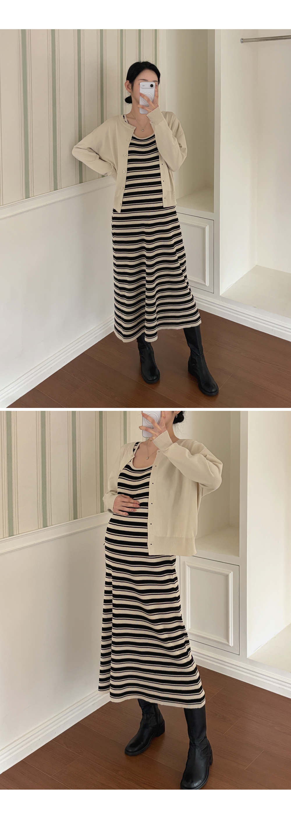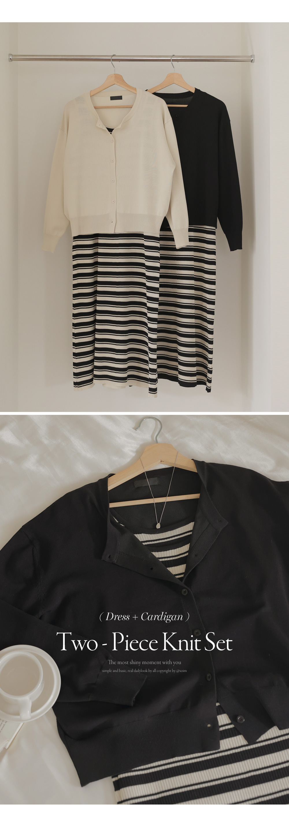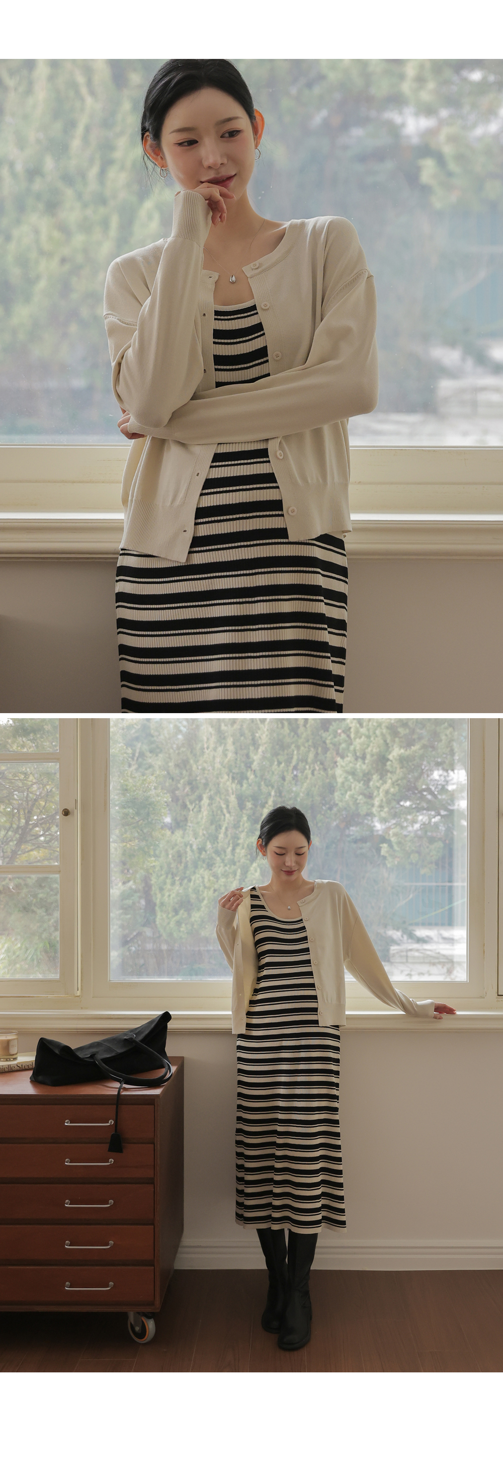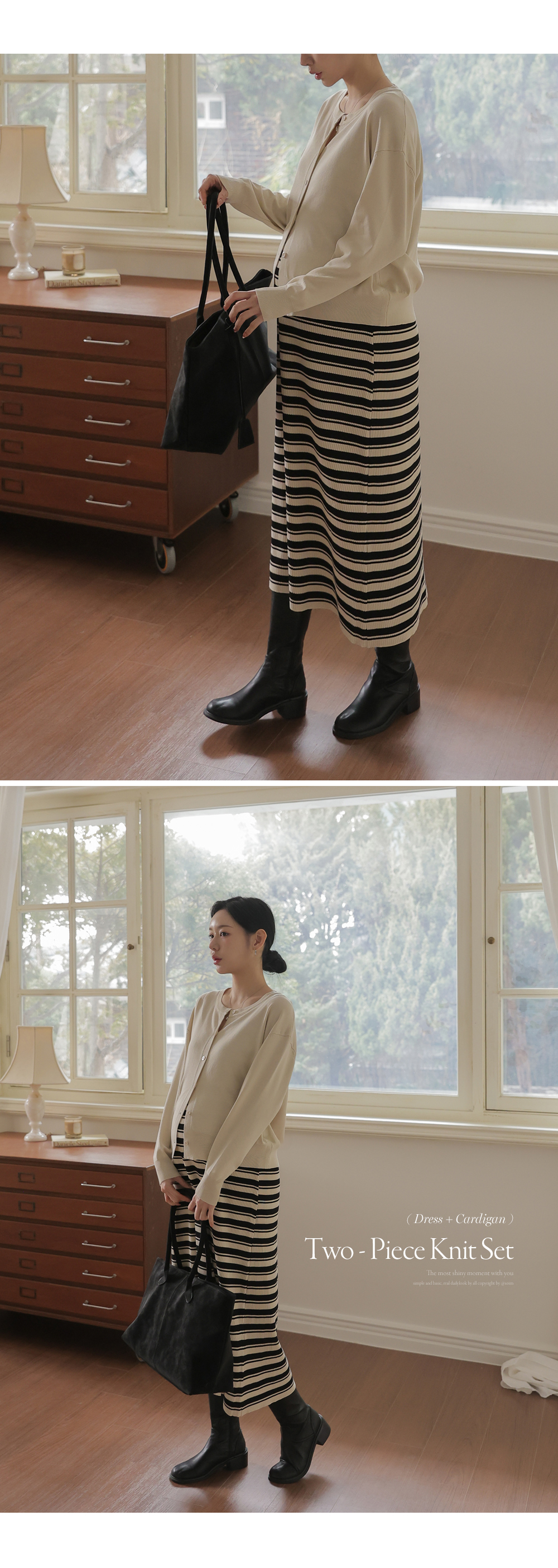 니트 원피스+가디건 세트로