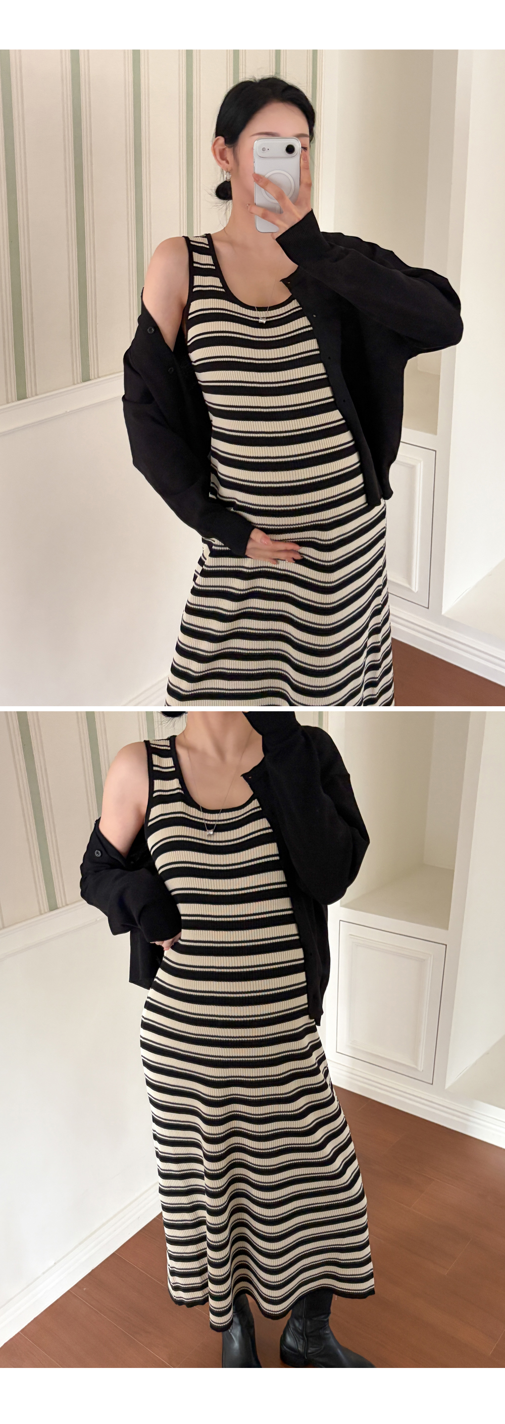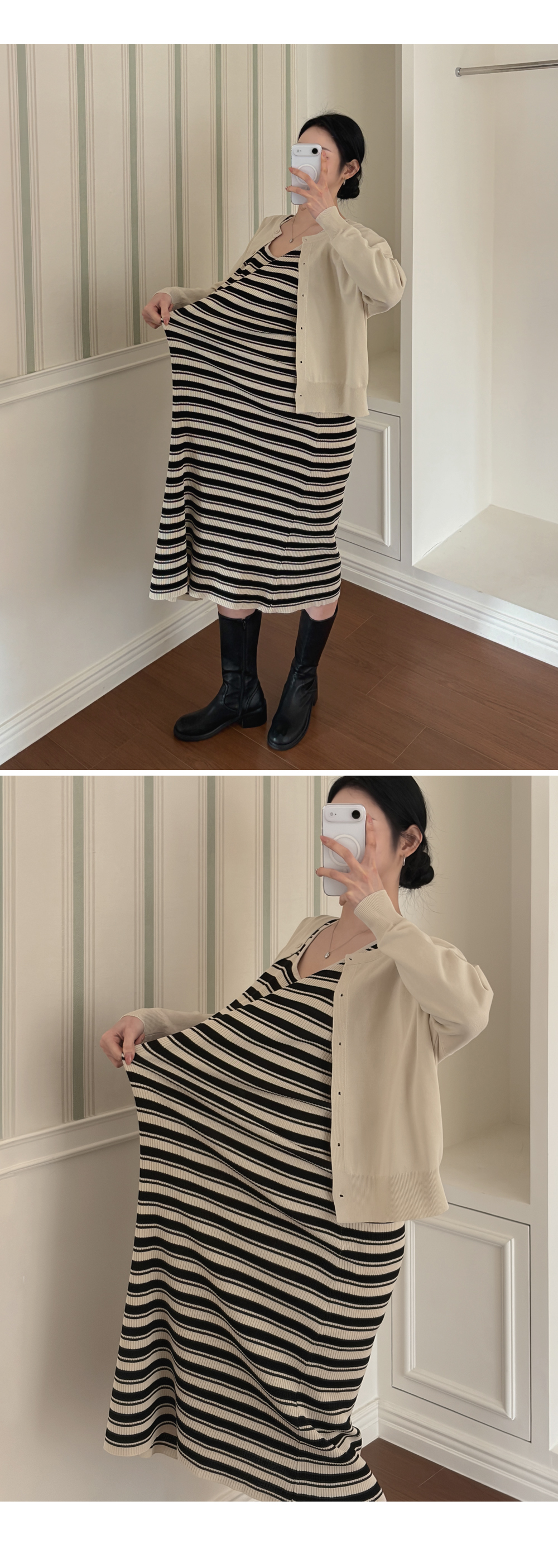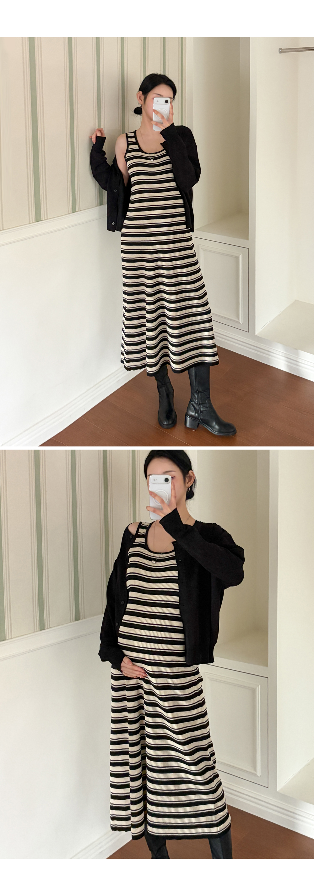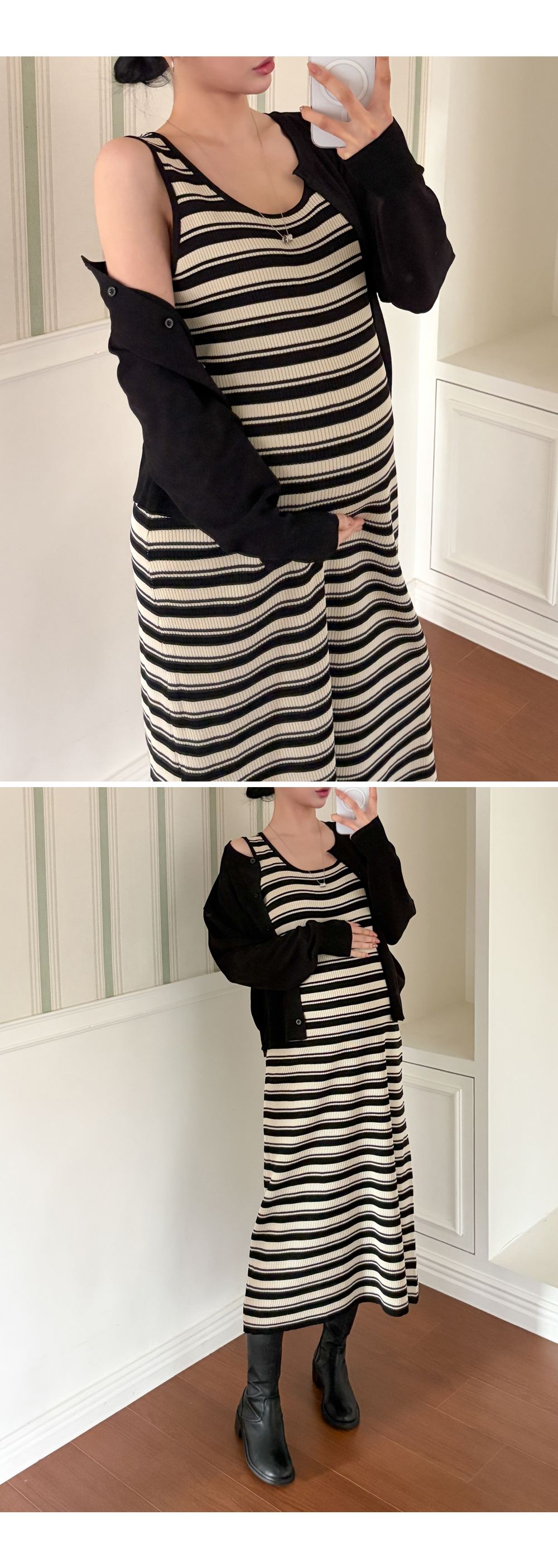 니트 원피스+가디건 세트로