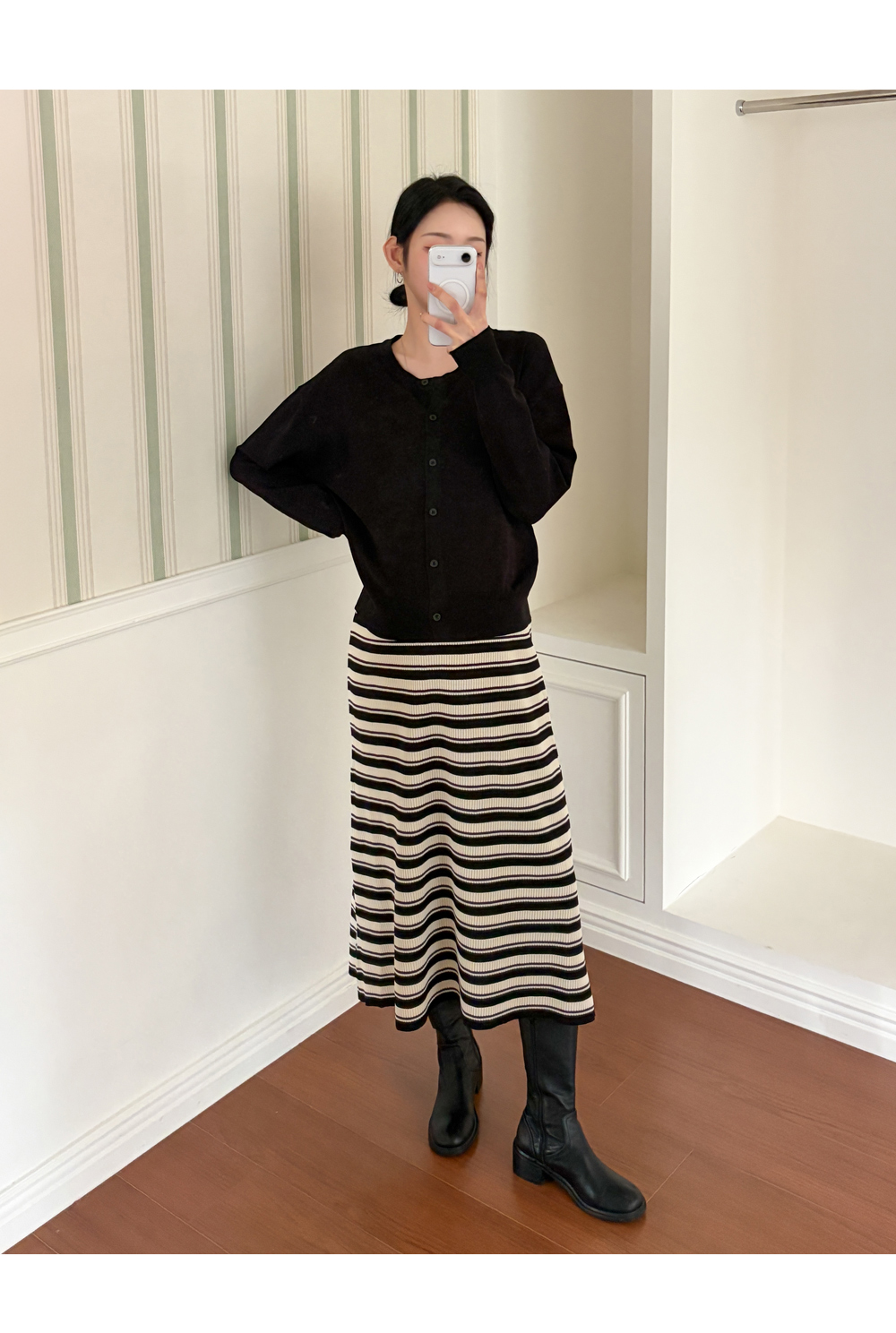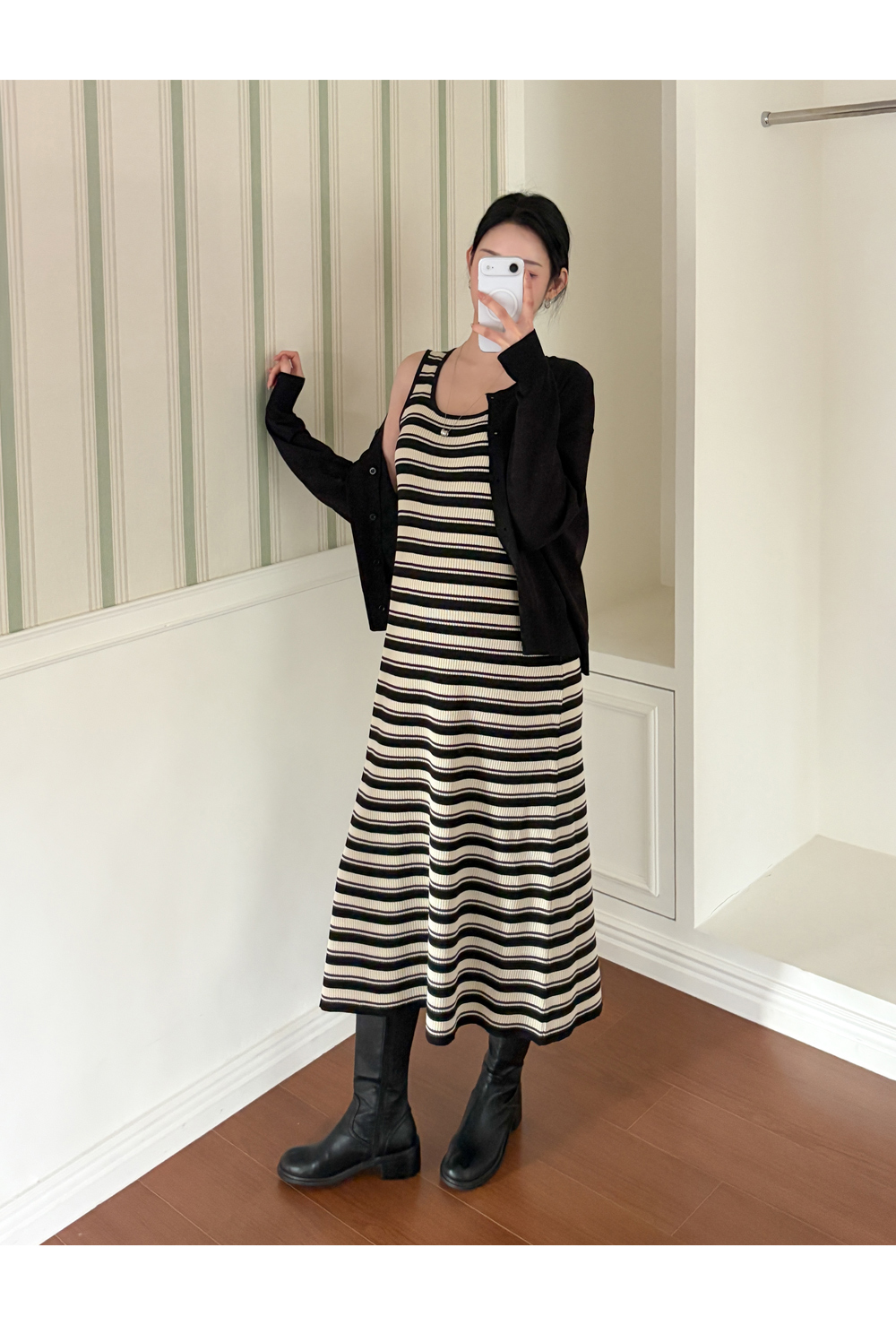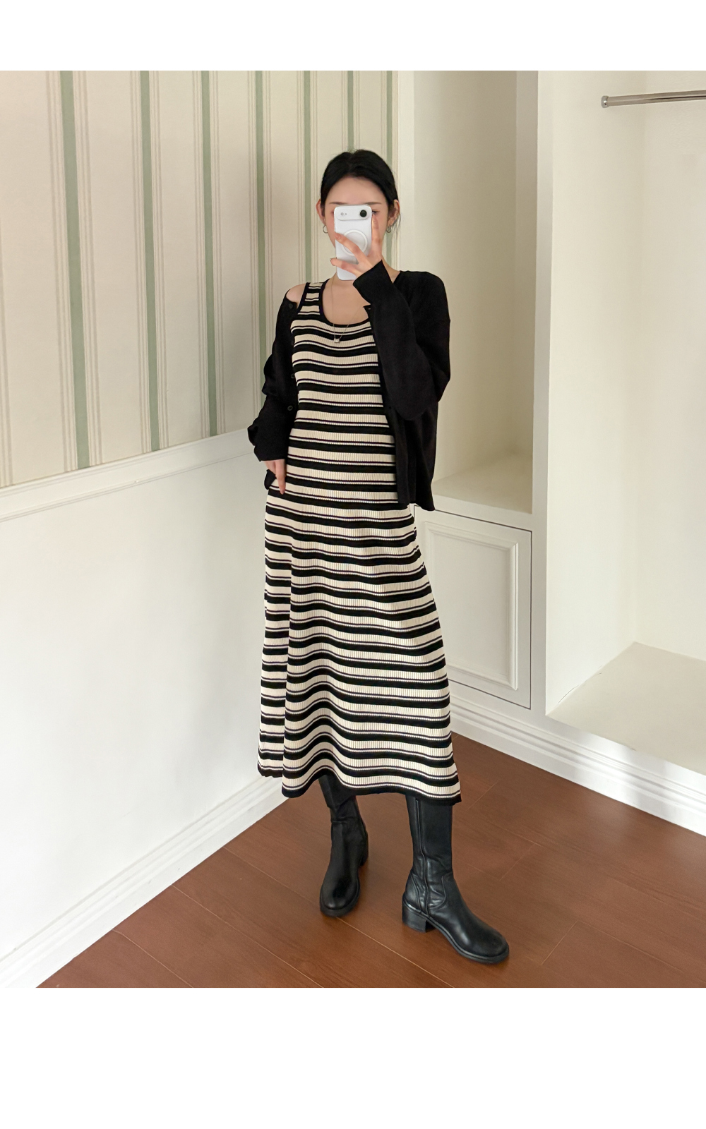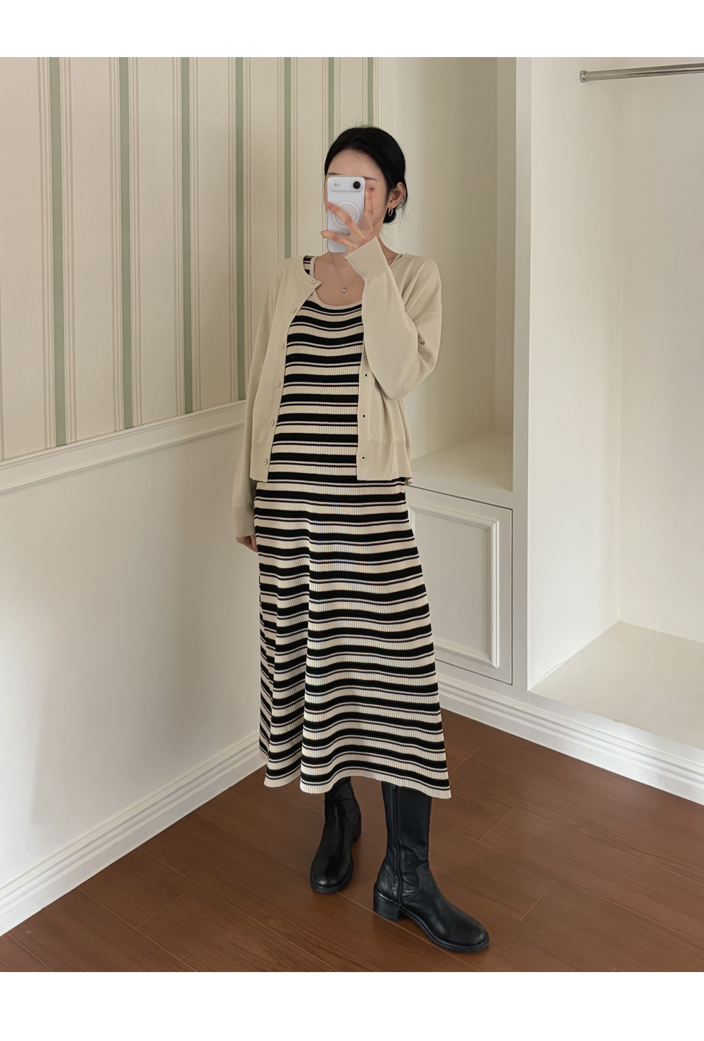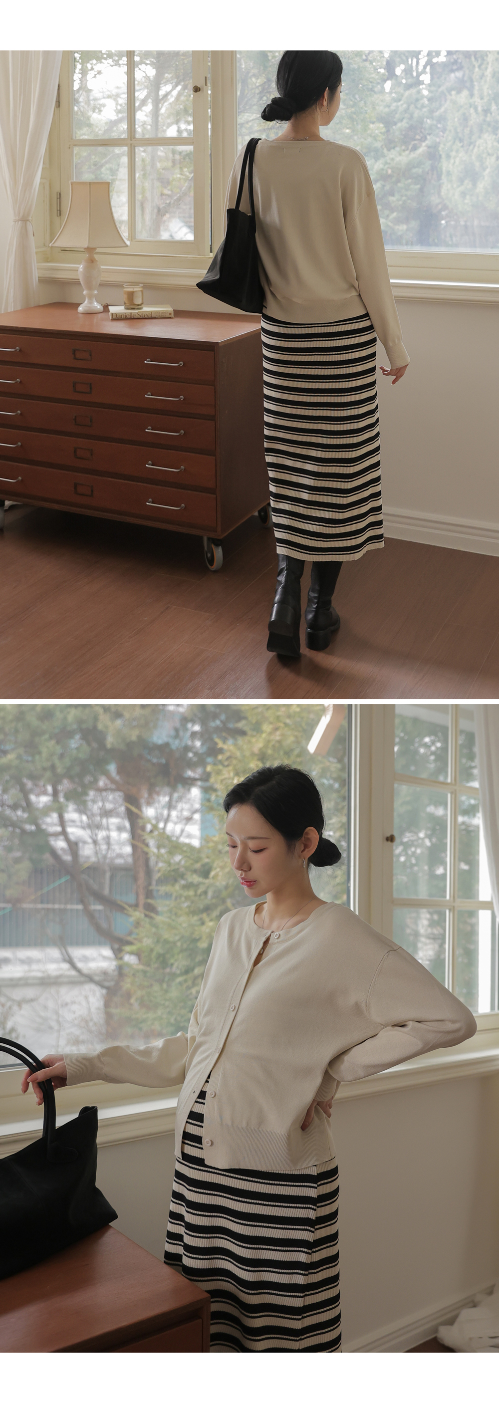니트 원피스+가디건 세트로