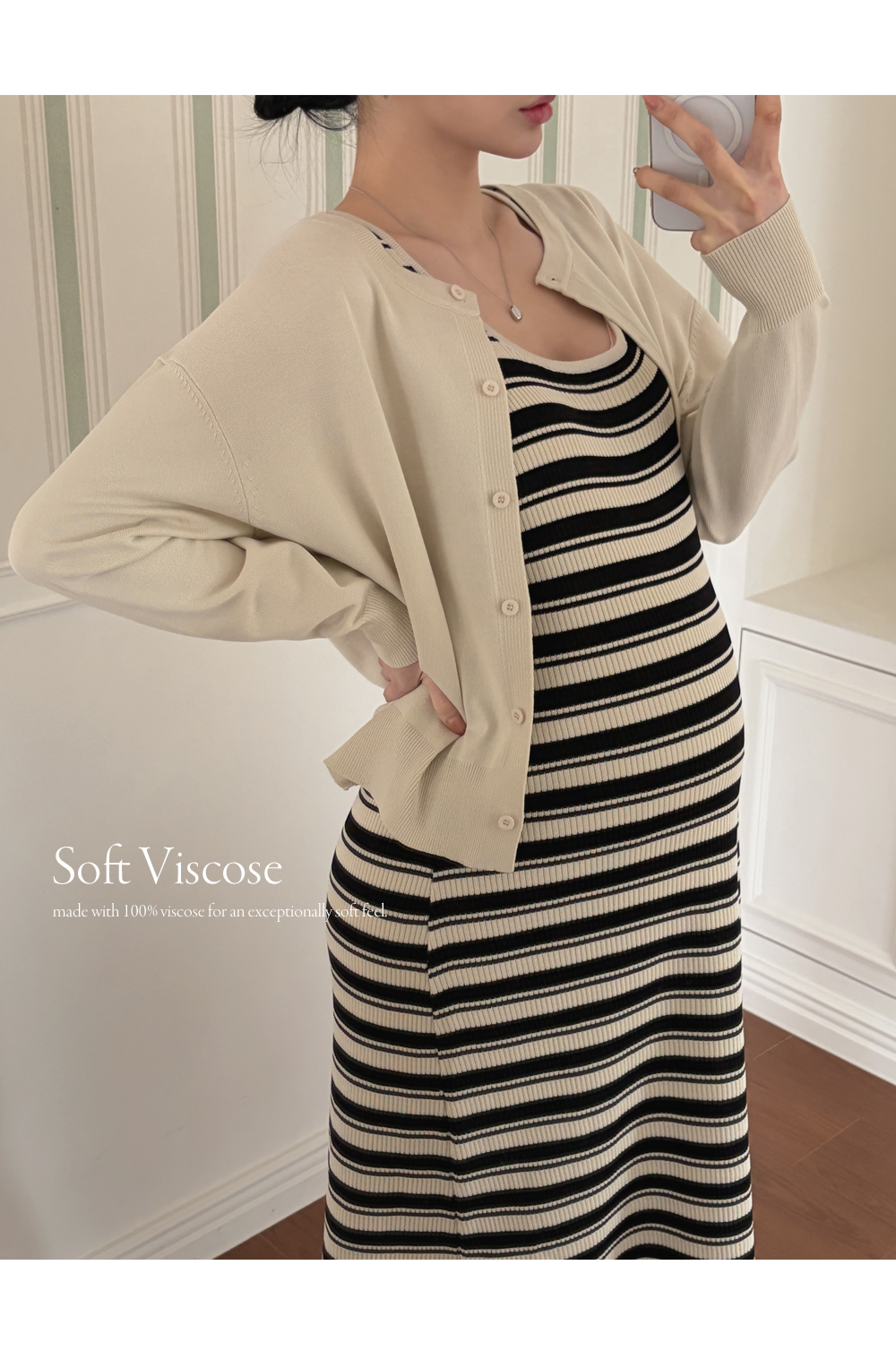 Product information출산 전후로 부담 없이 착용 가능한 임산부 원피스입니다.신축성 있는 니트소재로 편안합니다. 롱기장감으로 체형 커버에 효과적 입니다. 나시원피스 가디건 세트로 활용도 높습니다. 비스코스 소재로 피부자극 없이 편안한 합니다. |
