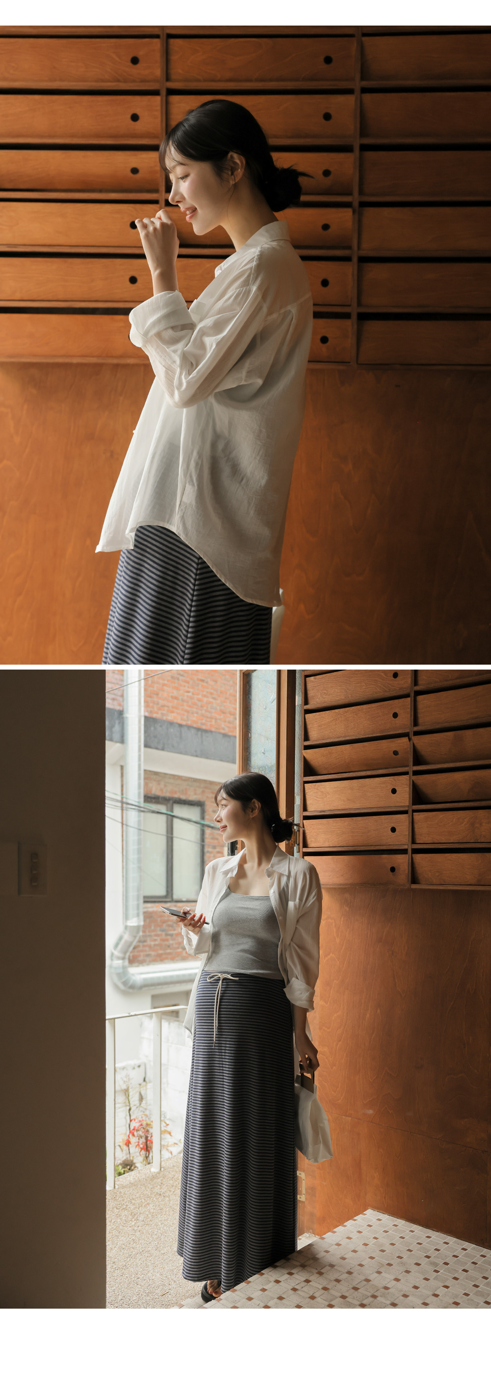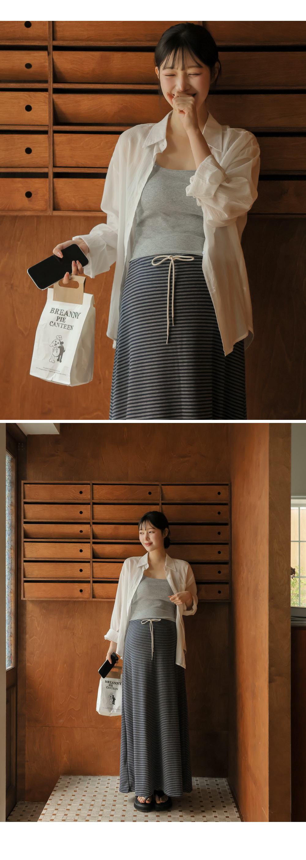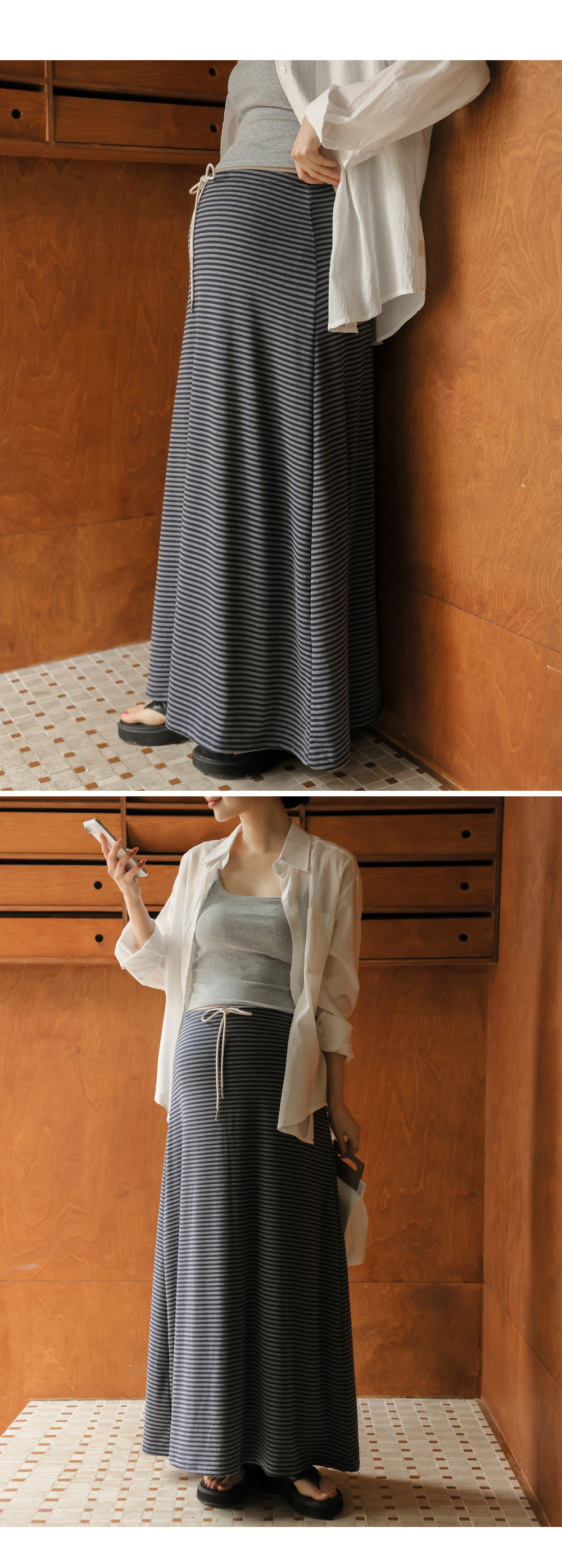 Product information임신 전후로 활용하기 좋은 맥시스커트입니다.허리 밴딩&스트링 디자인 입니다. 스트라이프 패턴 입니다. 편안한 신축성 소재 입니다. 다리를 커버해주는 맥시기장입니다. |