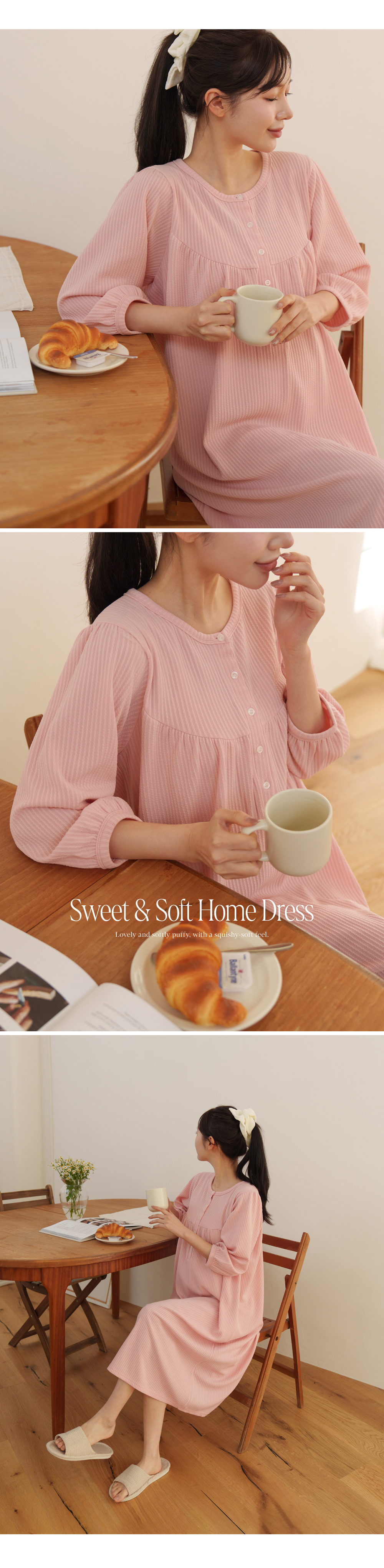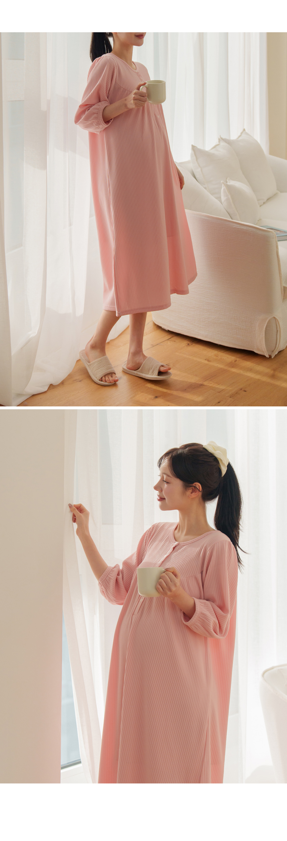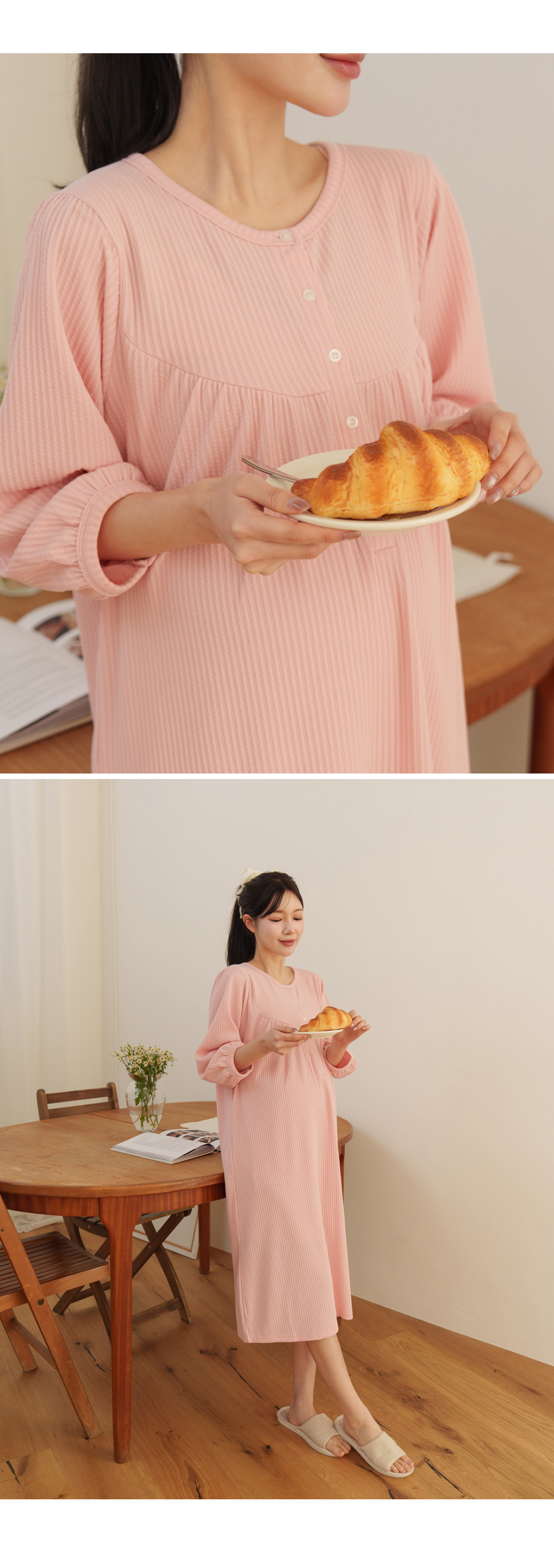 출산 전 후 편하게 입어요! 말랑말랑 소프트한 착용감~ MD's comment 집에서도 편하고 예쁘게 입을 수 있는 홈웨어 원피스예요 말랑하고 부드러운 소재로 피부에 자극없이 편안하고 기분좋은 착용감을 느끼실 수 있구요, 스판기도 함유하고 있어 낭낭하게 입어져요 여유있고 낙낙한 품이라 만삭맘들도 물론, 출산 전후로도 쭉 입기 좋은 파자마에요. 은은한 셔링포인트로 기분좋게 입는 홈 웨어룩 베이지,핑크,노랑 3가지 화사한 컬러들로만나보세요!