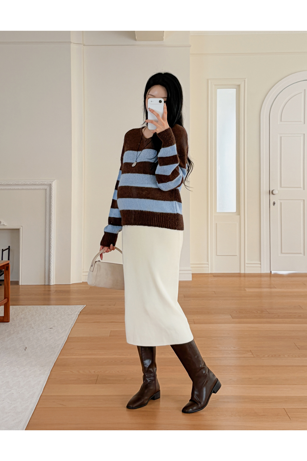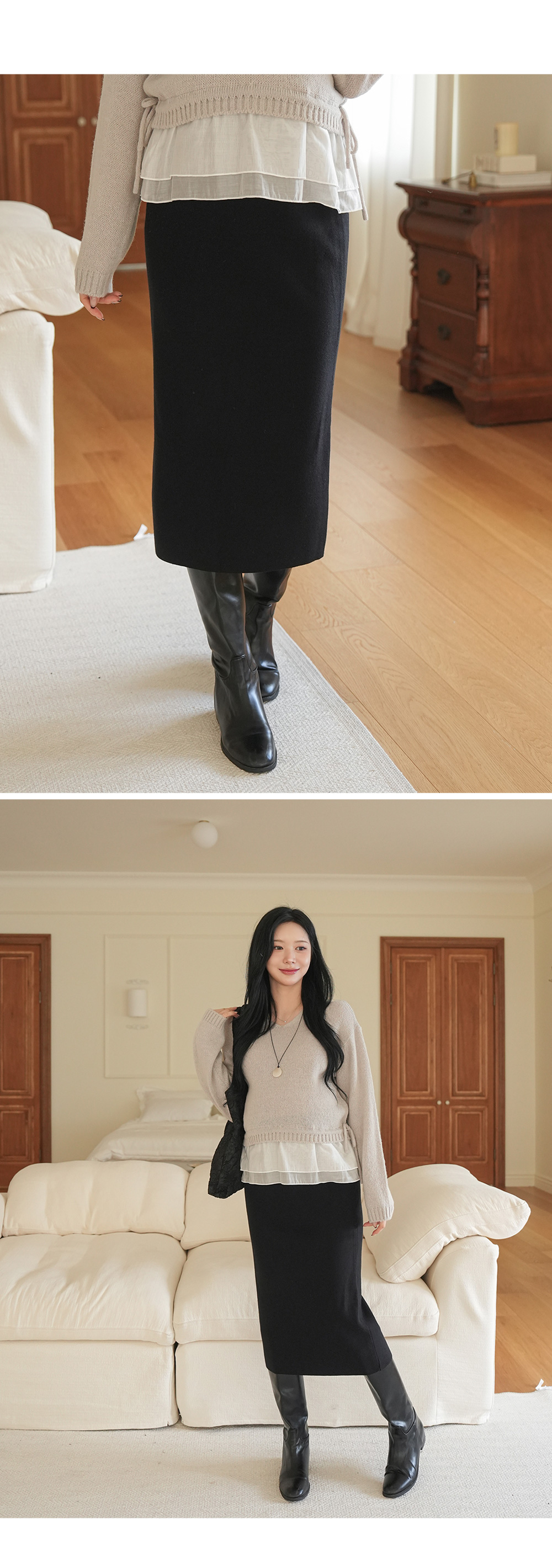 "매끄럽고 도톰한 니트스커트 허리 조절밴딩이