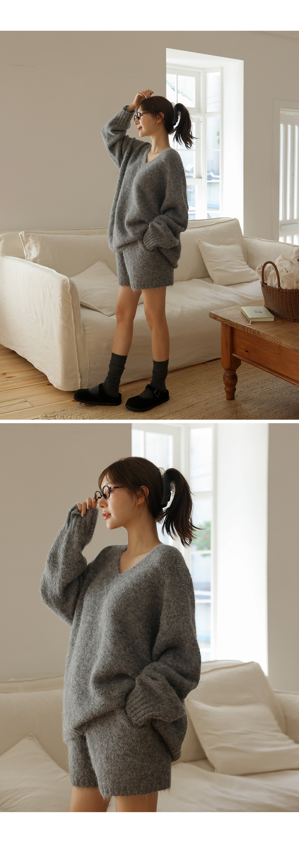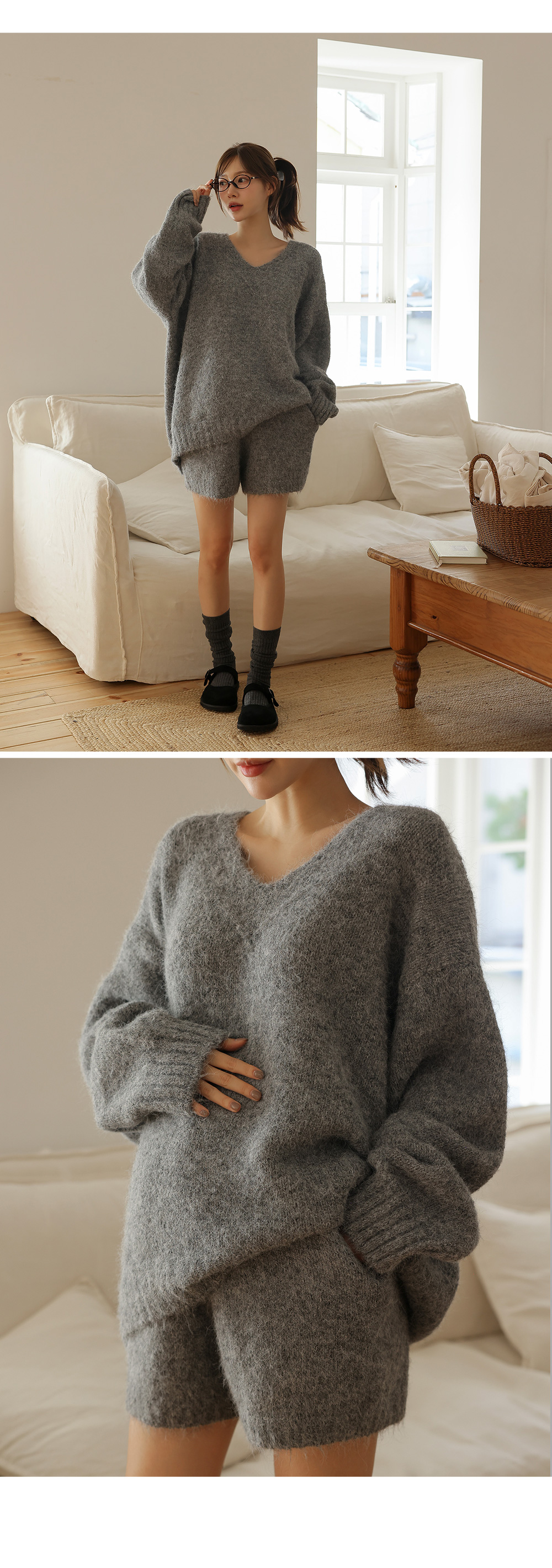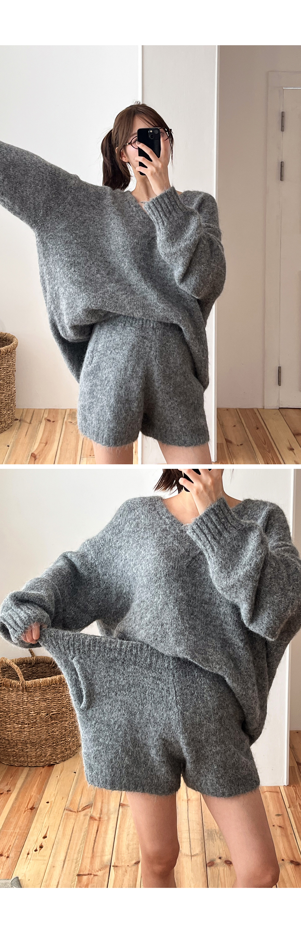 Maternity*V-neck knit shorts two-piece set (for postpartum use)